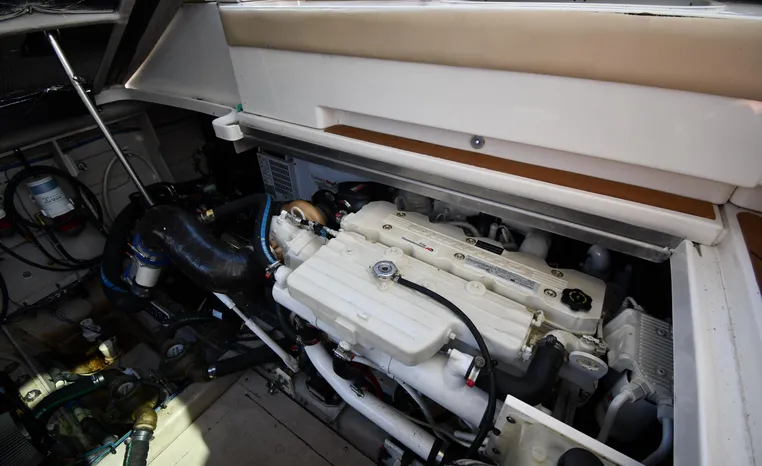 Features Twin Cummins QSB 380 HO P 380-hp Diesel Engine's w/Zues Pod's (w/Skyhook / Joy-Stick Piloting) and 1034 original hours. Notable features include but are not limited to the following: Air-Conditioning & Heat (3-Units - Including Cockpit AC/Heat), Head (Vacuflush) w/Vanity/Sink/Stall-Shower, Central Vacuum, Onan 11.5kw Generator (885-hrs), Windlass Anchor w/Forward Pedal-Controls (Note Anchor Locker Freshwater Washdown), Raymarine E120 Color MFD w/Radar/GPS/Chartplotter - Mercury Precision-Pilot w/Sky-Hook / Joy-Stick Piloting, Sony Premium Sound System, Cockpit Wet Bar w/Sink/Refrigerator/Electric BBQ-Grill, Hardtop w/Electric Sun-Roof, Plasteak Cockpit / Swim-Platform Decking, and MUCH more!