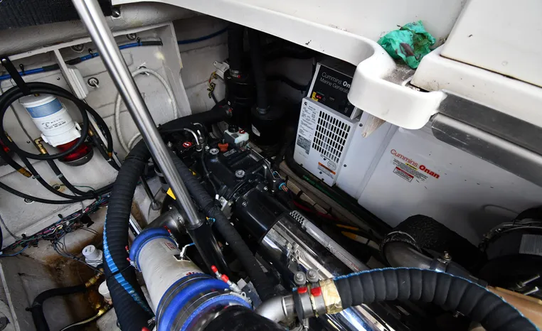 Features Twin Cummins QSB 380 HO P 380-hp Diesel Engine's w/Zues Pod's (w/Skyhook / Joy-Stick Piloting) and 1034 original hours. Notable features include but are not limited to the following: Air-Conditioning & Heat (3-Units - Including Cockpit AC/Heat), Head (Vacuflush) w/Vanity/Sink/Stall-Shower, Central Vacuum, Onan 11.5kw Generator (885-hrs), Windlass Anchor w/Forward Pedal-Controls (Note Anchor Locker Freshwater Washdown), Raymarine E120 Color MFD w/Radar/GPS/Chartplotter - Mercury Precision-Pilot w/Sky-Hook / Joy-Stick Piloting, Sony Premium Sound System, Cockpit Wet Bar w/Sink/Refrigerator/Electric BBQ-Grill, Hardtop w/Electric Sun-Roof, Plasteak Cockpit / Swim-Platform Decking, and MUCH more!