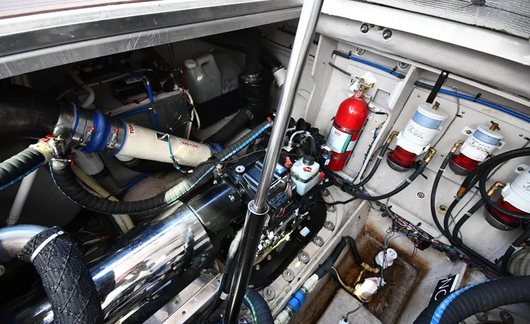 Features Twin Cummins QSB 380 HO P 380-hp Diesel Engine's w/Zues Pod's (w/Skyhook / Joy-Stick Piloting) and 1034 original hours. Notable features include but are not limited to the following: Air-Conditioning & Heat (3-Units - Including Cockpit AC/Heat), Head (Vacuflush) w/Vanity/Sink/Stall-Shower, Central Vacuum, Onan 11.5kw Generator (885-hrs), Windlass Anchor w/Forward Pedal-Controls (Note Anchor Locker Freshwater Washdown), Raymarine E120 Color MFD w/Radar/GPS/Chartplotter - Mercury Precision-Pilot w/Sky-Hook / Joy-Stick Piloting, Sony Premium Sound System, Cockpit Wet Bar w/Sink/Refrigerator/Electric BBQ-Grill, Hardtop w/Electric Sun-Roof, Plasteak Cockpit / Swim-Platform Decking, and MUCH more!