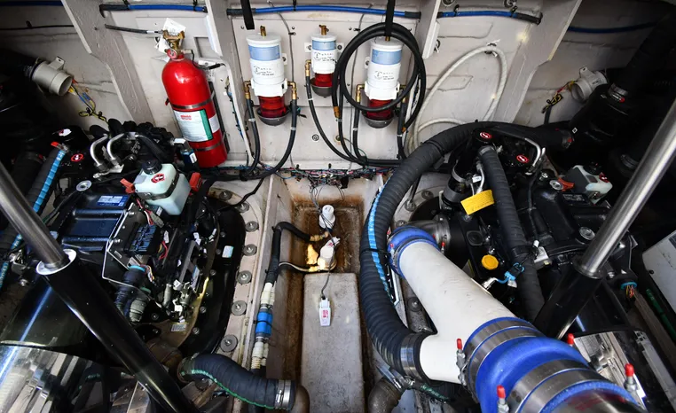 Features Twin Cummins QSB 380 HO P 380-hp Diesel Engine's w/Zues Pod's (w/Skyhook / Joy-Stick Piloting) and 1034 original hours. Notable features include but are not limited to the following: Air-Conditioning & Heat (3-Units - Including Cockpit AC/Heat), Head (Vacuflush) w/Vanity/Sink/Stall-Shower, Central Vacuum, Onan 11.5kw Generator (885-hrs), Windlass Anchor w/Forward Pedal-Controls (Note Anchor Locker Freshwater Washdown), Raymarine E120 Color MFD w/Radar/GPS/Chartplotter - Mercury Precision-Pilot w/Sky-Hook / Joy-Stick Piloting, Sony Premium Sound System, Cockpit Wet Bar w/Sink/Refrigerator/Electric BBQ-Grill, Hardtop w/Electric Sun-Roof, Plasteak Cockpit / Swim-Platform Decking, and MUCH more!