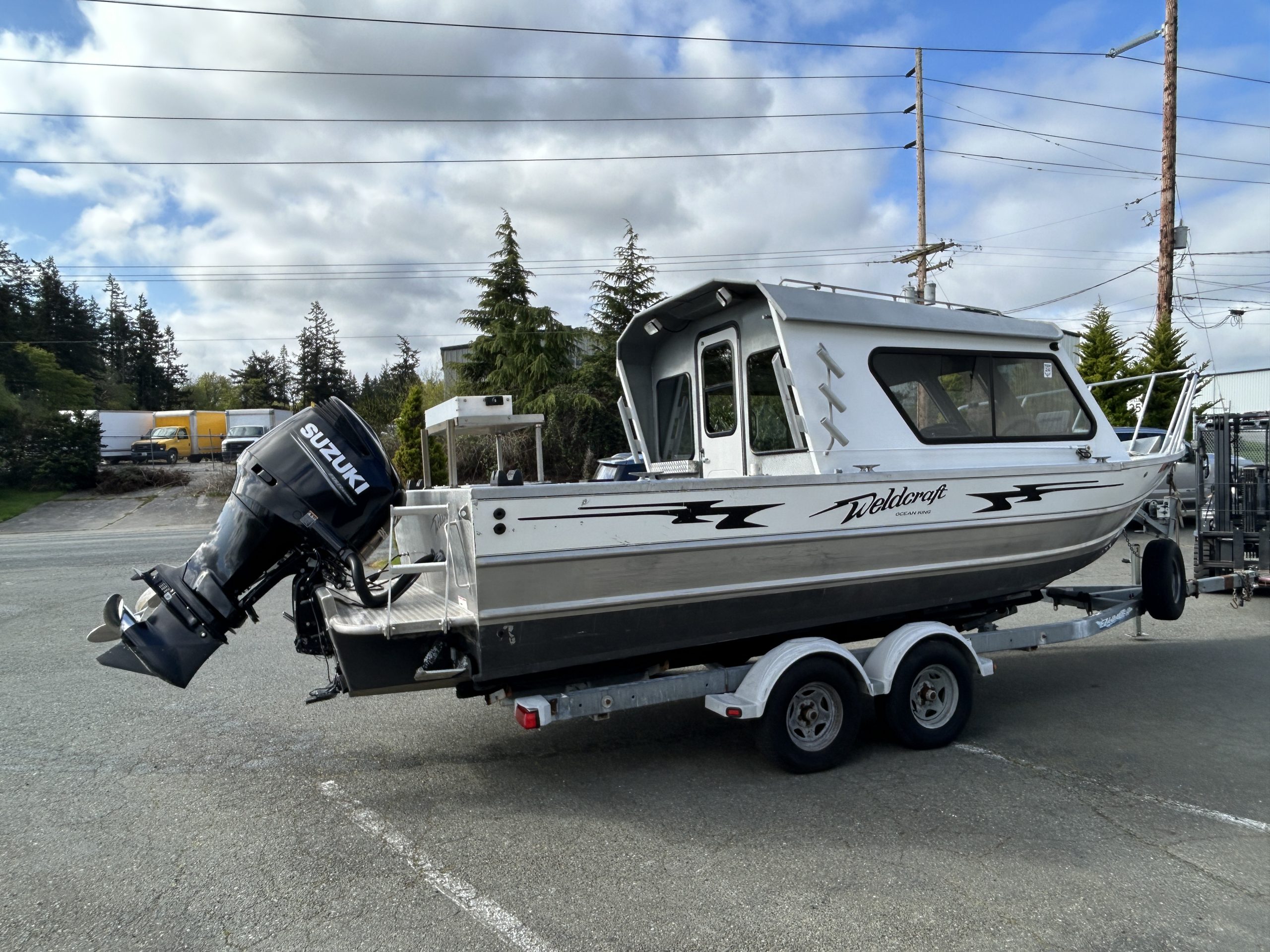 The Ocean King 220 is known for its versatility—equally at home chasing salmon offshore, running crab pots, or cruising with family. The 250HP Suzuki delivers efficient, reliable power with plenty of range, while the upgraded trailer makes transport easy and dependable.