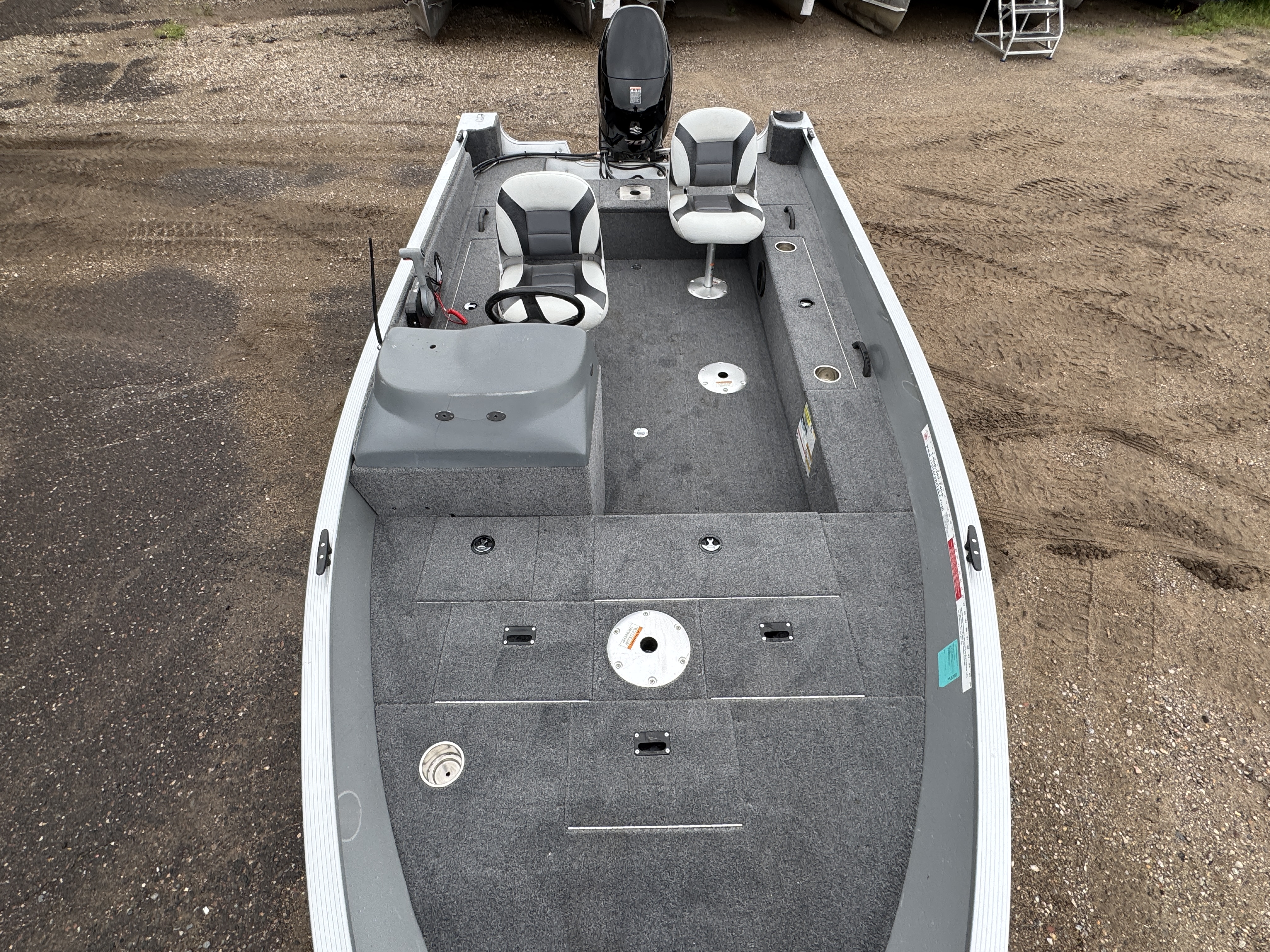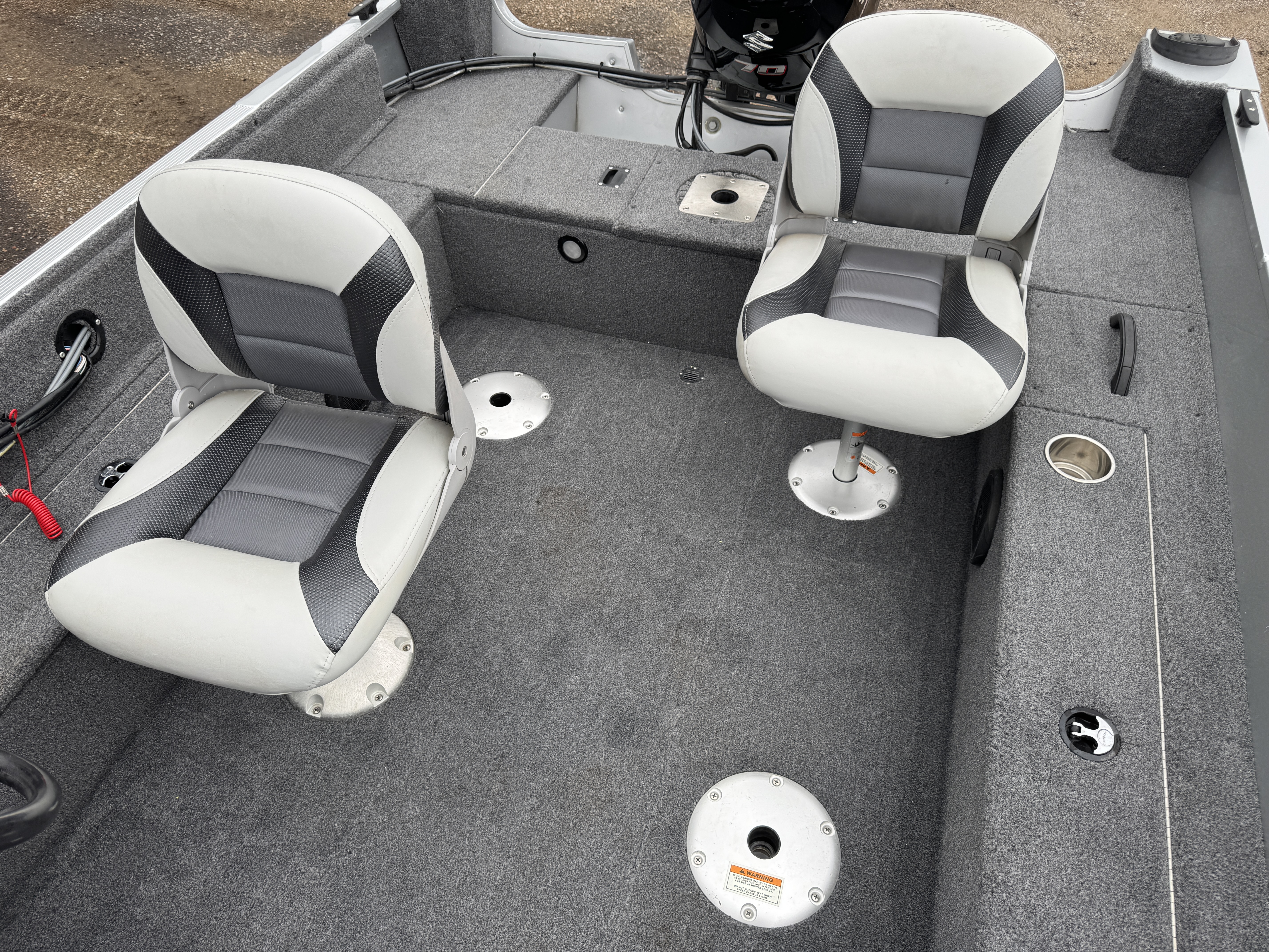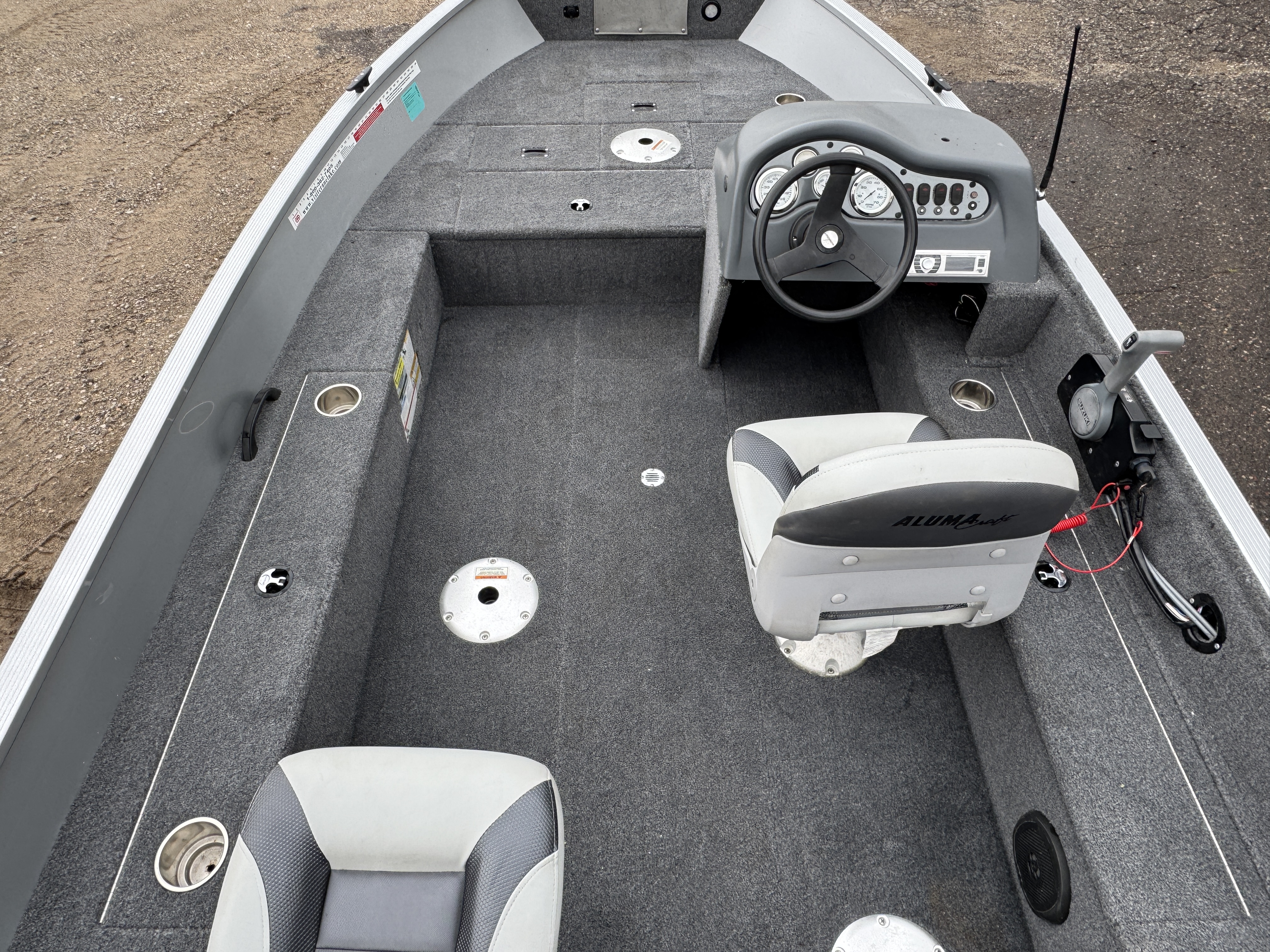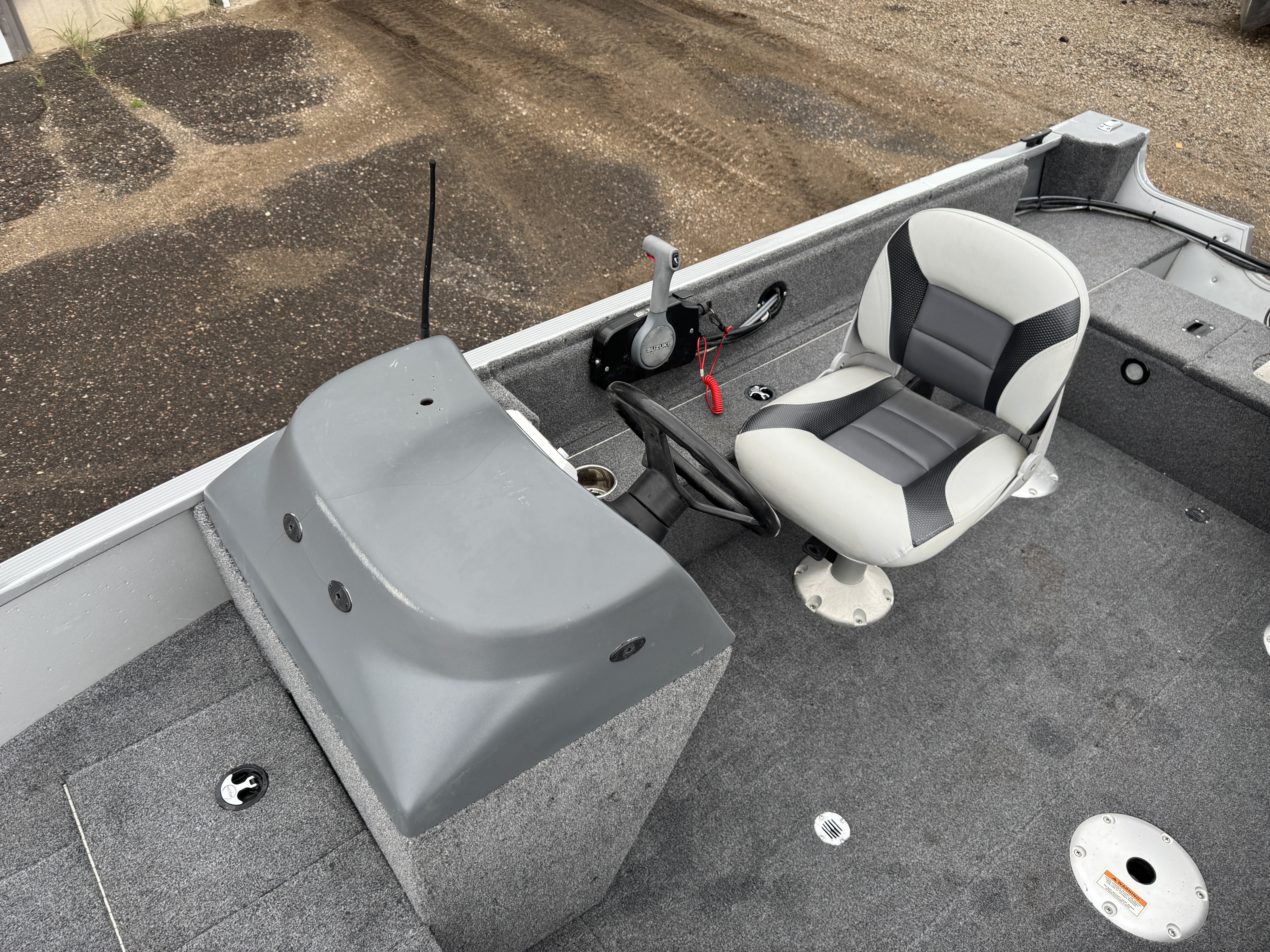 single console, aluminum fishing boat features 2 fold down fishing seats with 6