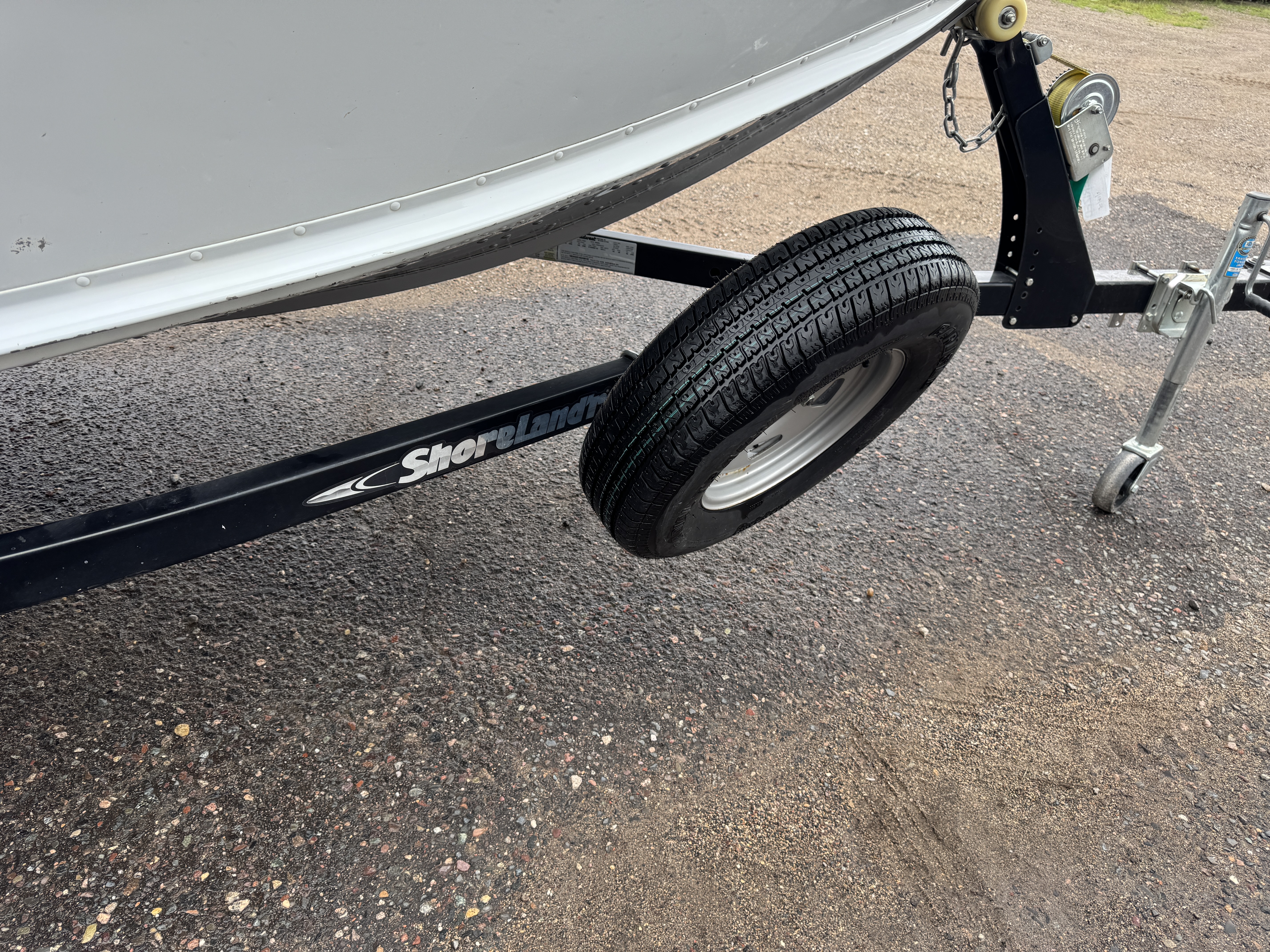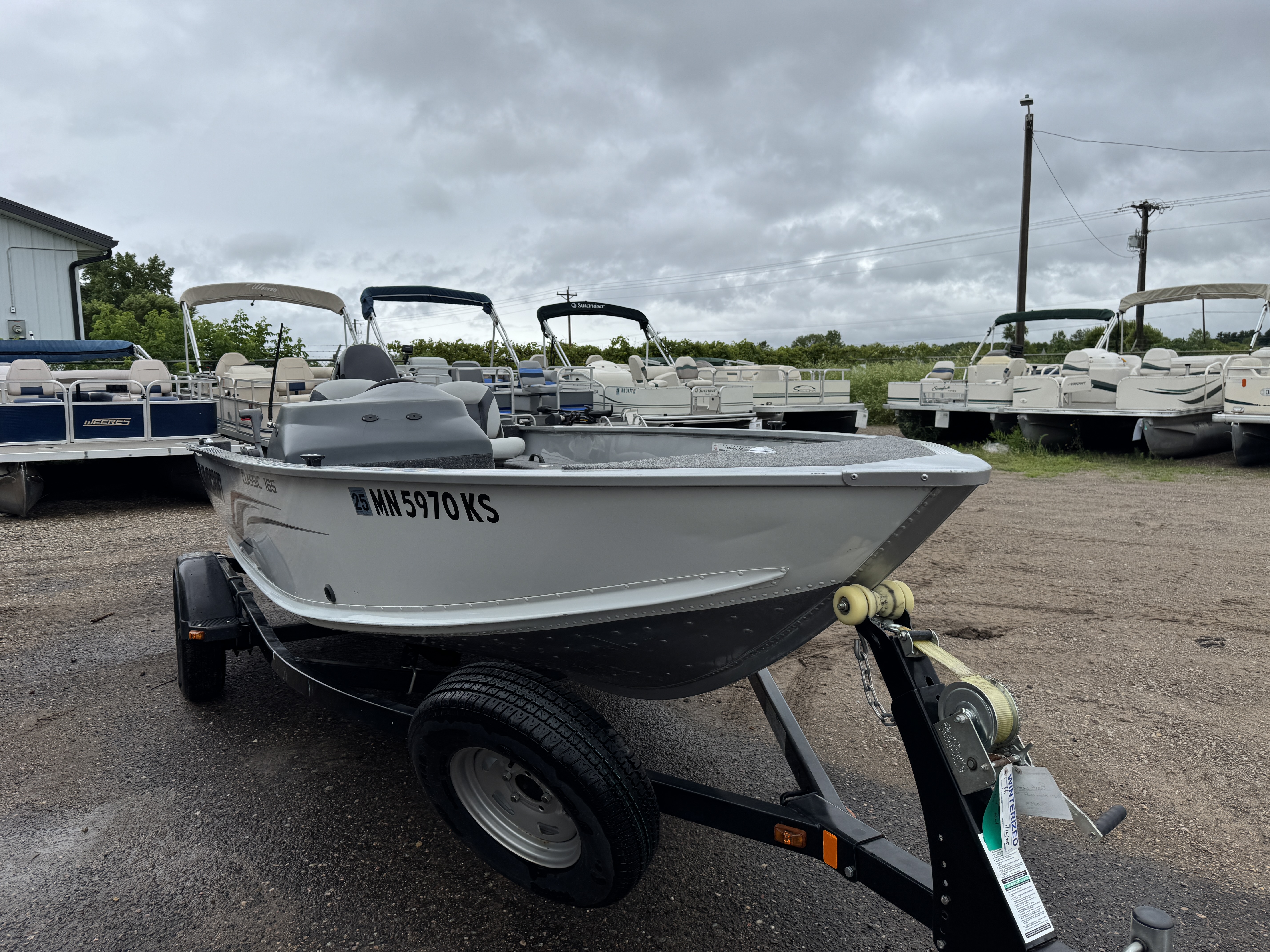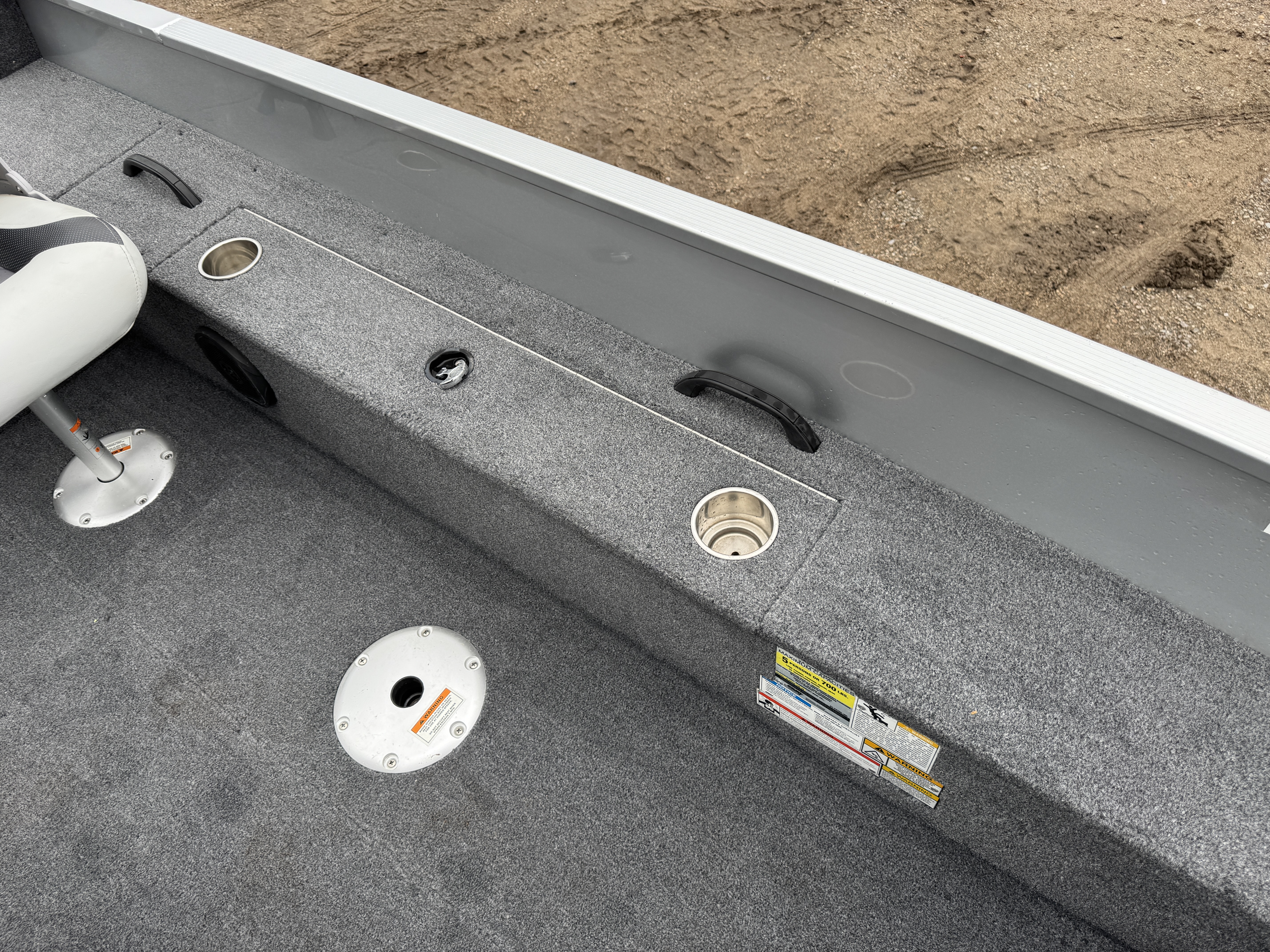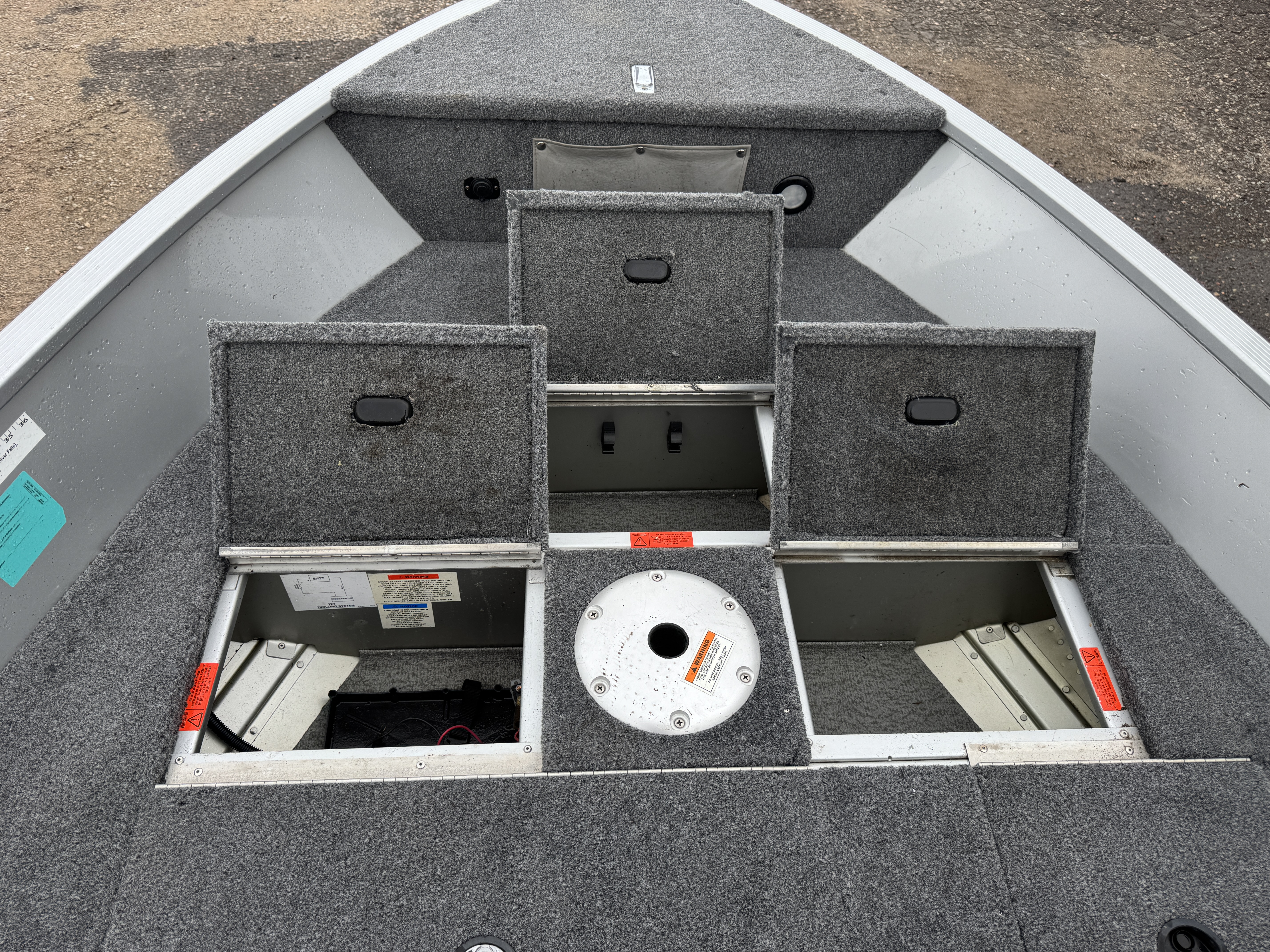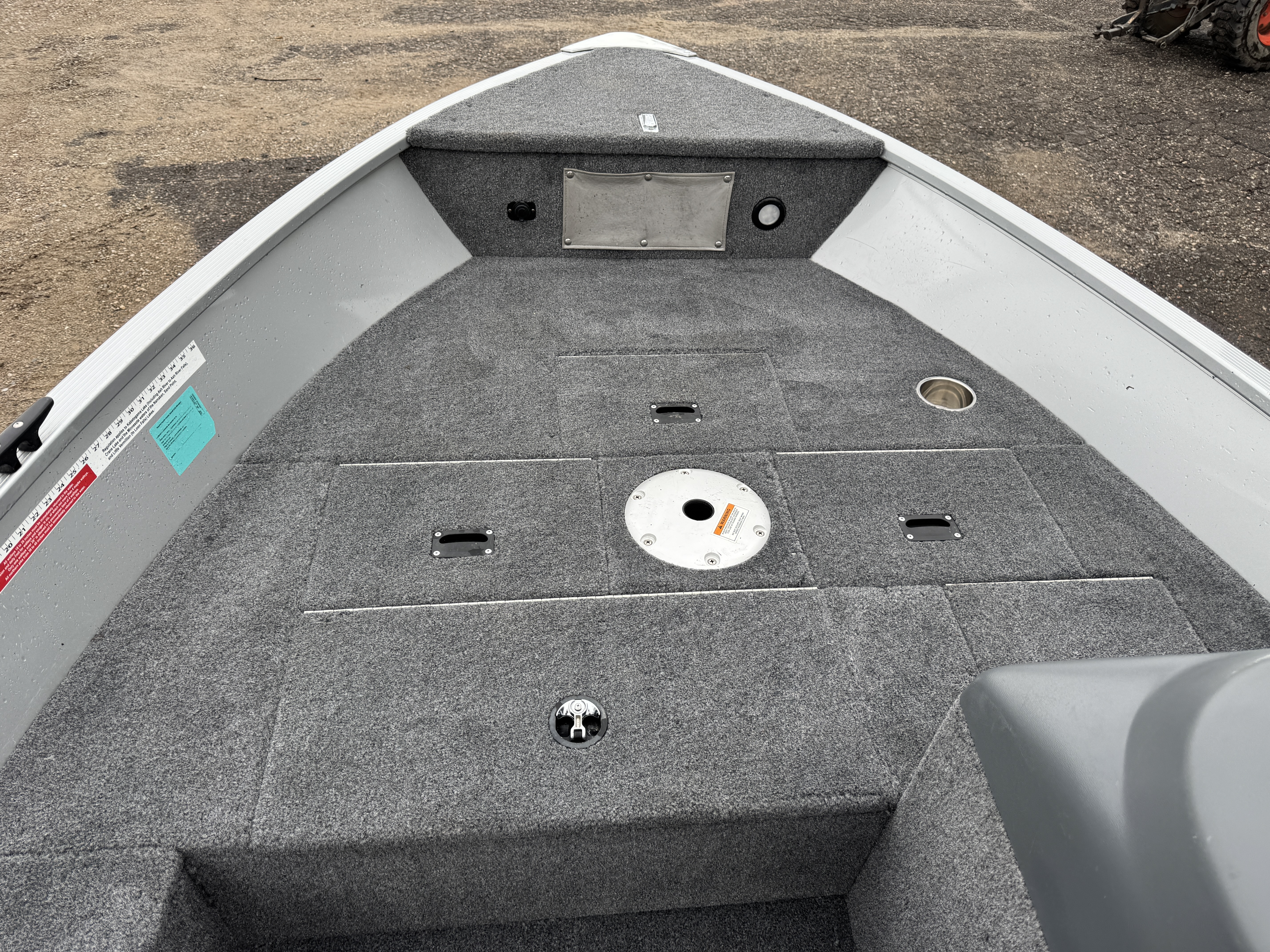 single console, aluminum fishing boat features 2 fold down fishing seats with 6