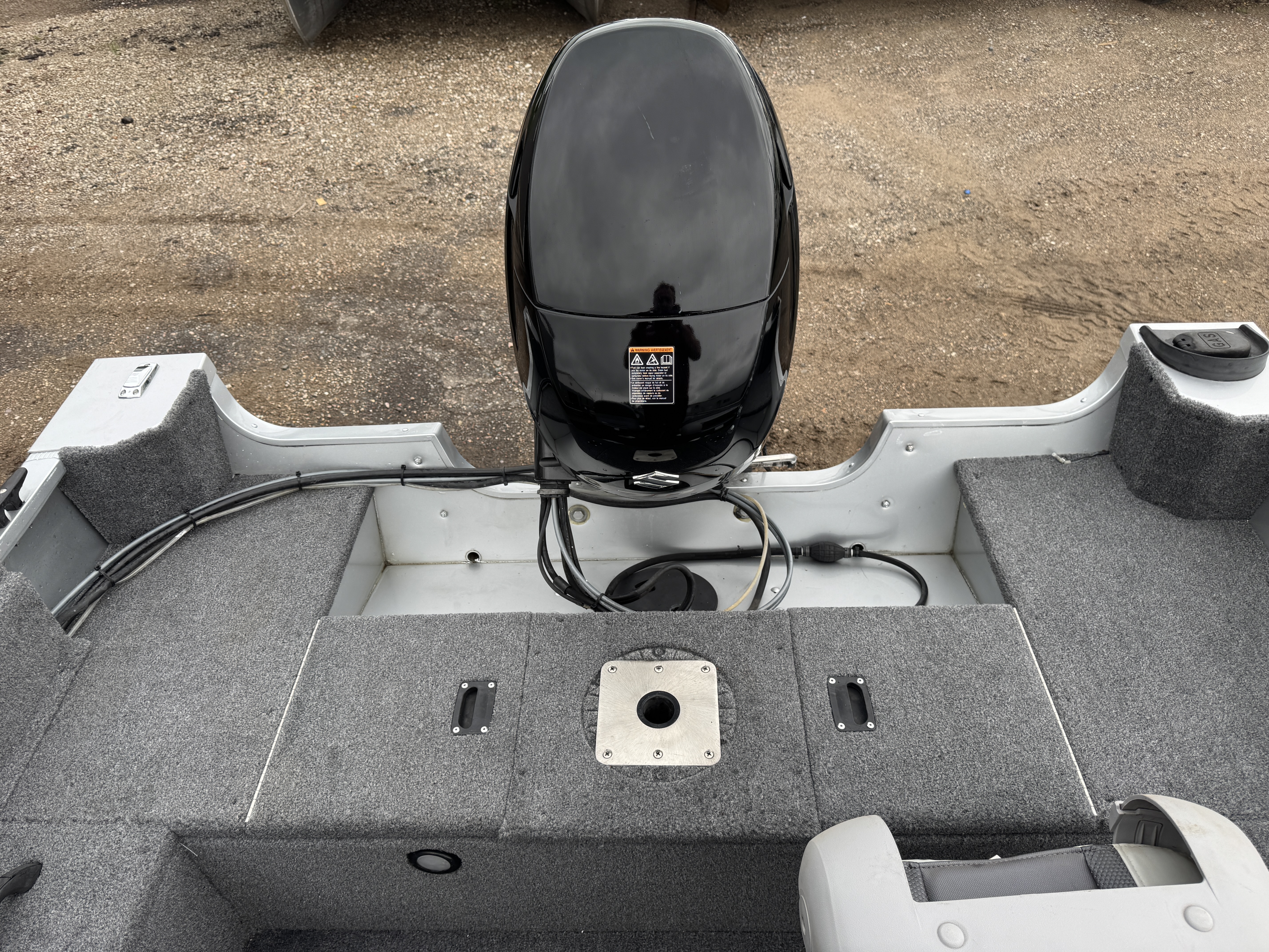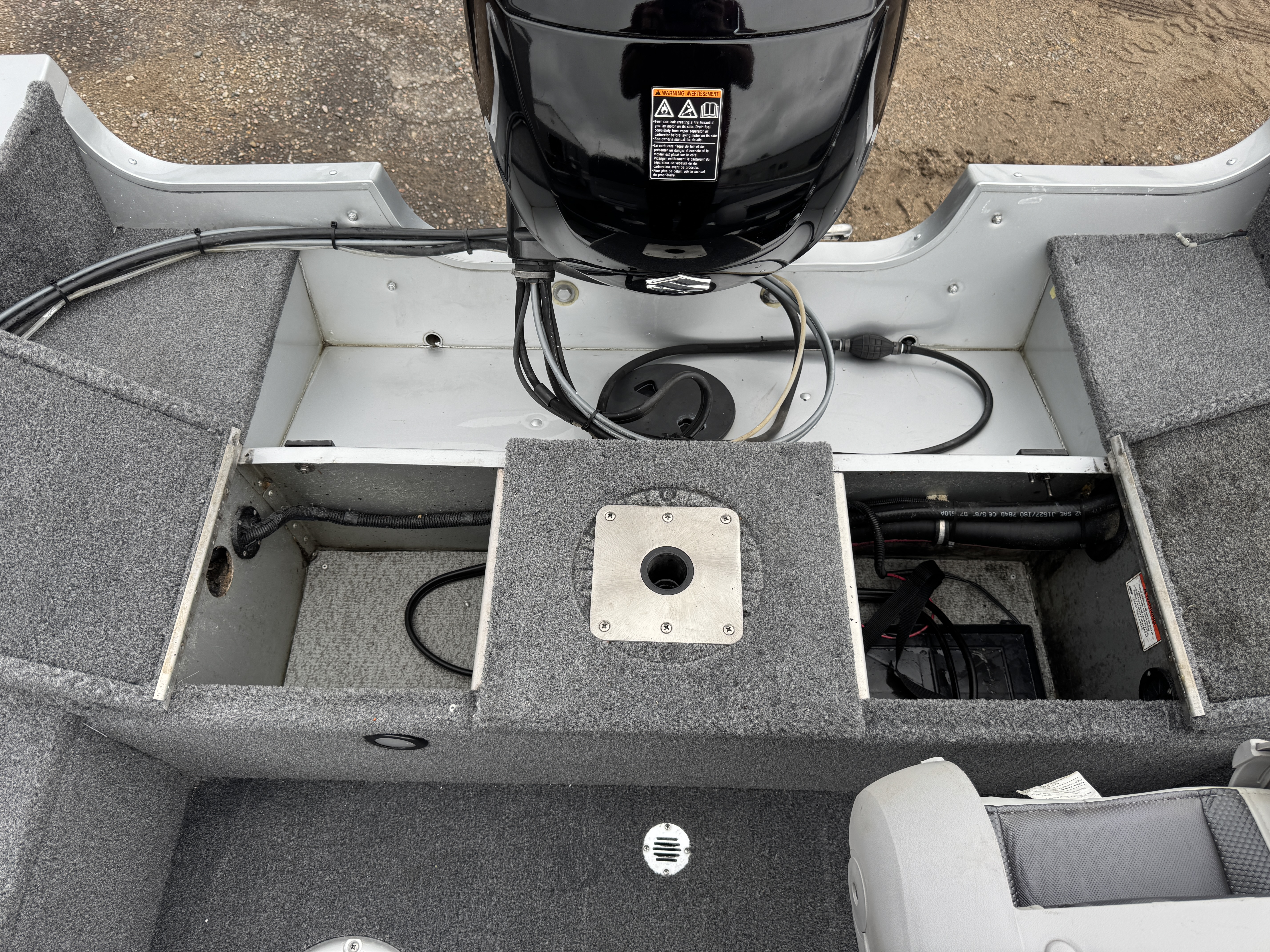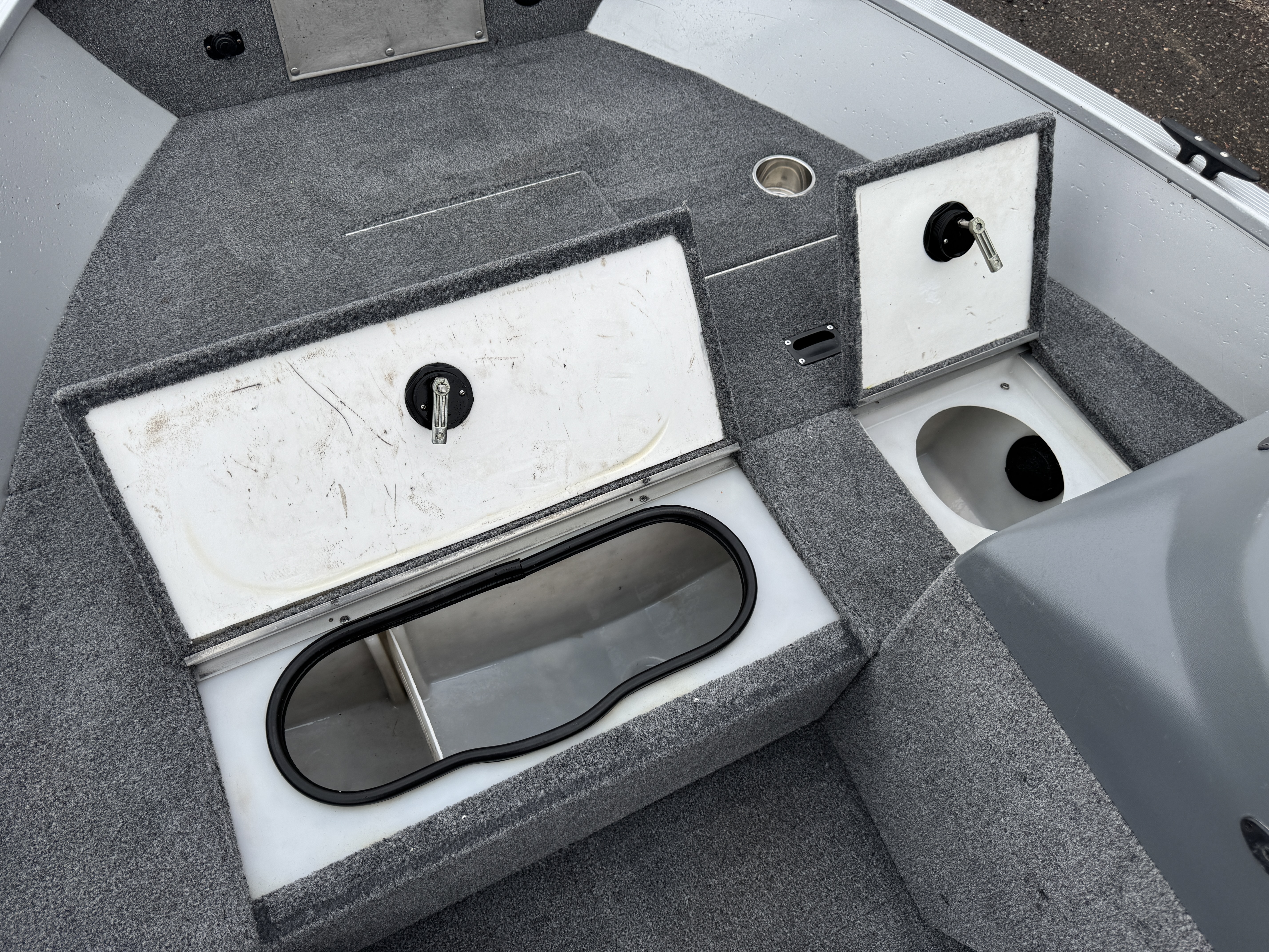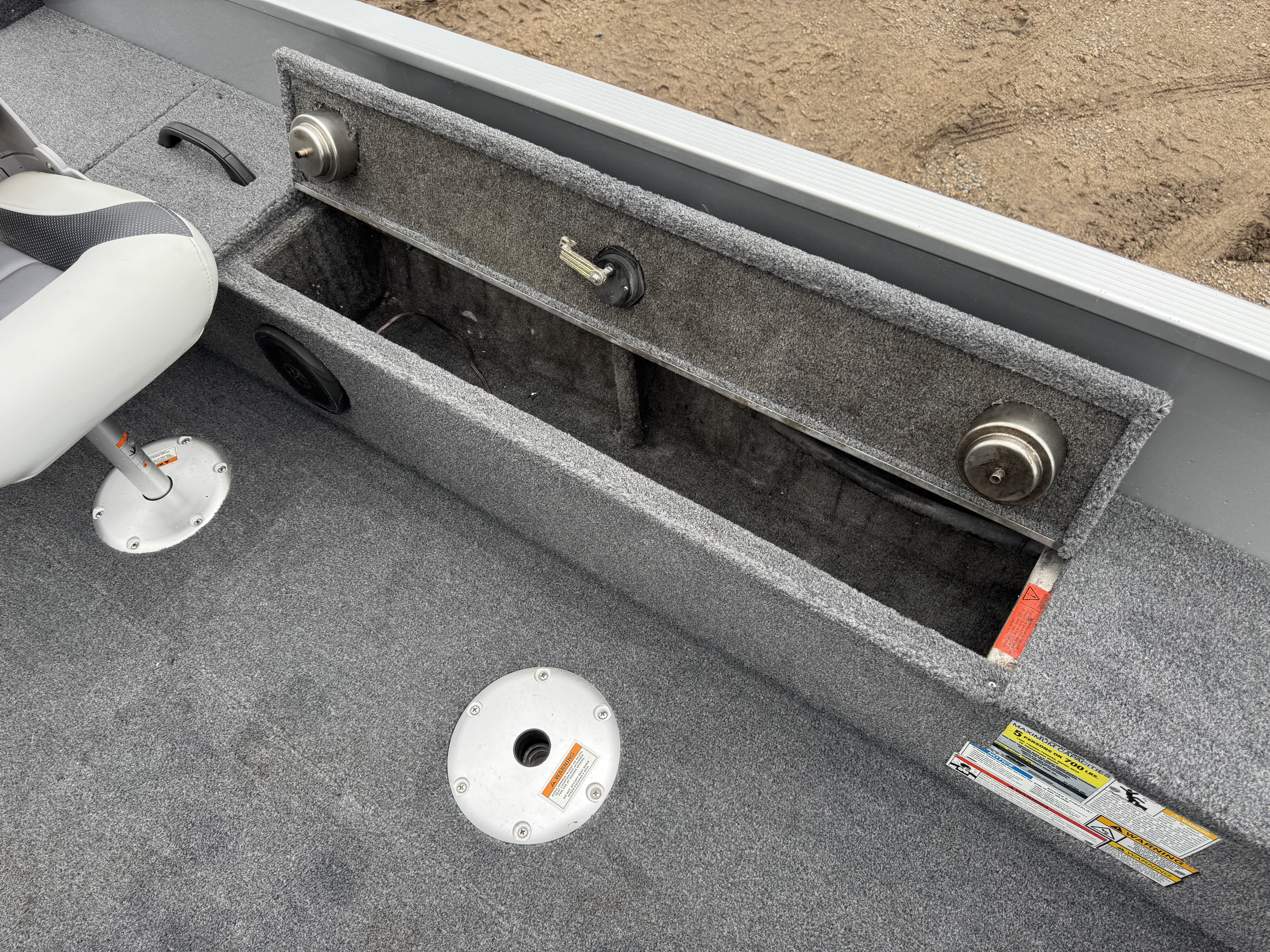 casting deck with 2 storage compartments and a seat mount. There is a courtesy