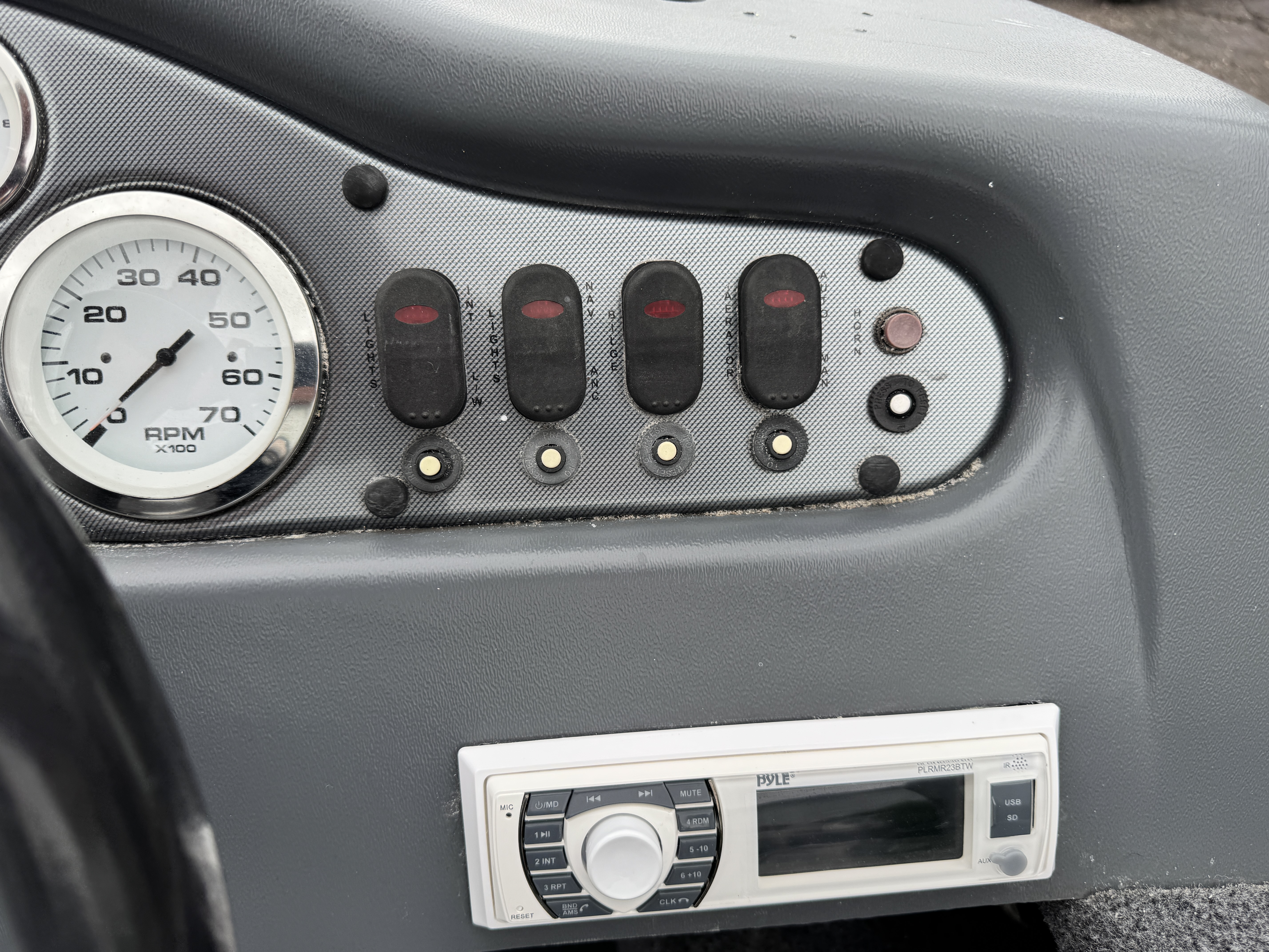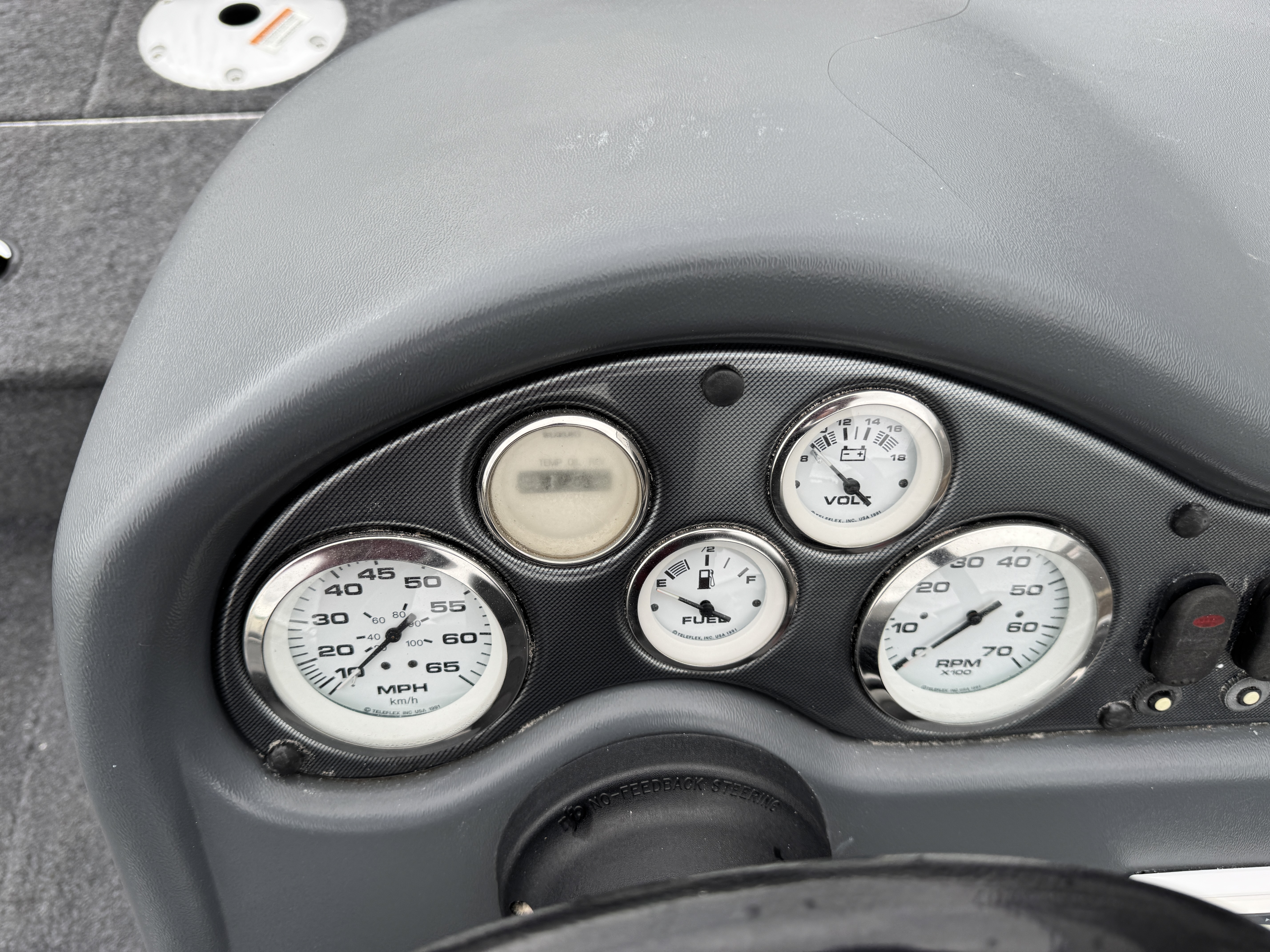 the gunnels, and the console. The helm features a Speedometer, Tachometer, Fuel