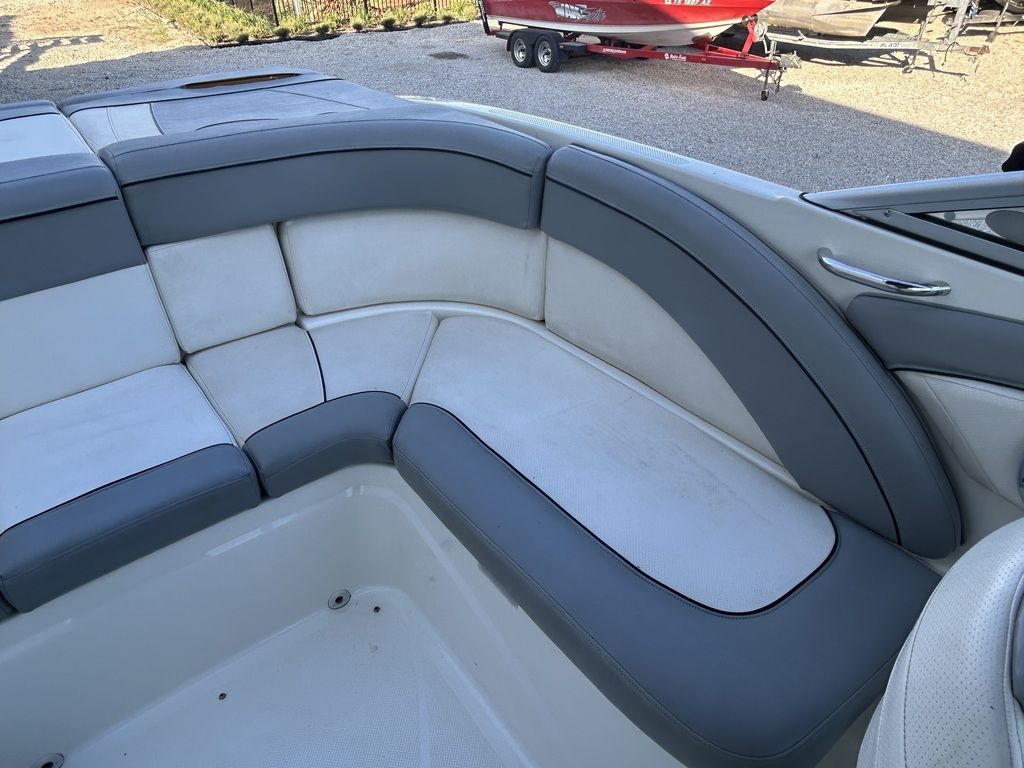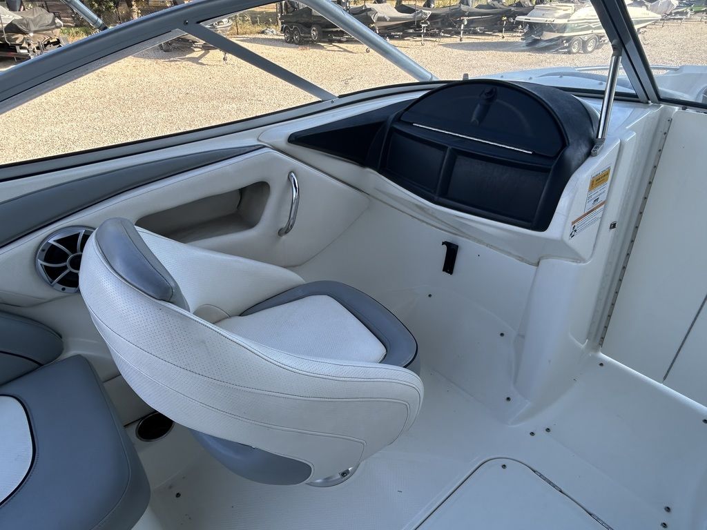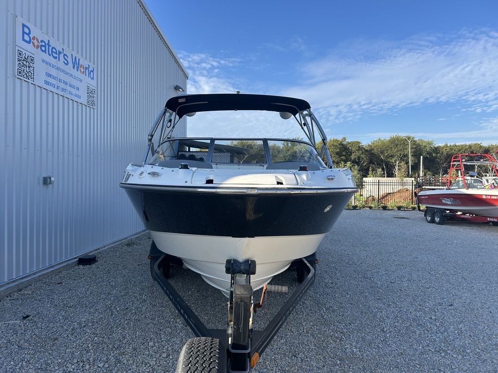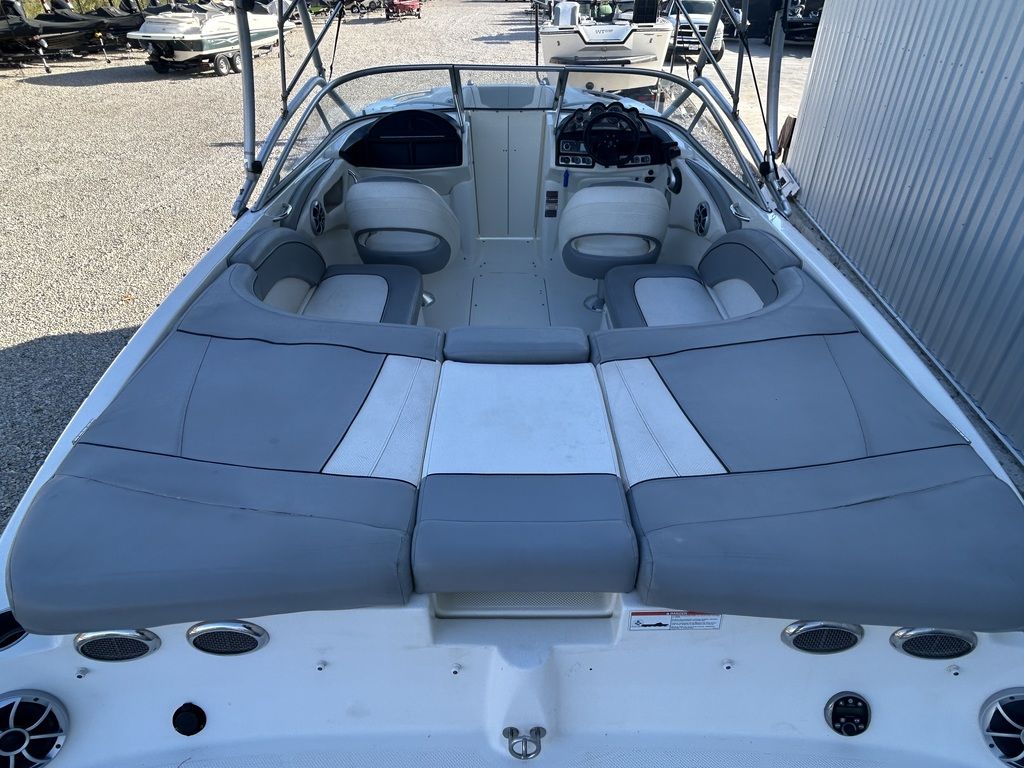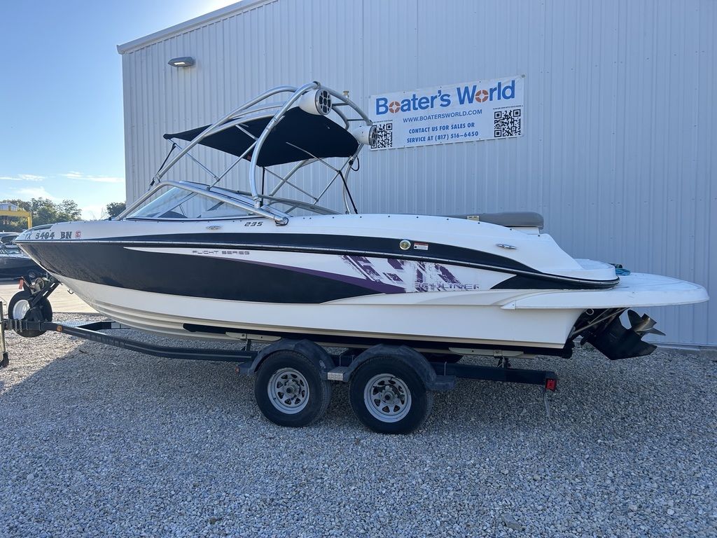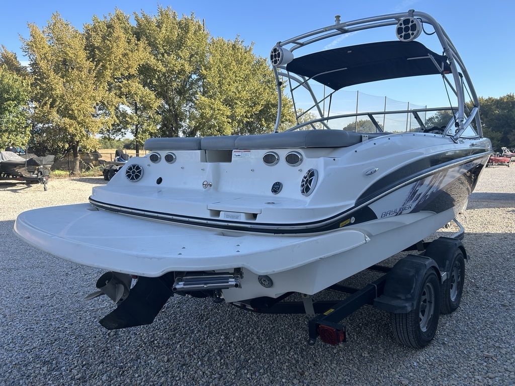 The 2011 Bayliner 235 BR is a 23.5-foot bow rider boat designed for watersports and cruising, with a spacious U-shaped seating area for 11 passengers. It features a large swim platform, a convertible sun pad, a 260 hp MerCruiser 5.0 MPI engine, and storage solutions both in-deck and under seats. The boat is also equipped with standard amenities like a stereo, depth finder, bimini top, and comes with a trailer.