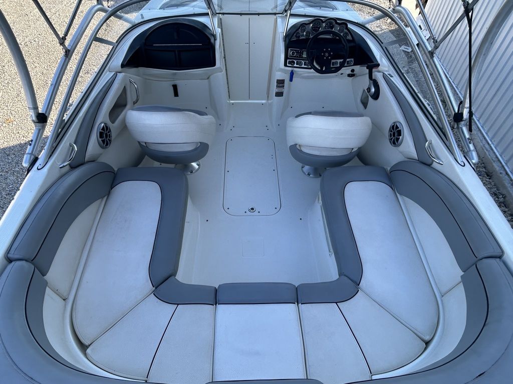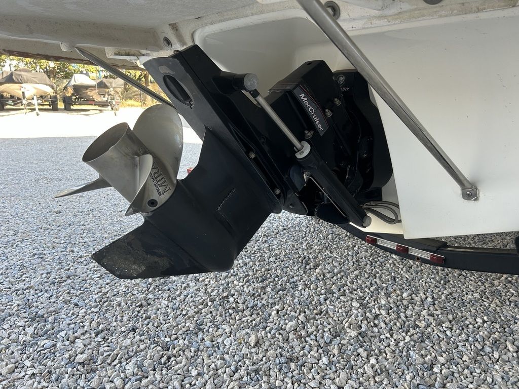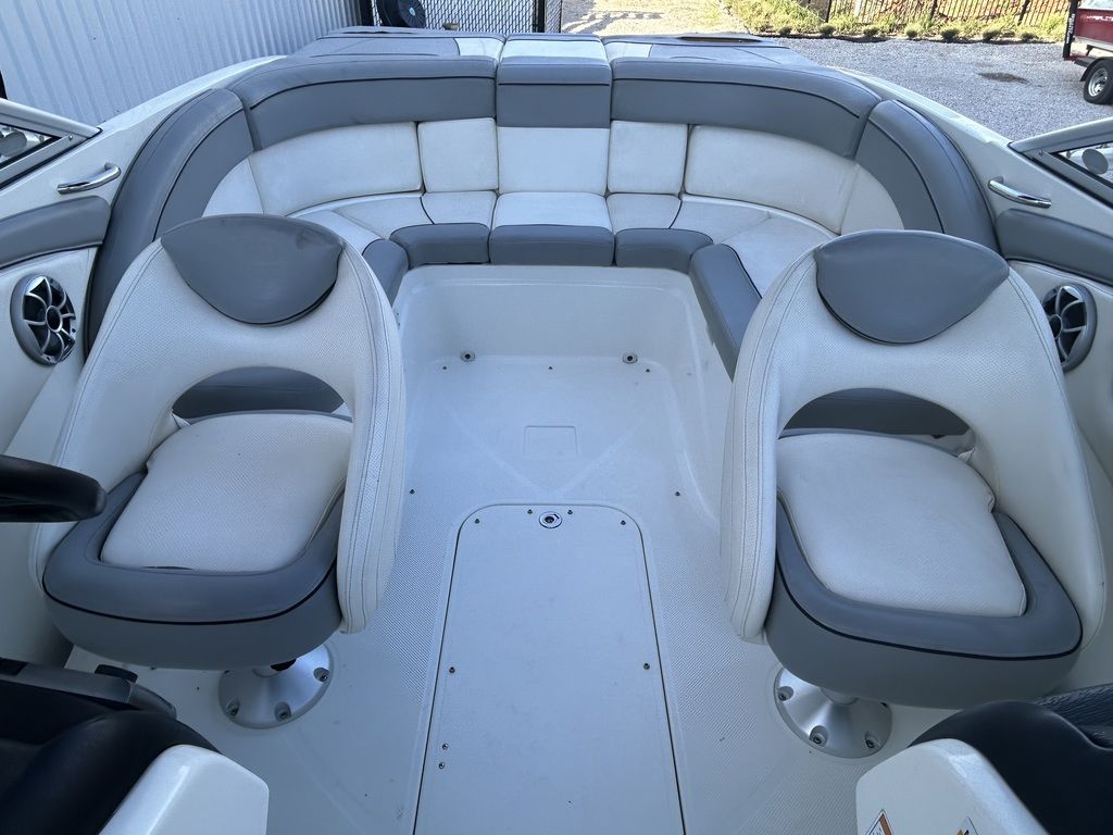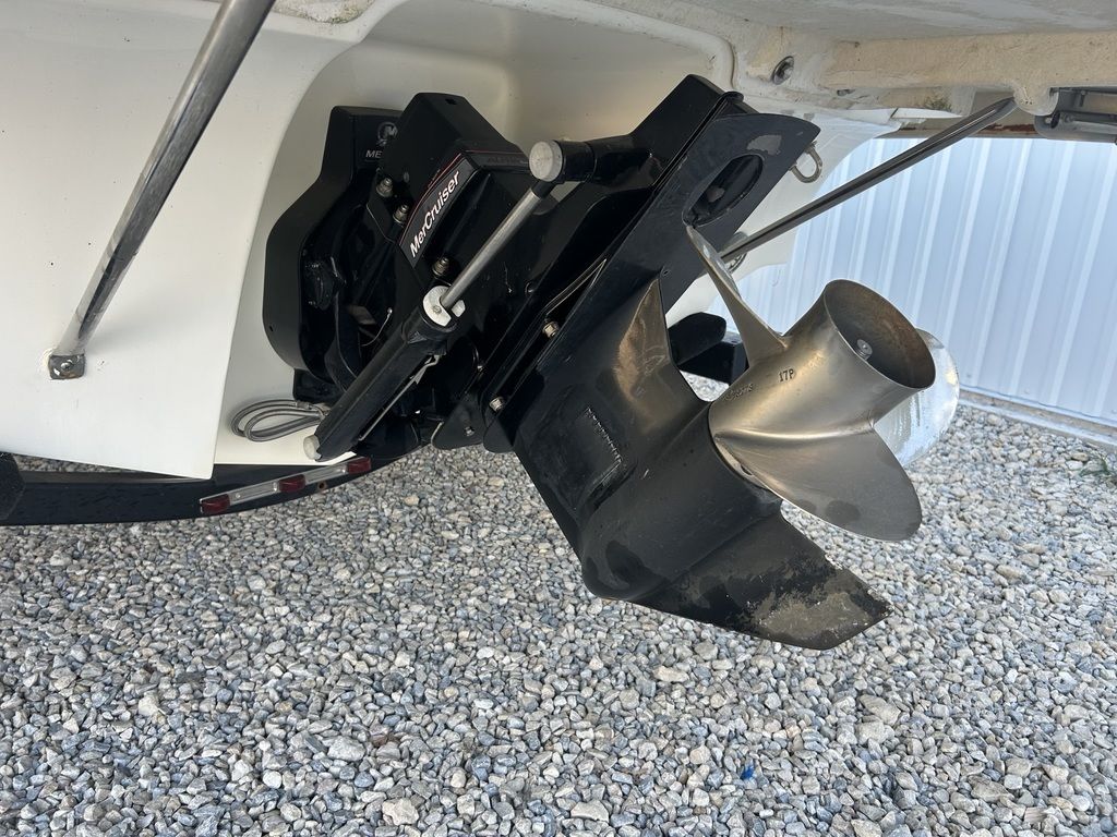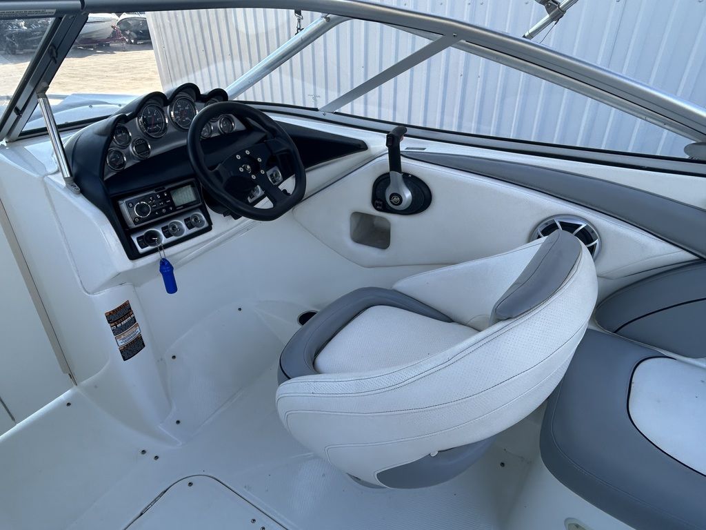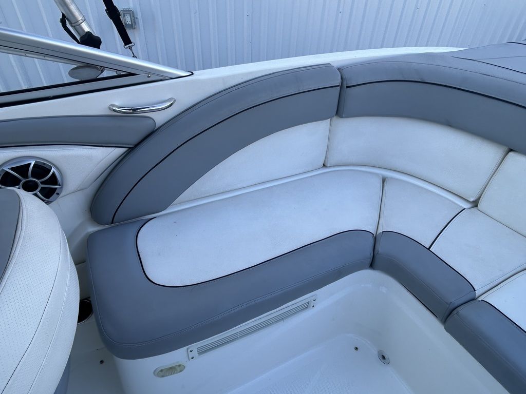 The 2011 Bayliner 235 BR is a 23.5-foot bow rider boat designed for watersports and cruising, with a spacious U-shaped seating area for 11 passengers. It features a large swim platform, a convertible sun pad, a 260 hp MerCruiser 5.0 MPI engine, and storage solutions both in-deck and under seats. The boat is also equipped with standard amenities like a stereo, depth finder, bimini top, and comes with a trailer.