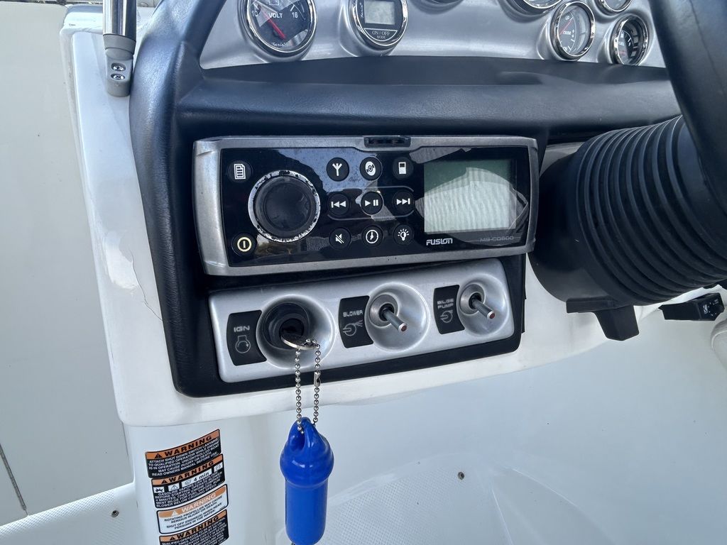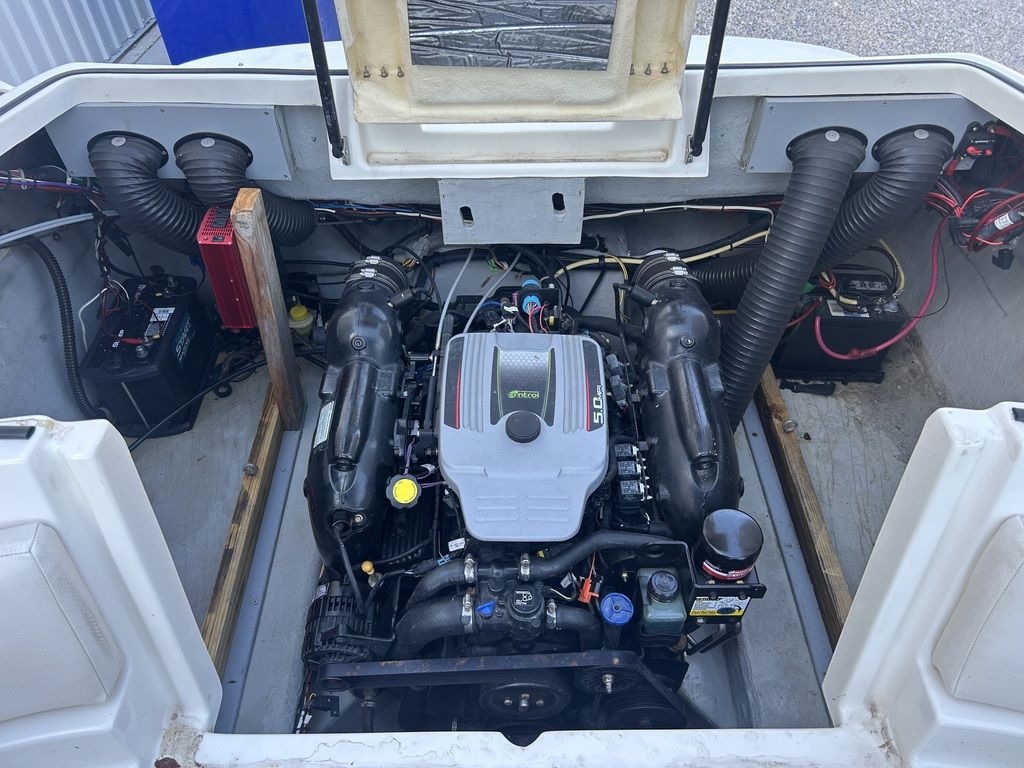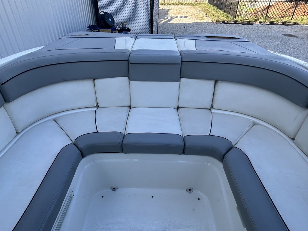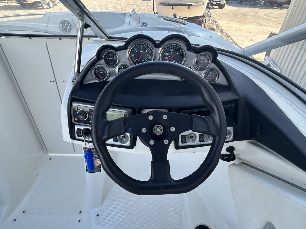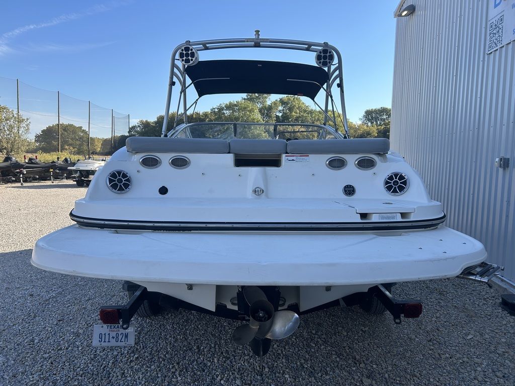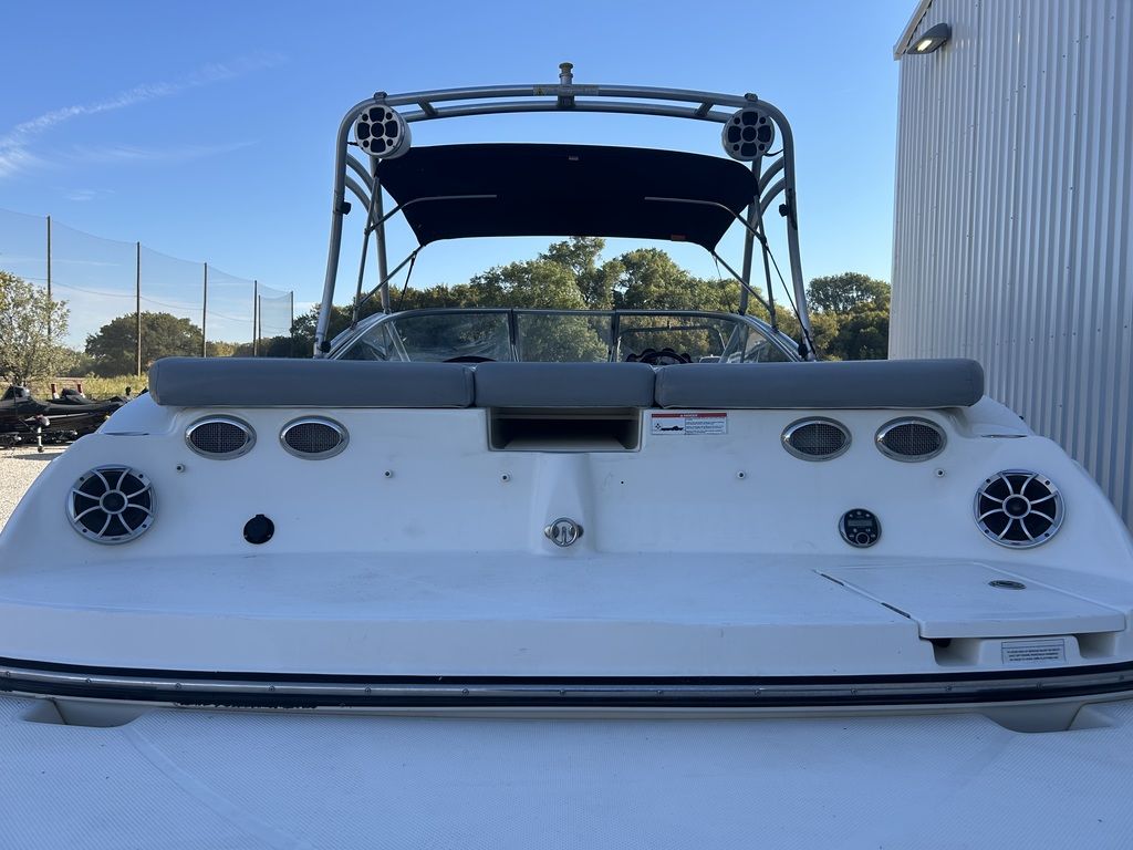 The 2011 Bayliner 235 BR is a 23.5-foot bow rider boat designed for watersports and cruising, with a spacious U-shaped seating area for 11 passengers. It features a large swim platform, a convertible sun pad, a 260 hp MerCruiser 5.0 MPI engine, and storage solutions both in-deck and under seats. The boat is also equipped with standard amenities like a stereo, depth finder, bimini top, and comes with a trailer.