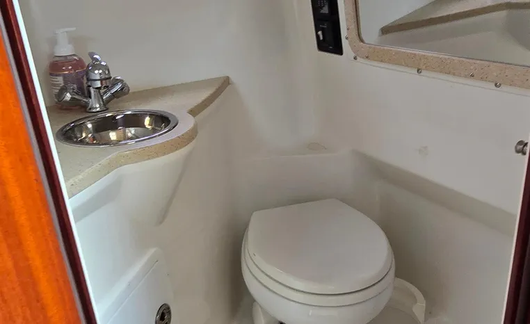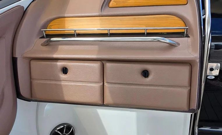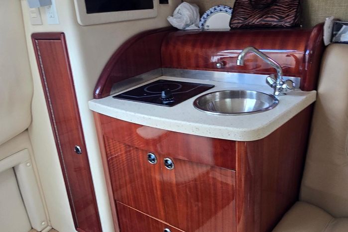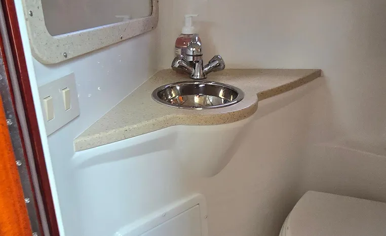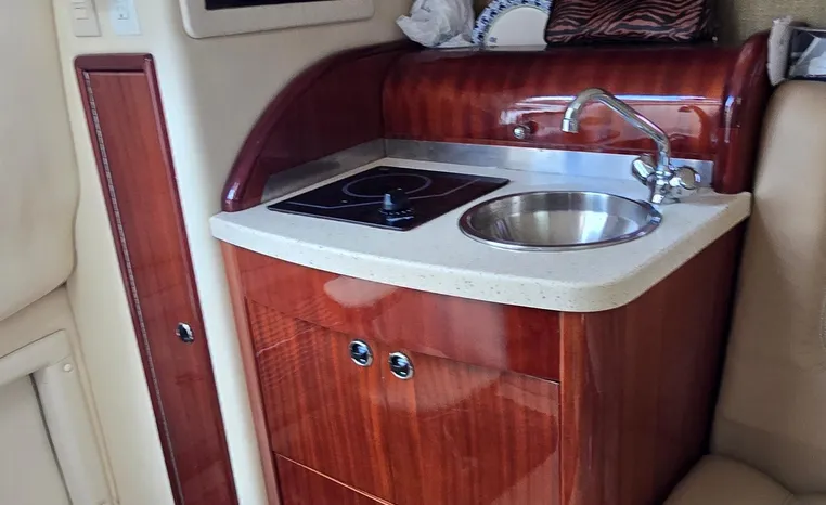 . It is geared toward day-boating and entertaining in style, rather than extended cruising.