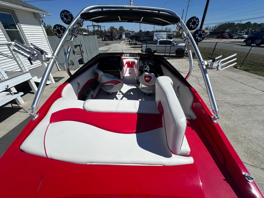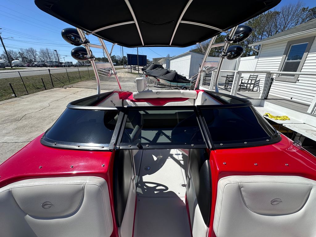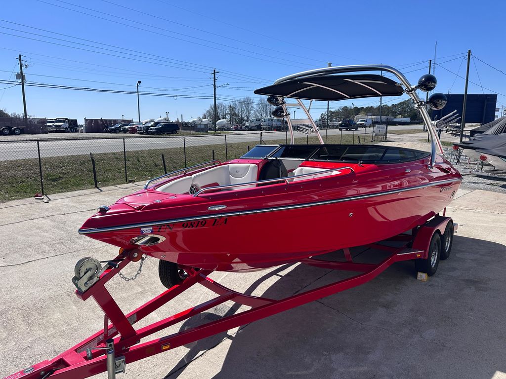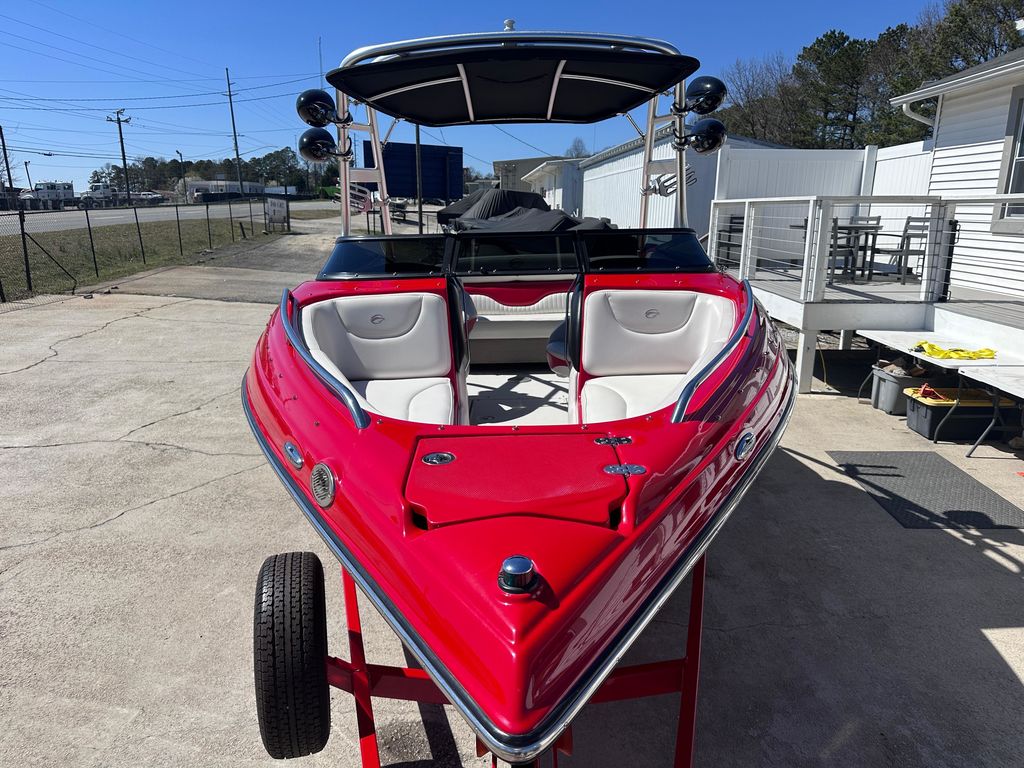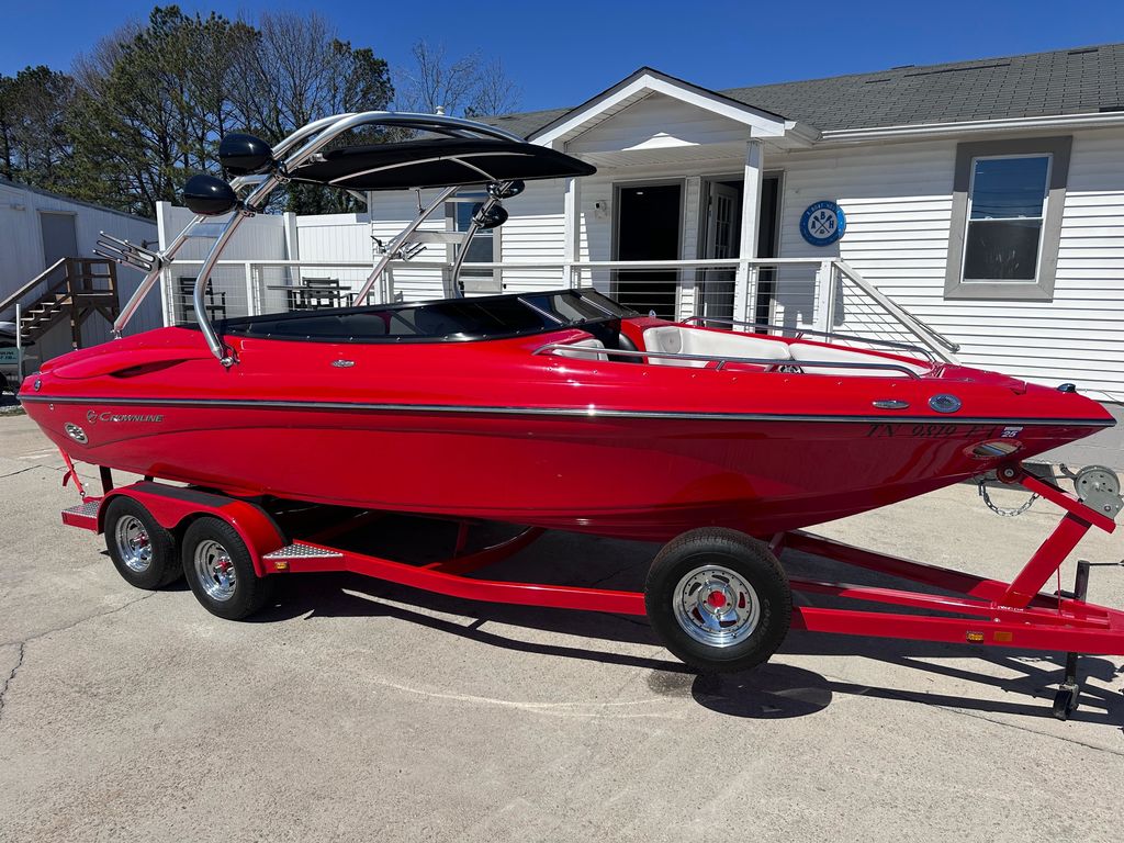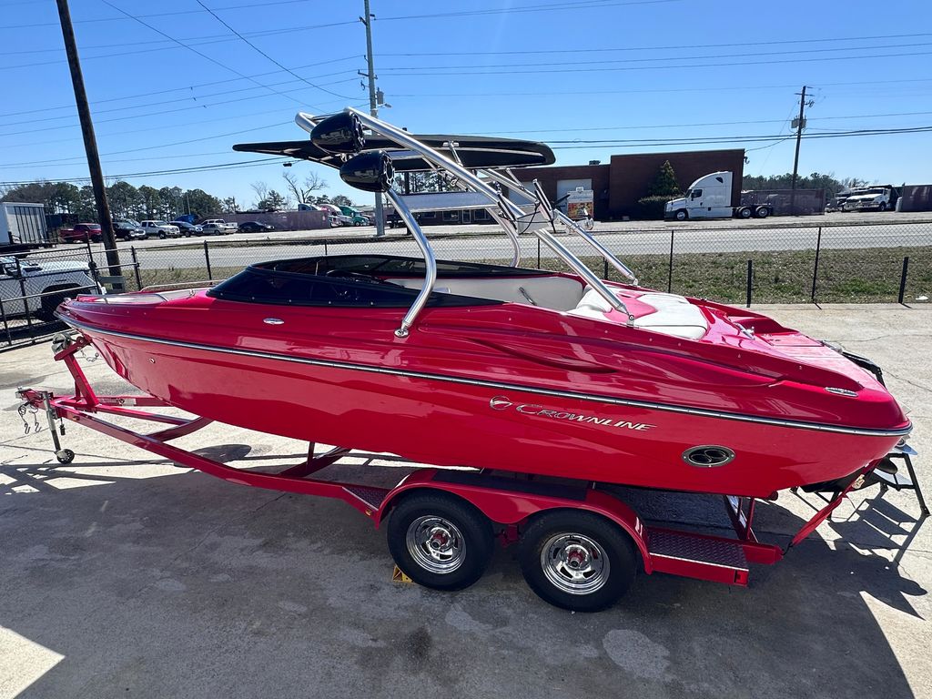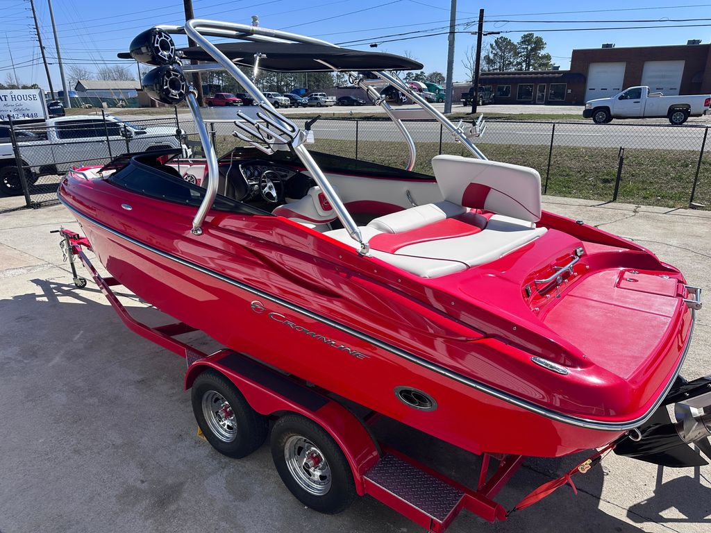 The unbelievable list of standard features (many are optional on most other boat lines) provided on the new E 235 definitely earn a “two thumbs up”! These include a battery charger, snap-in cockpit carpet, bimini top, one piece boat cover, depth sounder, docking lights, dual battery switch, LED cockpit lighting, stainless steel windshield header and lock, Kicker marine stereo, portable table that stows away in the undermount cockpit storage drawer…..and so much more! Check out this amazing new Crownline at your local dealer, then tow it home on the standard color matched Heritage trailer with swing tongue, LED lighting and brakes on both axles!