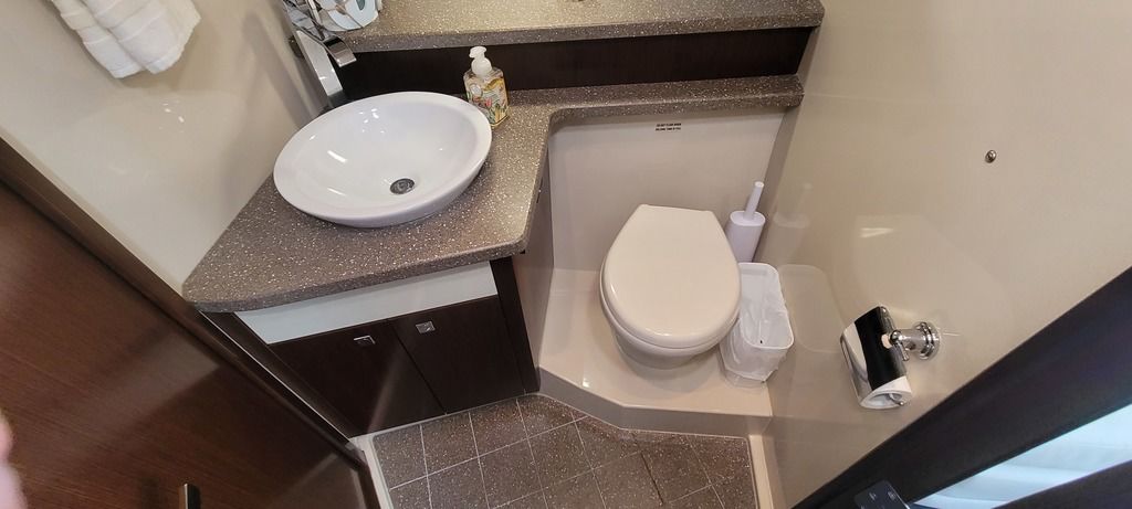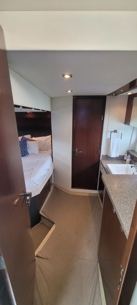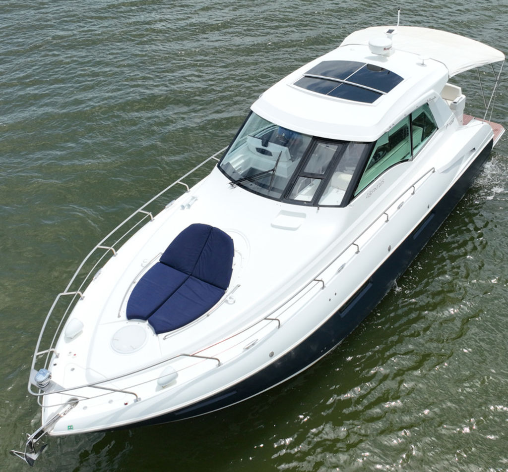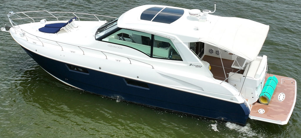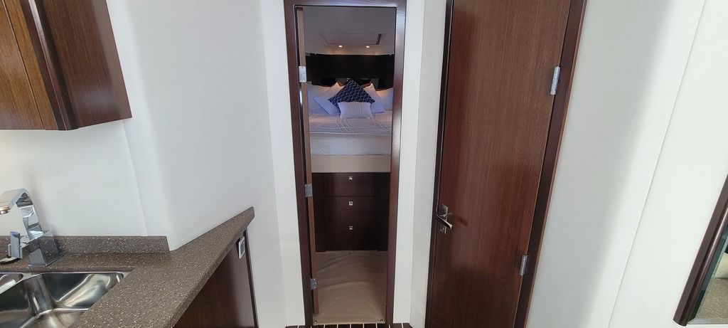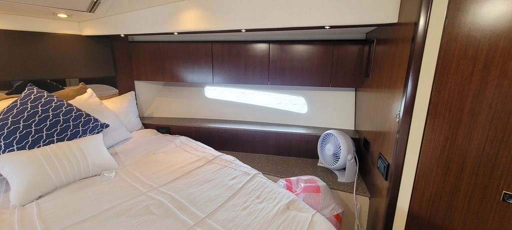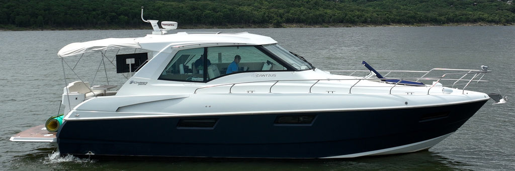 The Cruisers Cantius 48 is a boat with a unique layout with ample space for all. The two state room, Bow VIP and Full Beam Master, are both equipped with en-suite head and showers, cedar hanging closets, and storage. The gracious Galley and Seating are spacious and illuminated with great natural light
