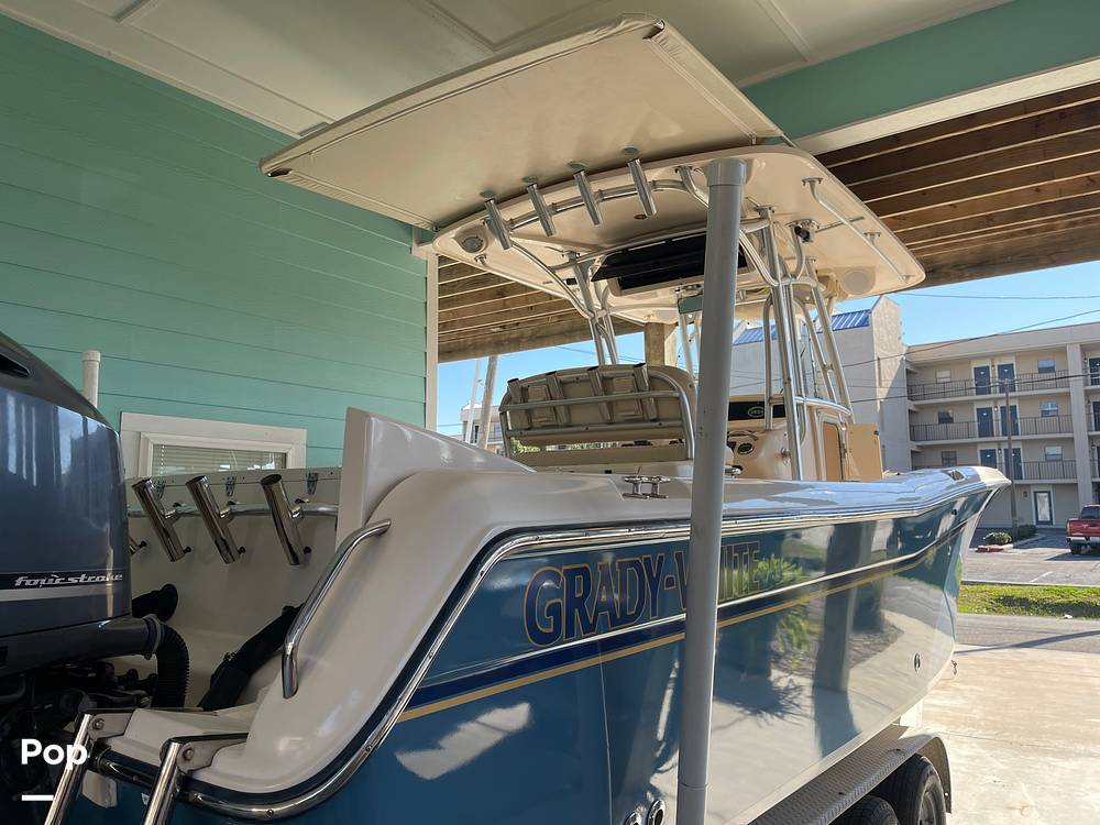 The hull is constructed using Grady-White's SeaV2 hull design, known for its excellent sea-keeping abilities and smooth ride. The boat is built with high-quality materials to ensure durability and longevity.