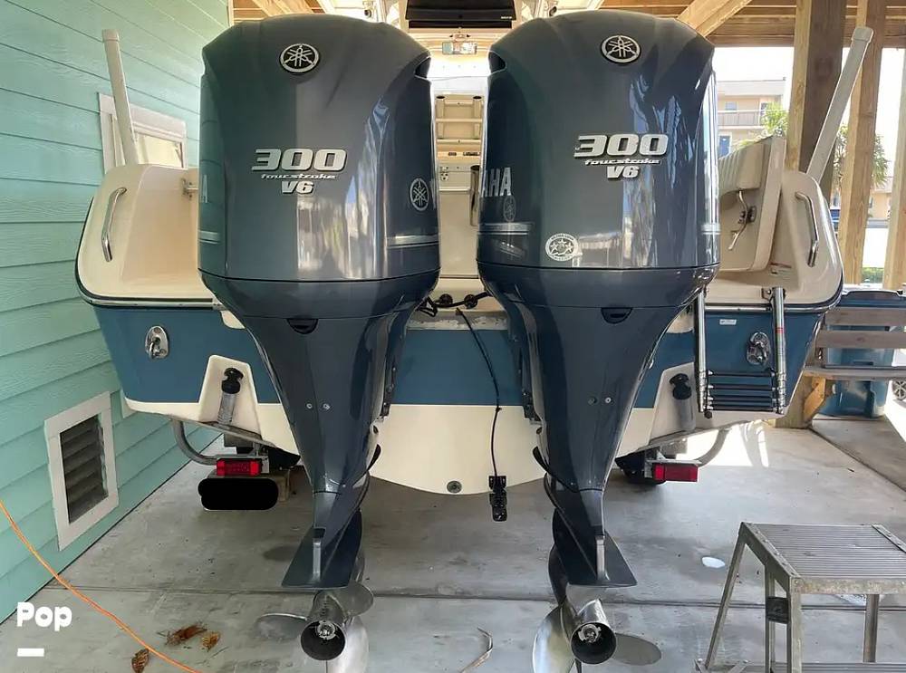 The 283 Canyon is equipped with twin Yamaha 300 horsepower outboard engines for optimal power and maneuverability.