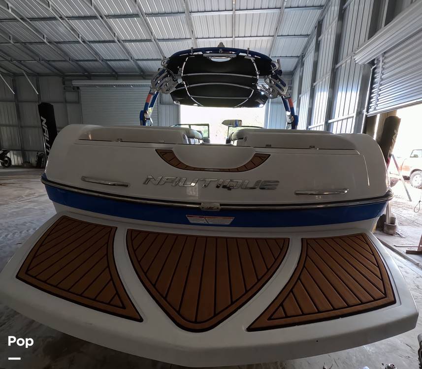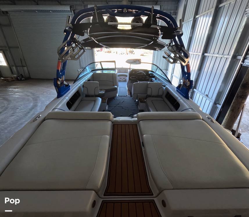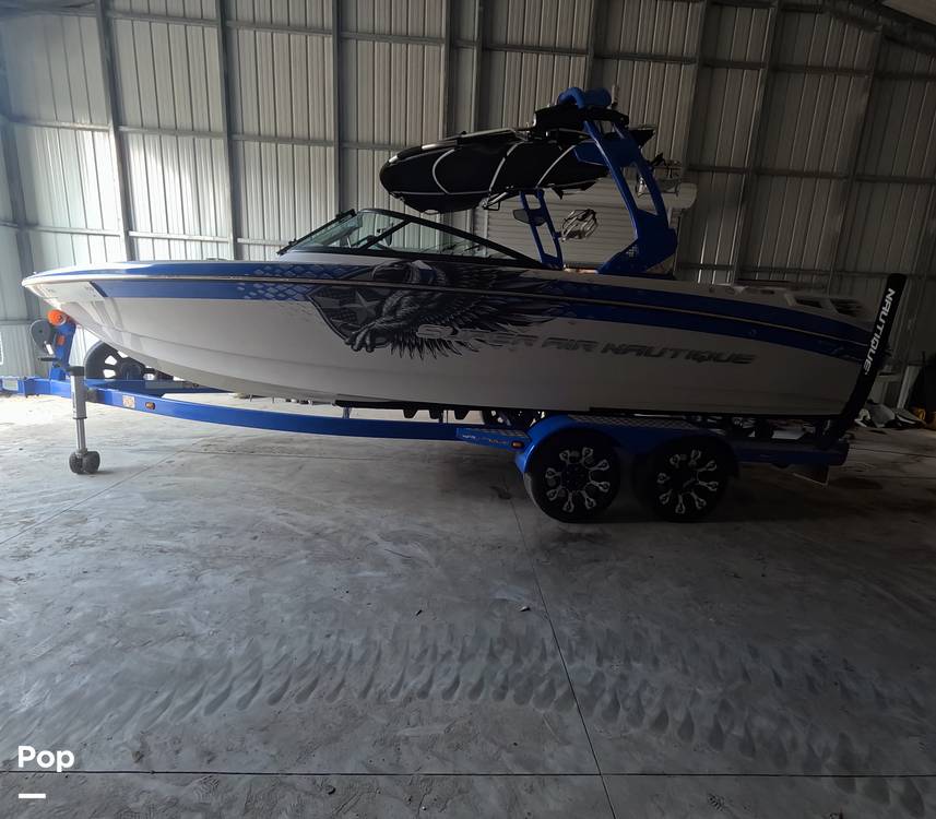 This 2011 Super Air Nautique 230 Team Edition is a 23-foot fiberglass wakeboard/ watersports boat with a Flight Control Tower, integrated ballast (about 1,080 lbs), arena seating, and the LINC system for GPS speed control and ballast management.