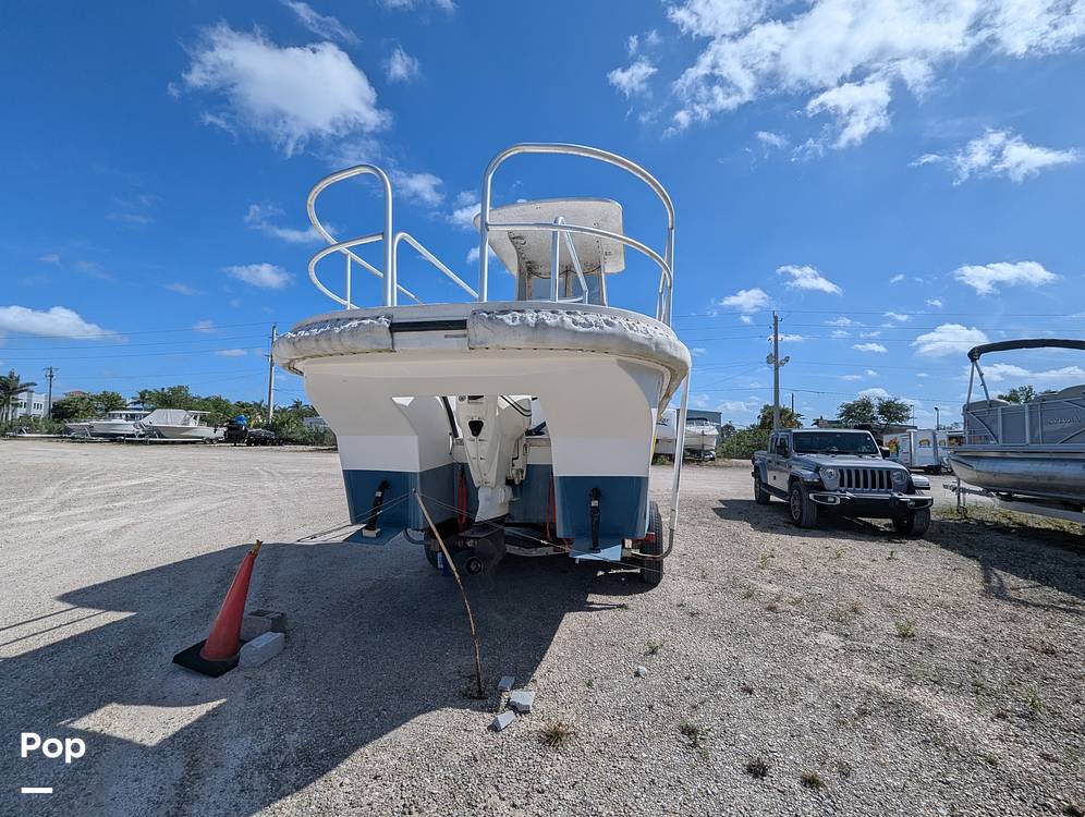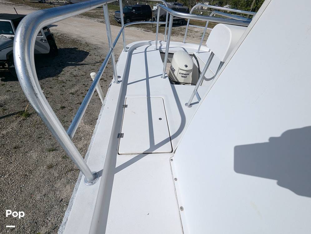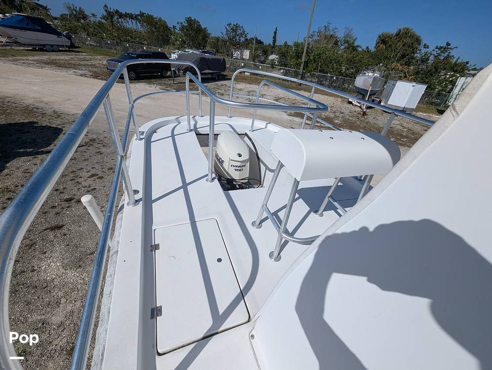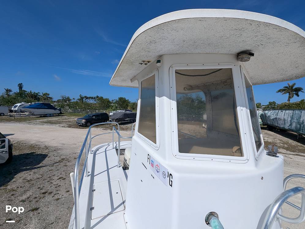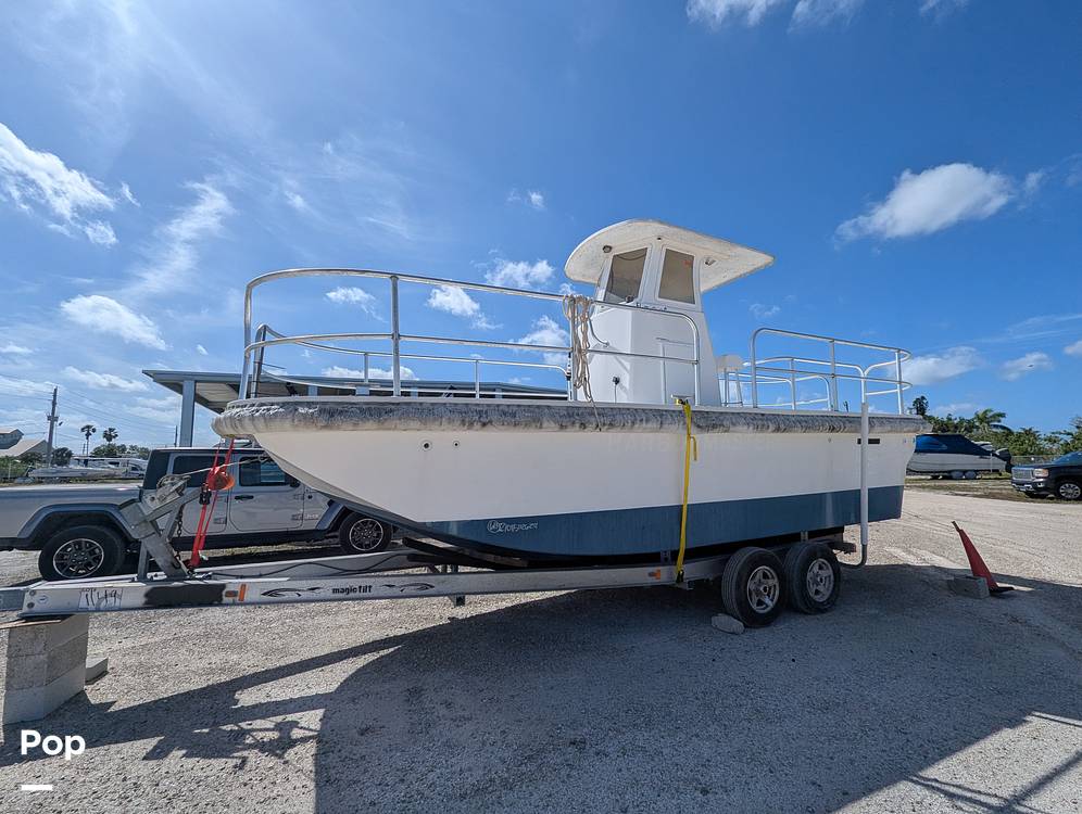 This 26T has an inset motor well for good maneuverability and vessel protection. Her standard equipment includes a built-in 45-gallon aluminum fuel tank, trim tabs, hydraulic steering, and a self-bailing deck.