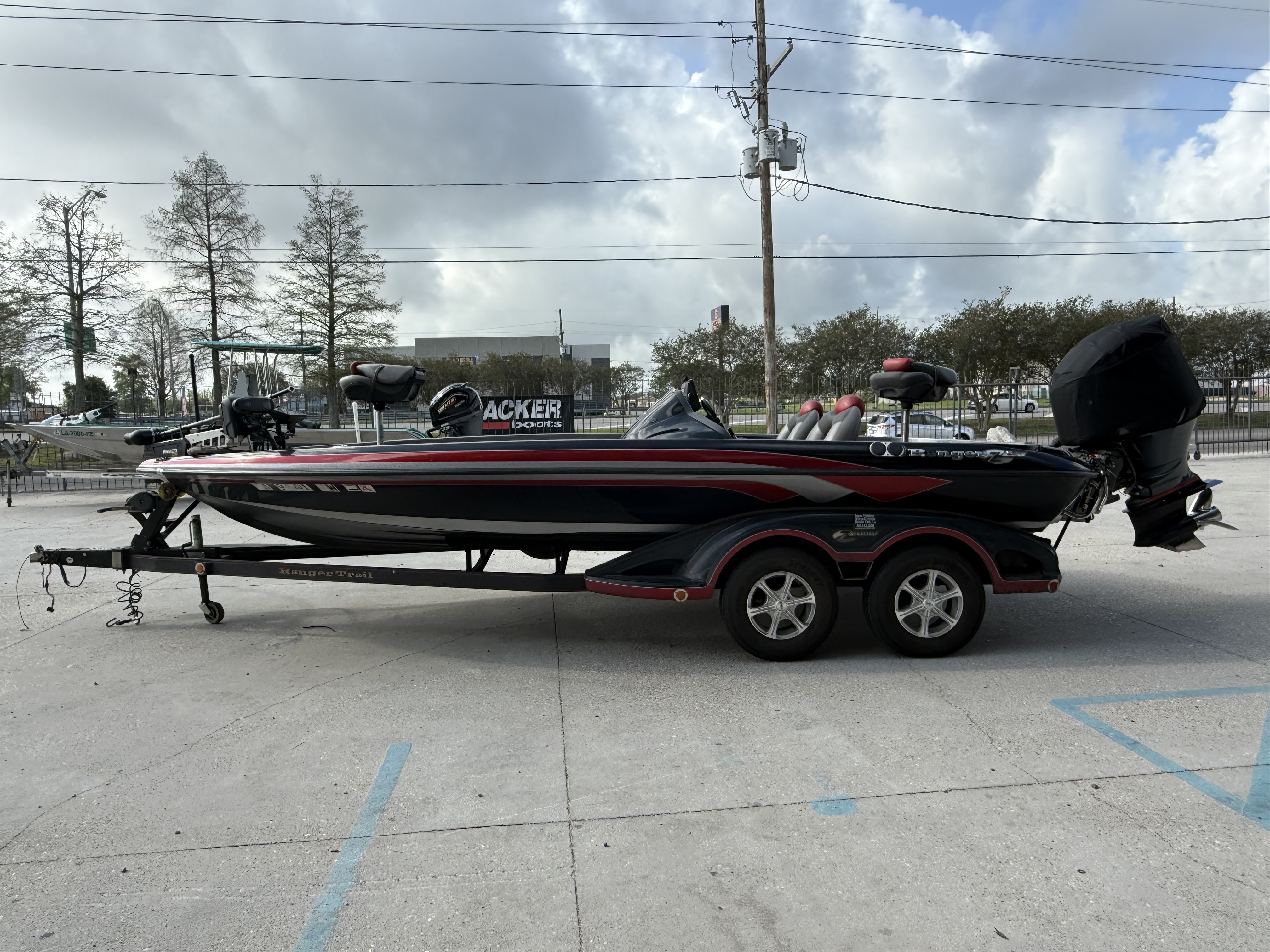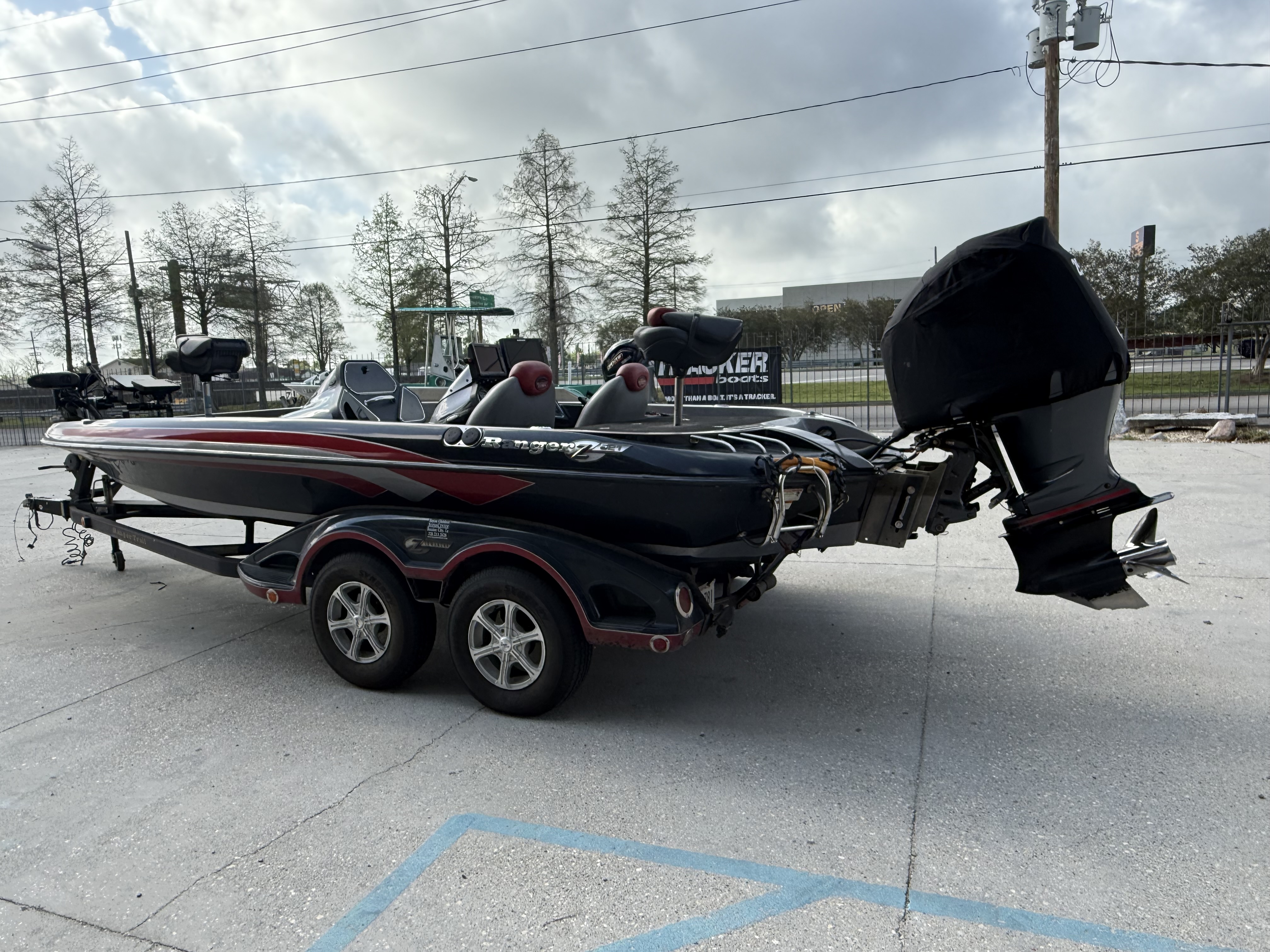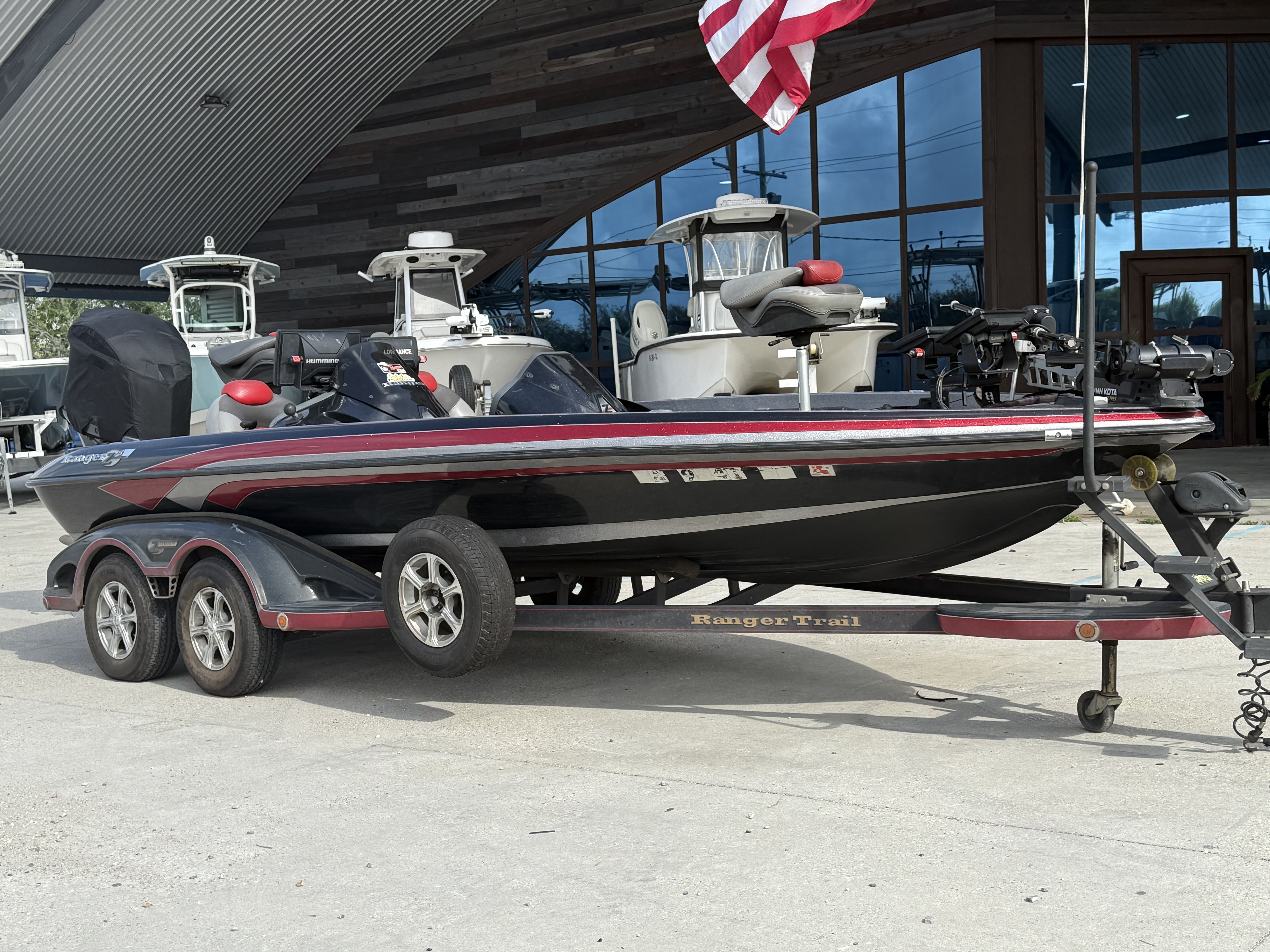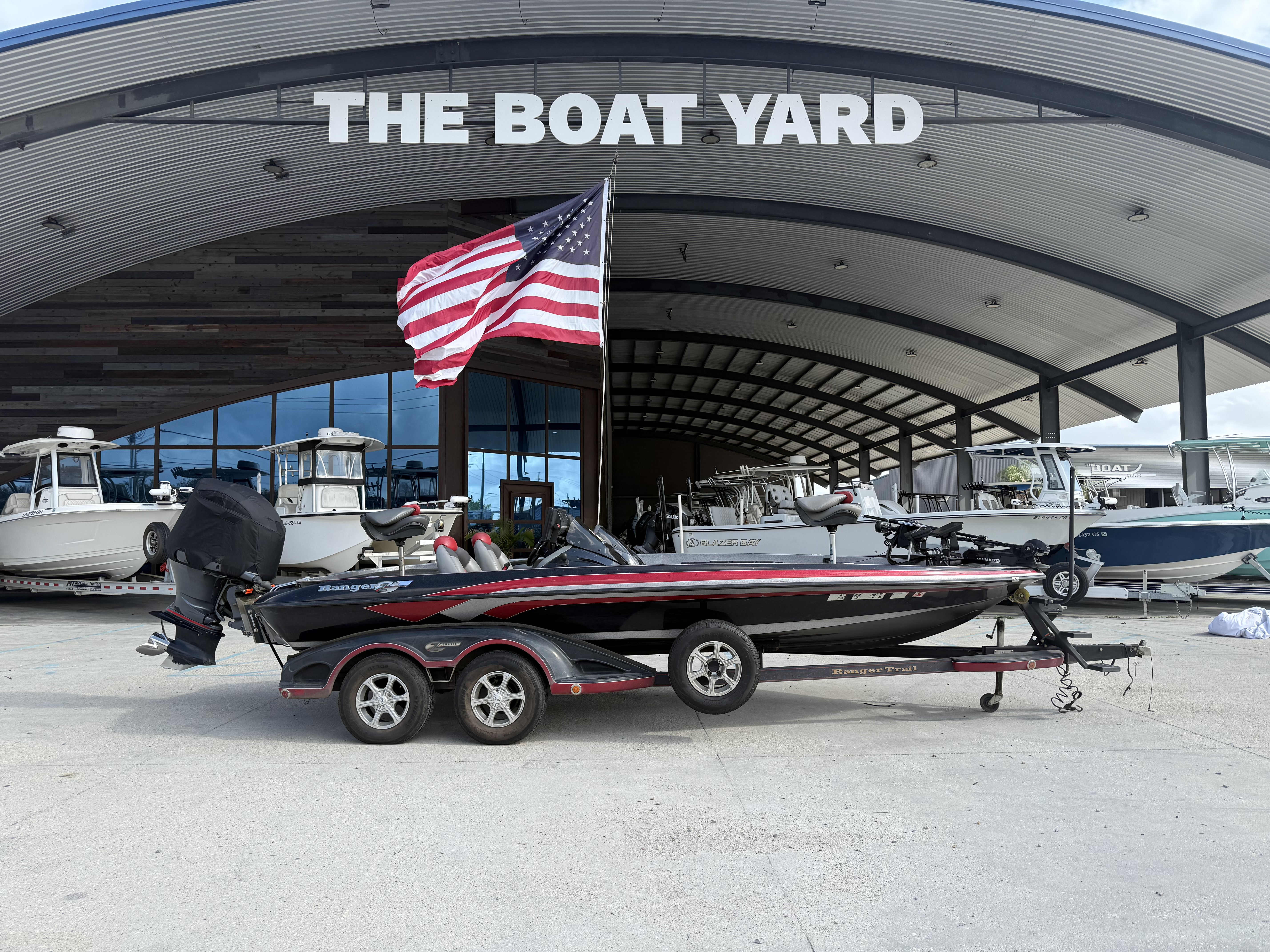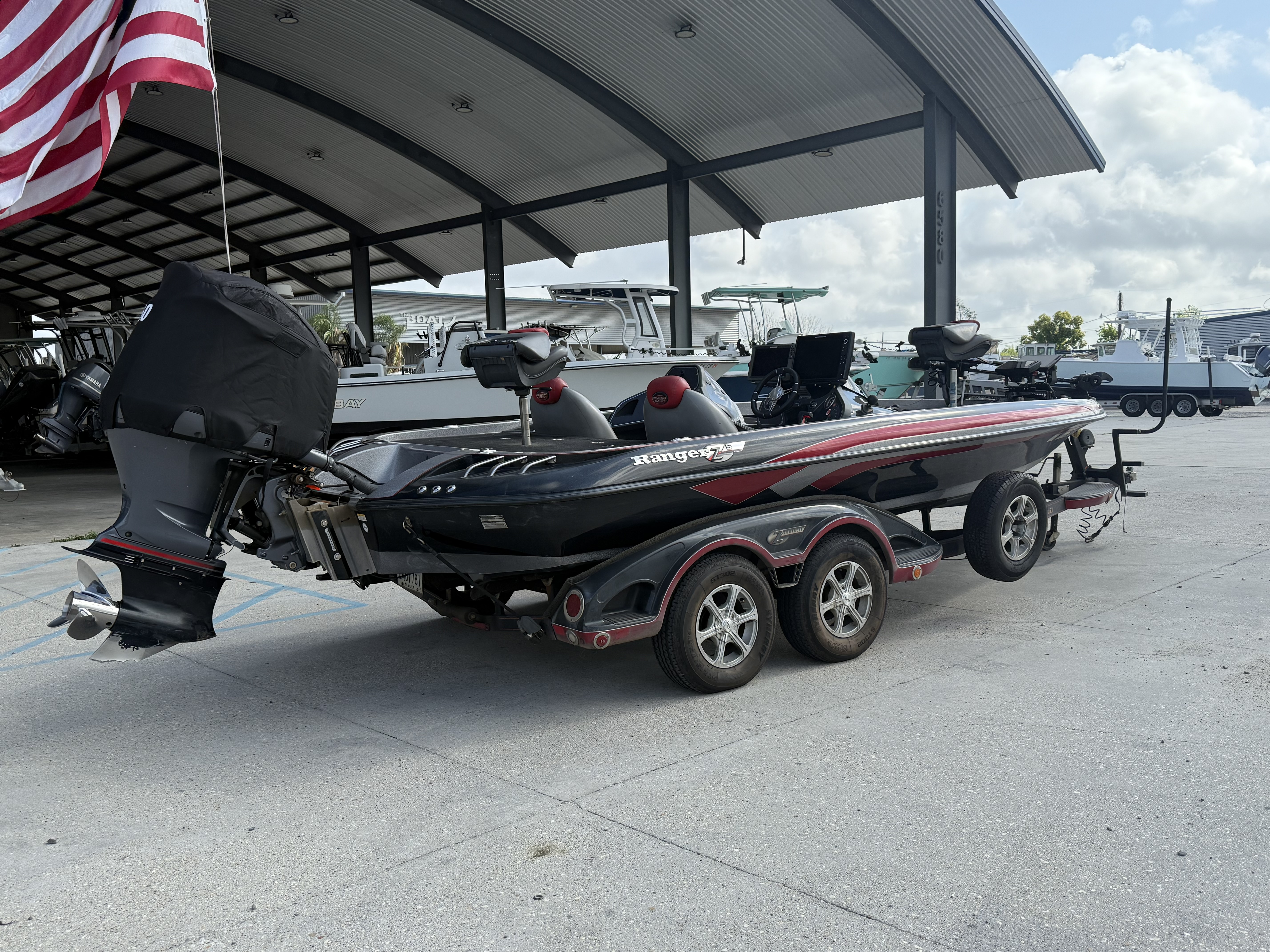 Custom-built tandem-axle trailer matched specifically to the hull.