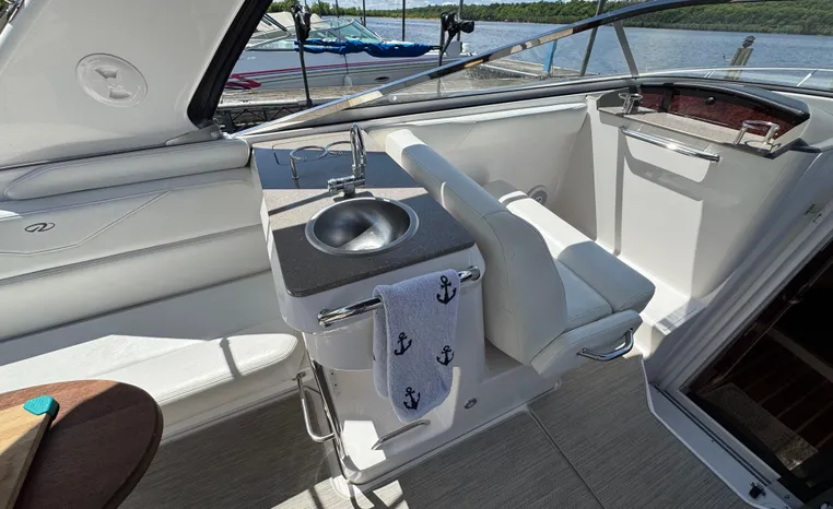 100% Fresh Water. Excellent condition, Low hours on the 5.7 250 HP Volvo engines (480 hours)