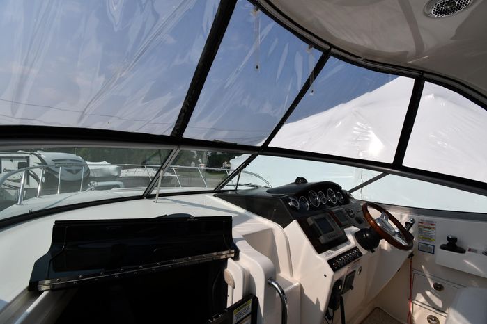 Freshwater / Great Lakes boat since new this vessel features Twin MerCruiser 350-MAG 300-hp Gas Engine's with DTS Bravo III Stenrdrives (w/Joy-Stick Piloting) with 504 hours. Notable features include but are not limited to the following: 2021 Tandem-Axle Trailer, Air-Conditioning & Heat, Head (Vacuflush) w/Vanity/Sink/Shower, Raymarine A70D (Color) GPS w/Chartplotter, Sony Premium Sound System w/Helm-Mounted Control & iPod/MP3-Connection, Cockpit Wet Bar w/Sink/Refrigerator - Note Built-in Cooler Storage, Power Engine Hatch Lift, and MUCH more!