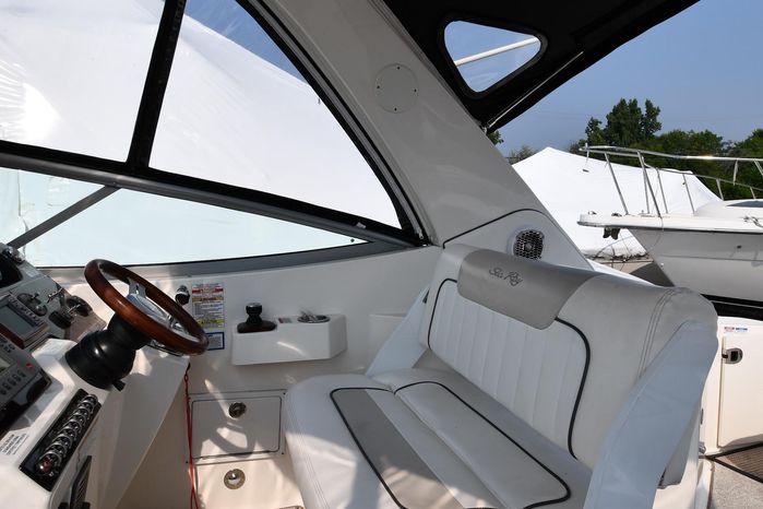 Freshwater / Great Lakes boat since new this vessel features Twin MerCruiser 350-MAG 300-hp Gas Engine's with DTS Bravo III Stenrdrives (w/Joy-Stick Piloting) with 504 hours. Notable features include but are not limited to the following: 2021 Tandem-Axle Trailer, Air-Conditioning & Heat, Head (Vacuflush) w/Vanity/Sink/Shower, Raymarine A70D (Color) GPS w/Chartplotter, Sony Premium Sound System w/Helm-Mounted Control & iPod/MP3-Connection, Cockpit Wet Bar w/Sink/Refrigerator - Note Built-in Cooler Storage, Power Engine Hatch Lift, and MUCH more!