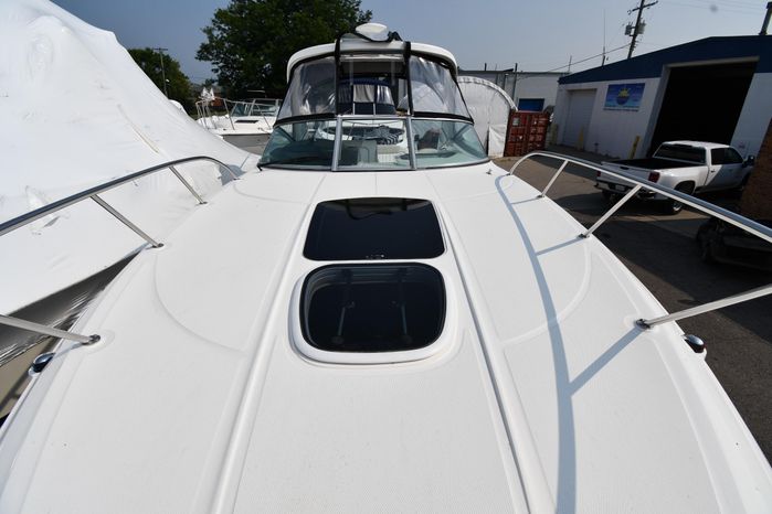 Freshwater / Great Lakes boat since new this vessel features Twin MerCruiser 350-MAG 300-hp Gas Engine's with DTS Bravo III Stenrdrives (w/Joy-Stick Piloting) with 504 hours. Notable features include but are not limited to the following: 2021 Tandem-Axle Trailer, Air-Conditioning & Heat, Head (Vacuflush) w/Vanity/Sink/Shower, Raymarine A70D (Color) GPS w/Chartplotter, Sony Premium Sound System w/Helm-Mounted Control & iPod/MP3-Connection, Cockpit Wet Bar w/Sink/Refrigerator - Note Built-in Cooler Storage, Power Engine Hatch Lift, and MUCH more!