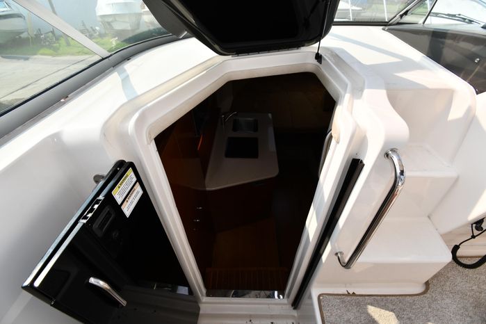 Freshwater / Great Lakes boat since new this vessel features Twin MerCruiser 350-MAG 300-hp Gas Engine's with DTS Bravo III Stenrdrives (w/Joy-Stick Piloting) with 504 hours. Notable features include but are not limited to the following: 2021 Tandem-Axle Trailer, Air-Conditioning & Heat, Head (Vacuflush) w/Vanity/Sink/Shower, Raymarine A70D (Color) GPS w/Chartplotter, Sony Premium Sound System w/Helm-Mounted Control & iPod/MP3-Connection, Cockpit Wet Bar w/Sink/Refrigerator - Note Built-in Cooler Storage, Power Engine Hatch Lift, and MUCH more!