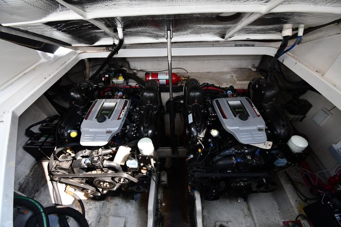 Freshwater / Great Lakes boat since new this vessel features Twin MerCruiser 350-MAG 300-hp Gas Engine's with DTS Bravo III Stenrdrives (w/Joy-Stick Piloting) with 504 hours. Notable features include but are not limited to the following: 2021 Tandem-Axle Trailer, Air-Conditioning & Heat, Head (Vacuflush) w/Vanity/Sink/Shower, Raymarine A70D (Color) GPS w/Chartplotter, Sony Premium Sound System w/Helm-Mounted Control & iPod/MP3-Connection, Cockpit Wet Bar w/Sink/Refrigerator - Note Built-in Cooler Storage, Power Engine Hatch Lift, and MUCH more!