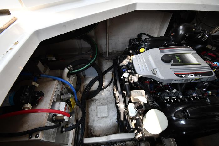 Freshwater / Great Lakes boat since new this vessel features Twin MerCruiser 350-MAG 300-hp Gas Engine's with DTS Bravo III Stenrdrives (w/Joy-Stick Piloting) with 504 hours. Notable features include but are not limited to the following: 2021 Tandem-Axle Trailer, Air-Conditioning & Heat, Head (Vacuflush) w/Vanity/Sink/Shower, Raymarine A70D (Color) GPS w/Chartplotter, Sony Premium Sound System w/Helm-Mounted Control & iPod/MP3-Connection, Cockpit Wet Bar w/Sink/Refrigerator - Note Built-in Cooler Storage, Power Engine Hatch Lift, and MUCH more!