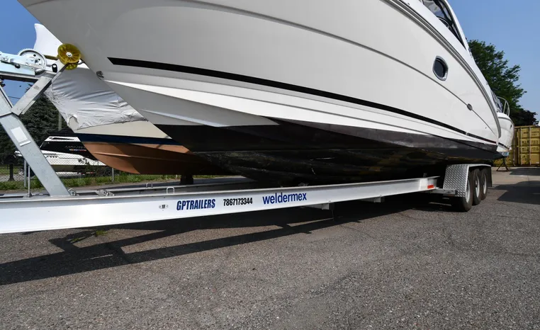 Freshwater / Great Lakes boat since new this vessel features Twin MerCruiser 350-MAG 300-hp Gas Engine's with DTS Bravo III Stenrdrives (w/Joy-Stick Piloting) with 504 hours. Notable features include but are not limited to the following: 2021 Tandem-Axle Trailer, Air-Conditioning & Heat, Head (Vacuflush) w/Vanity/Sink/Shower, Raymarine A70D (Color) GPS w/Chartplotter, Sony Premium Sound System w/Helm-Mounted Control & iPod/MP3-Connection, Cockpit Wet Bar w/Sink/Refrigerator - Note Built-in Cooler Storage, Power Engine Hatch Lift, and MUCH more!