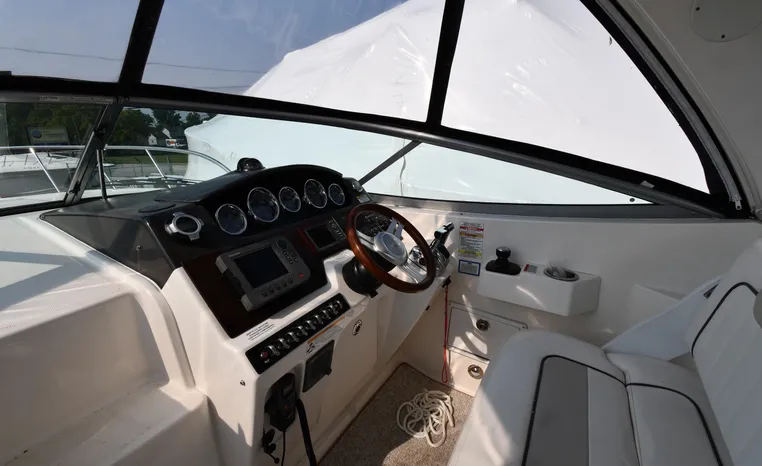 Freshwater / Great Lakes boat since new this vessel features Twin MerCruiser 350-MAG 300-hp Gas Engine's with DTS Bravo III Stenrdrives (w/Joy-Stick Piloting) with 504 hours. Notable features include but are not limited to the following: 2021 Tandem-Axle Trailer, Air-Conditioning & Heat, Head (Vacuflush) w/Vanity/Sink/Shower, Raymarine A70D (Color) GPS w/Chartplotter, Sony Premium Sound System w/Helm-Mounted Control & iPod/MP3-Connection, Cockpit Wet Bar w/Sink/Refrigerator - Note Built-in Cooler Storage, Power Engine Hatch Lift, and MUCH more!
