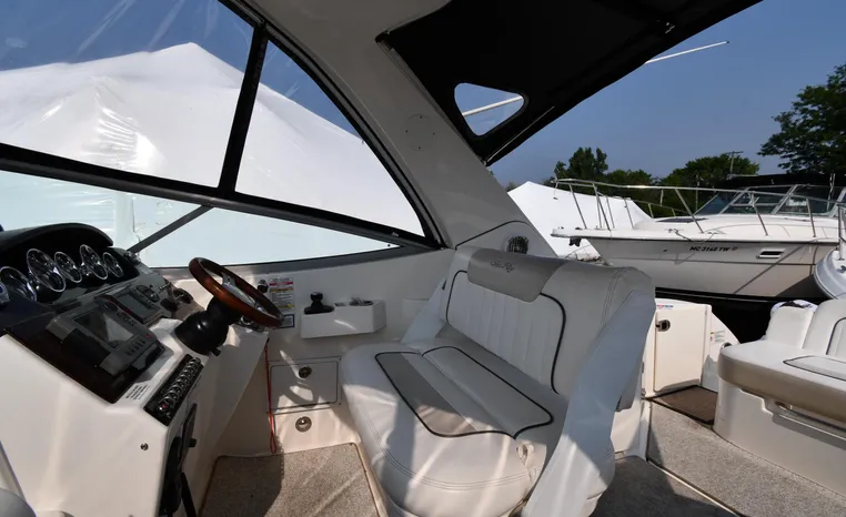 Freshwater / Great Lakes boat since new this vessel features Twin MerCruiser 350-MAG 300-hp Gas Engine's with DTS Bravo III Stenrdrives (w/Joy-Stick Piloting) with 504 hours. Notable features include but are not limited to the following: 2021 Tandem-Axle Trailer, Air-Conditioning & Heat, Head (Vacuflush) w/Vanity/Sink/Shower, Raymarine A70D (Color) GPS w/Chartplotter, Sony Premium Sound System w/Helm-Mounted Control & iPod/MP3-Connection, Cockpit Wet Bar w/Sink/Refrigerator - Note Built-in Cooler Storage, Power Engine Hatch Lift, and MUCH more!
