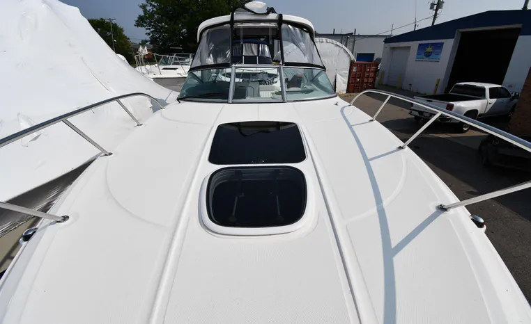 Freshwater / Great Lakes boat since new this vessel features Twin MerCruiser 350-MAG 300-hp Gas Engine's with DTS Bravo III Stenrdrives (w/Joy-Stick Piloting) with 504 hours. Notable features include but are not limited to the following: 2021 Tandem-Axle Trailer, Air-Conditioning & Heat, Head (Vacuflush) w/Vanity/Sink/Shower, Raymarine A70D (Color) GPS w/Chartplotter, Sony Premium Sound System w/Helm-Mounted Control & iPod/MP3-Connection, Cockpit Wet Bar w/Sink/Refrigerator - Note Built-in Cooler Storage, Power Engine Hatch Lift, and MUCH more!