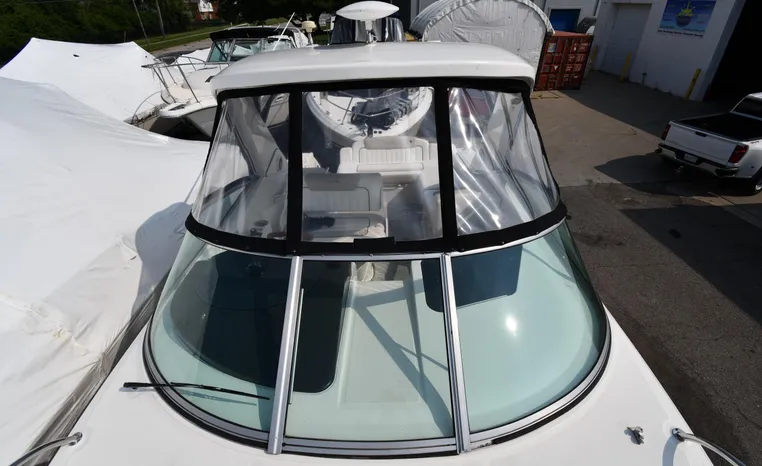 Freshwater / Great Lakes boat since new this vessel features Twin MerCruiser 350-MAG 300-hp Gas Engine's with DTS Bravo III Stenrdrives (w/Joy-Stick Piloting) with 504 hours. Notable features include but are not limited to the following: 2021 Tandem-Axle Trailer, Air-Conditioning & Heat, Head (Vacuflush) w/Vanity/Sink/Shower, Raymarine A70D (Color) GPS w/Chartplotter, Sony Premium Sound System w/Helm-Mounted Control & iPod/MP3-Connection, Cockpit Wet Bar w/Sink/Refrigerator - Note Built-in Cooler Storage, Power Engine Hatch Lift, and MUCH more!