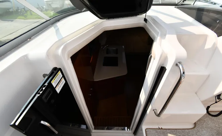 Freshwater / Great Lakes boat since new this vessel features Twin MerCruiser 350-MAG 300-hp Gas Engine's with DTS Bravo III Stenrdrives (w/Joy-Stick Piloting) with 504 hours. Notable features include but are not limited to the following: 2021 Tandem-Axle Trailer, Air-Conditioning & Heat, Head (Vacuflush) w/Vanity/Sink/Shower, Raymarine A70D (Color) GPS w/Chartplotter, Sony Premium Sound System w/Helm-Mounted Control & iPod/MP3-Connection, Cockpit Wet Bar w/Sink/Refrigerator - Note Built-in Cooler Storage, Power Engine Hatch Lift, and MUCH more!