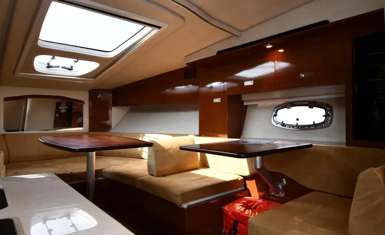 Freshwater / Great Lakes boat since new this vessel features Twin MerCruiser 350-MAG 300-hp Gas Engine's with DTS Bravo III Stenrdrives (w/Joy-Stick Piloting) with 504 hours. Notable features include but are not limited to the following: 2021 Tandem-Axle Trailer, Air-Conditioning & Heat, Head (Vacuflush) w/Vanity/Sink/Shower, Raymarine A70D (Color) GPS w/Chartplotter, Sony Premium Sound System w/Helm-Mounted Control & iPod/MP3-Connection, Cockpit Wet Bar w/Sink/Refrigerator - Note Built-in Cooler Storage, Power Engine Hatch Lift, and MUCH more!