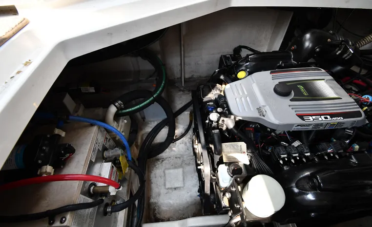 Freshwater / Great Lakes boat since new this vessel features Twin MerCruiser 350-MAG 300-hp Gas Engine's with DTS Bravo III Stenrdrives (w/Joy-Stick Piloting) with 504 hours. Notable features include but are not limited to the following: 2021 Tandem-Axle Trailer, Air-Conditioning & Heat, Head (Vacuflush) w/Vanity/Sink/Shower, Raymarine A70D (Color) GPS w/Chartplotter, Sony Premium Sound System w/Helm-Mounted Control & iPod/MP3-Connection, Cockpit Wet Bar w/Sink/Refrigerator - Note Built-in Cooler Storage, Power Engine Hatch Lift, and MUCH more!