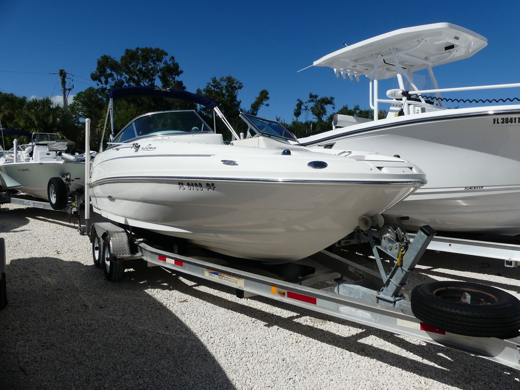 Elegantly balancing performance, comfort and versatility, the 2011 Sea Ray 200 Sundeck is a 21-foot day-boat designed to accommodate both active watersports and relaxed family cruising. With a beam of 8'4? and a dry weight of approximately 3,500 lbs, it comfortably carries up to eight passengers.