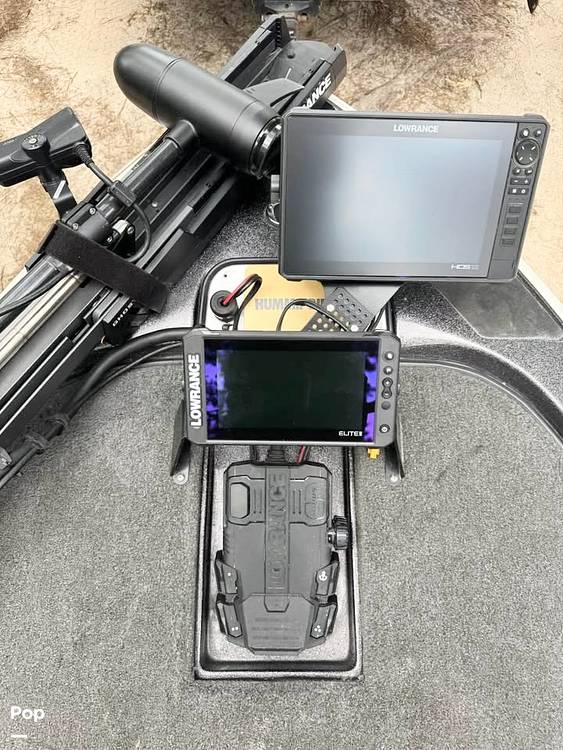 Set up to stalk the fish and go shallow, this Skeeter is outfitted with Lowrance HDS16 and HDS12 units and a Lowrance Elite 9", all powered by a 12V lithium battery. The Lowrance Ghost trolling motor is powered by a 36V Lithium and the starter battery is lead acid. The boat is also equipped with an 8' power pole and a manual jack plate.