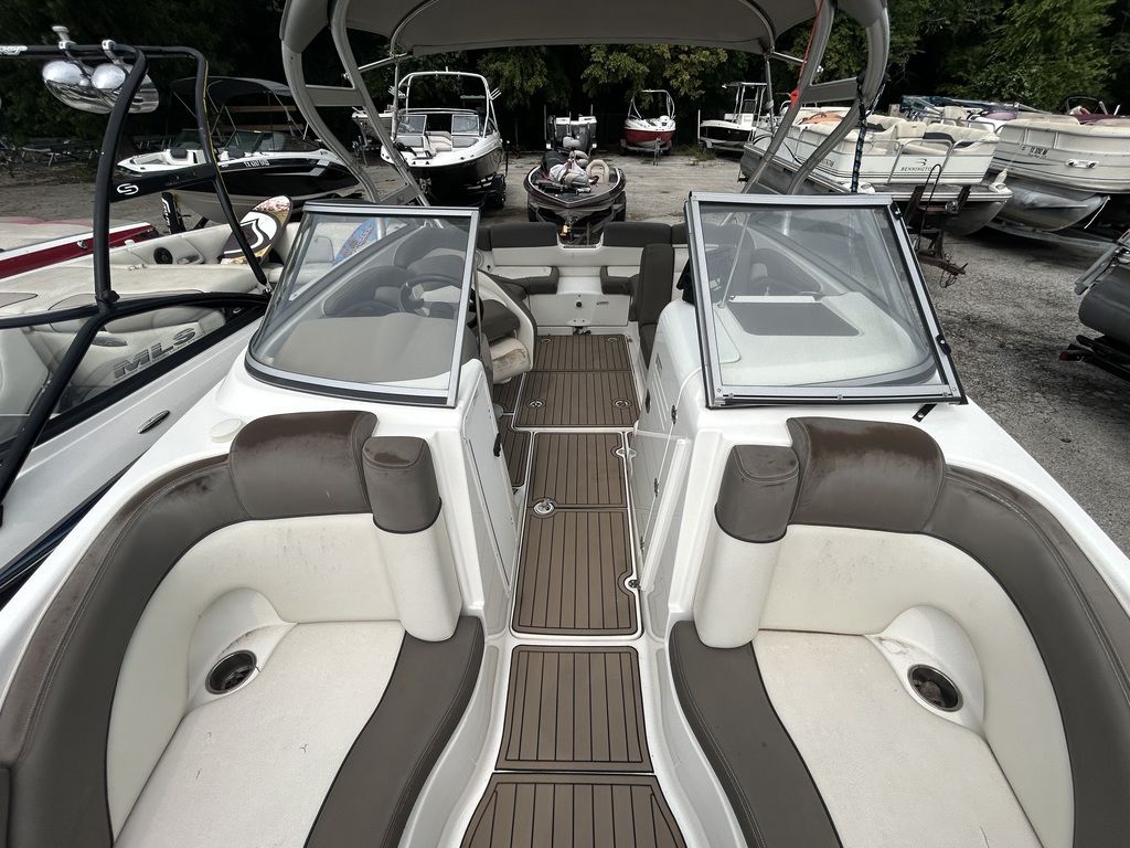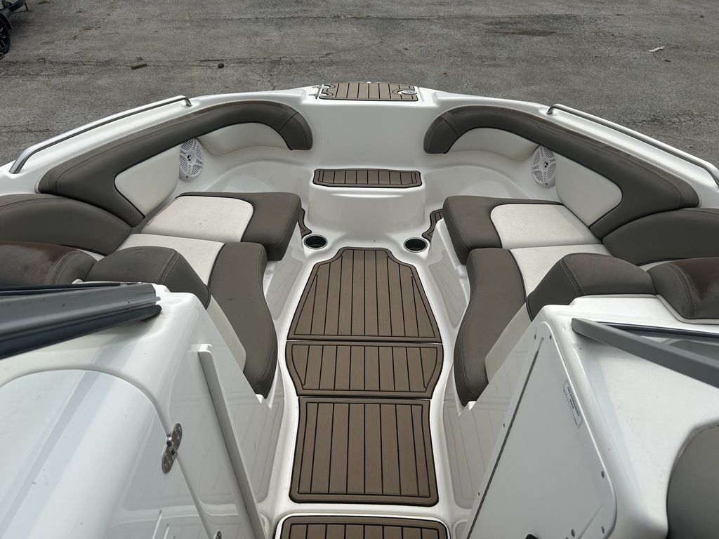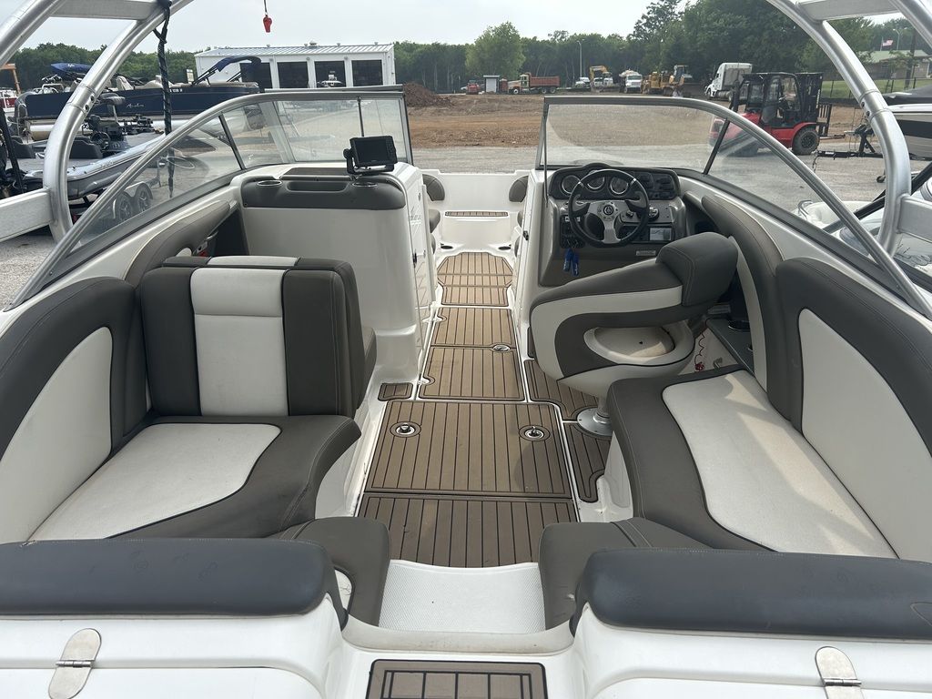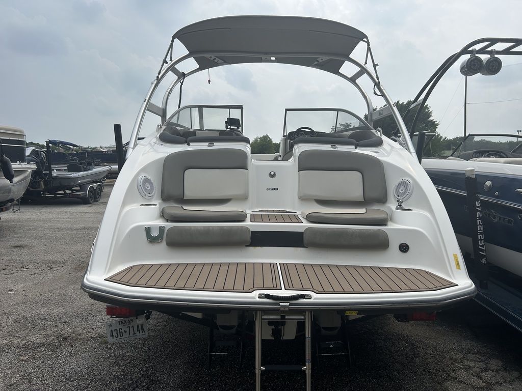 The 2011 Yamaha 242 Limited is a 24-foot jet boat featuring twin 1.8L High Output Yamaha marine engines, providing 360 horsepower for watersports and day cruising. It's designed for families and boasts a spacious, comfortable cockpit with ample seating, innovative rear-facing transom lounge seats, and a low, spacious swim platform. Key features include a jet-drive system with no exposed propellers, advanced helm technology with Cruise Assist and No Wake Mode™, a premium stereo system, integrated storage, and a watersports tower with lighting and speakers.