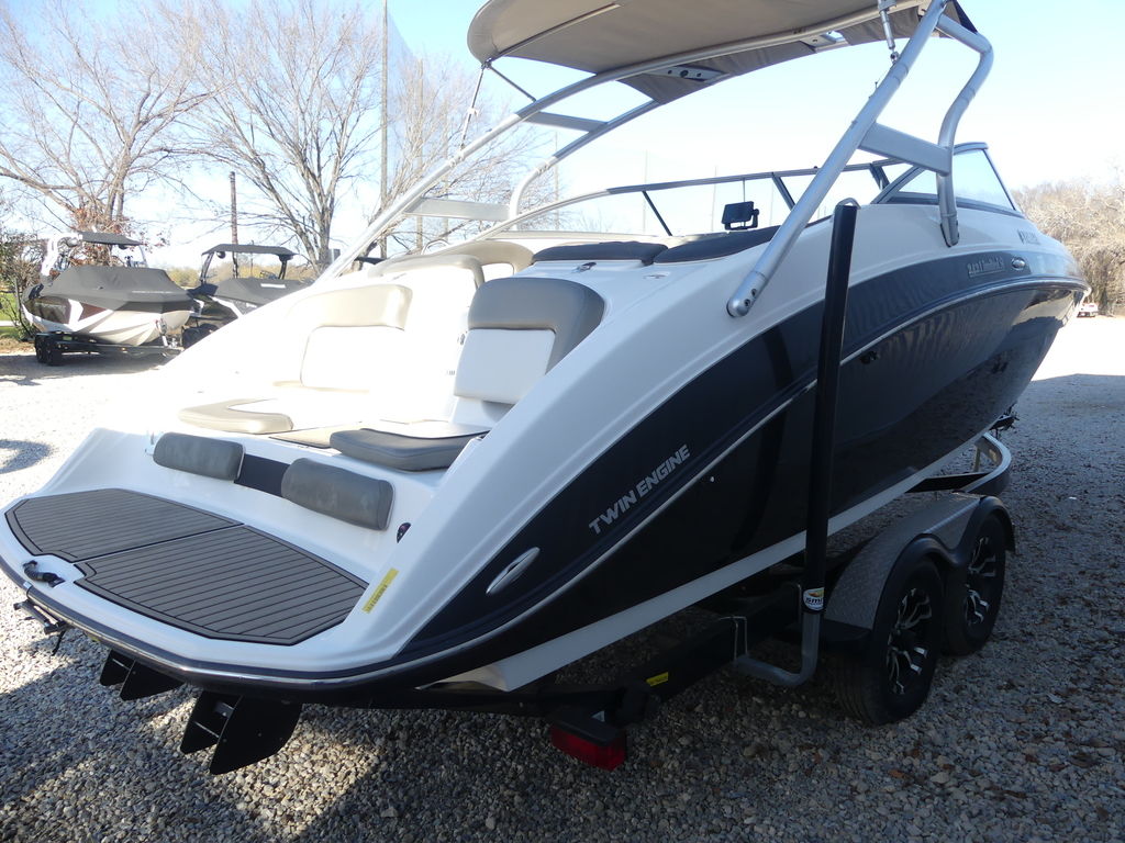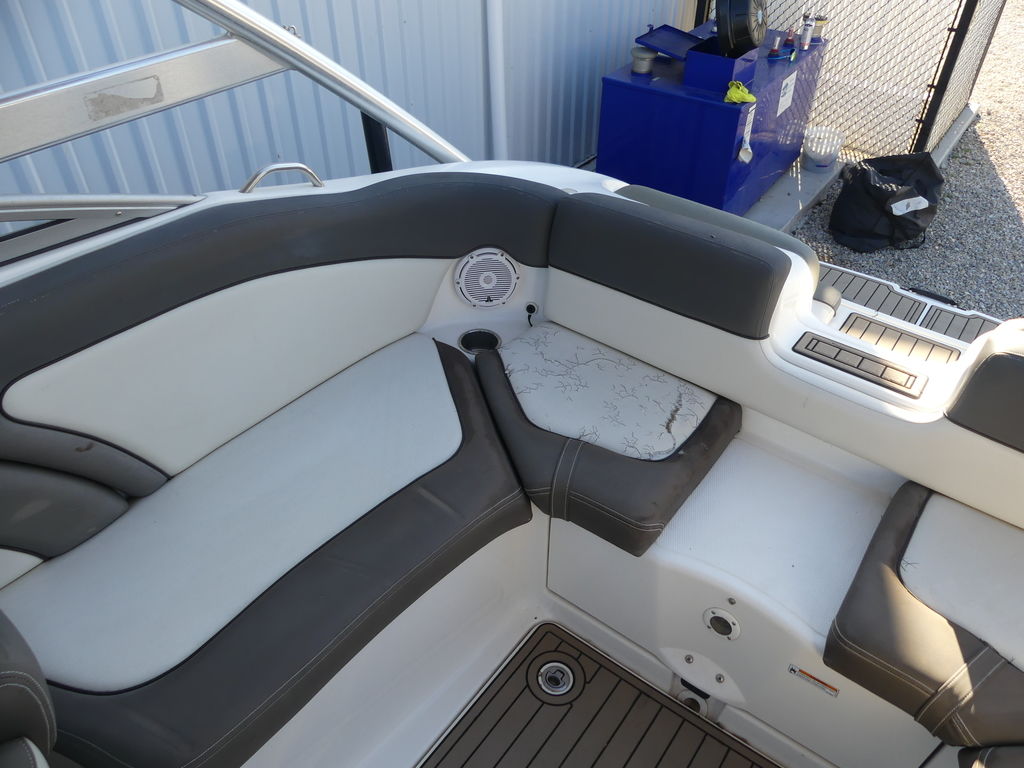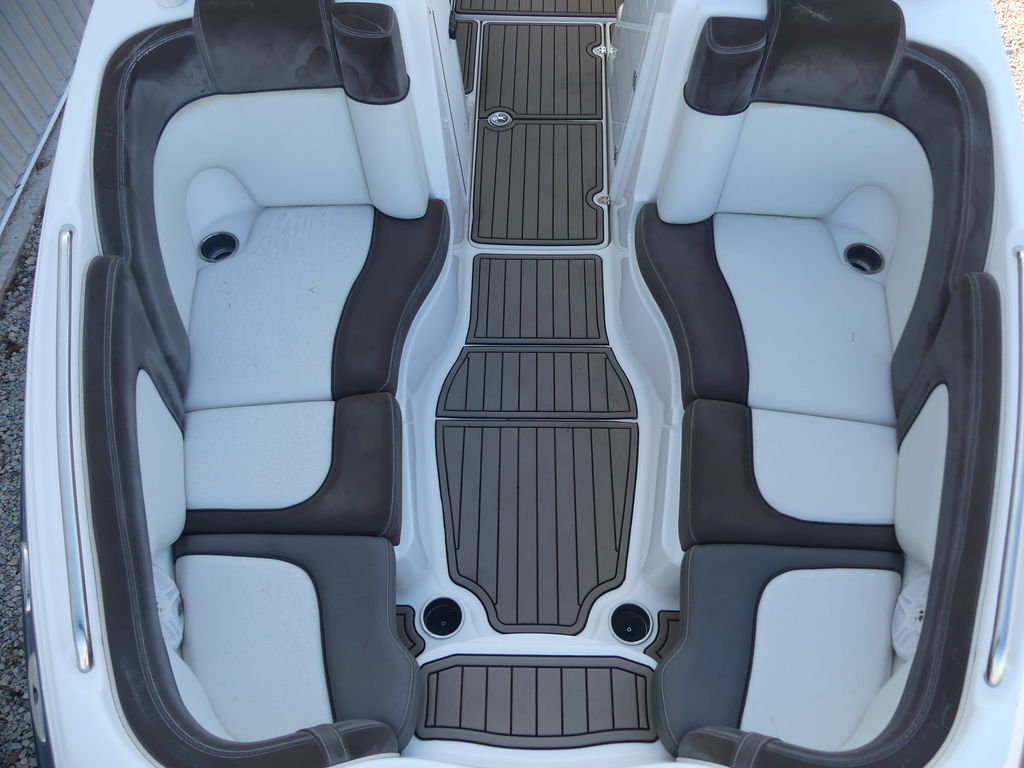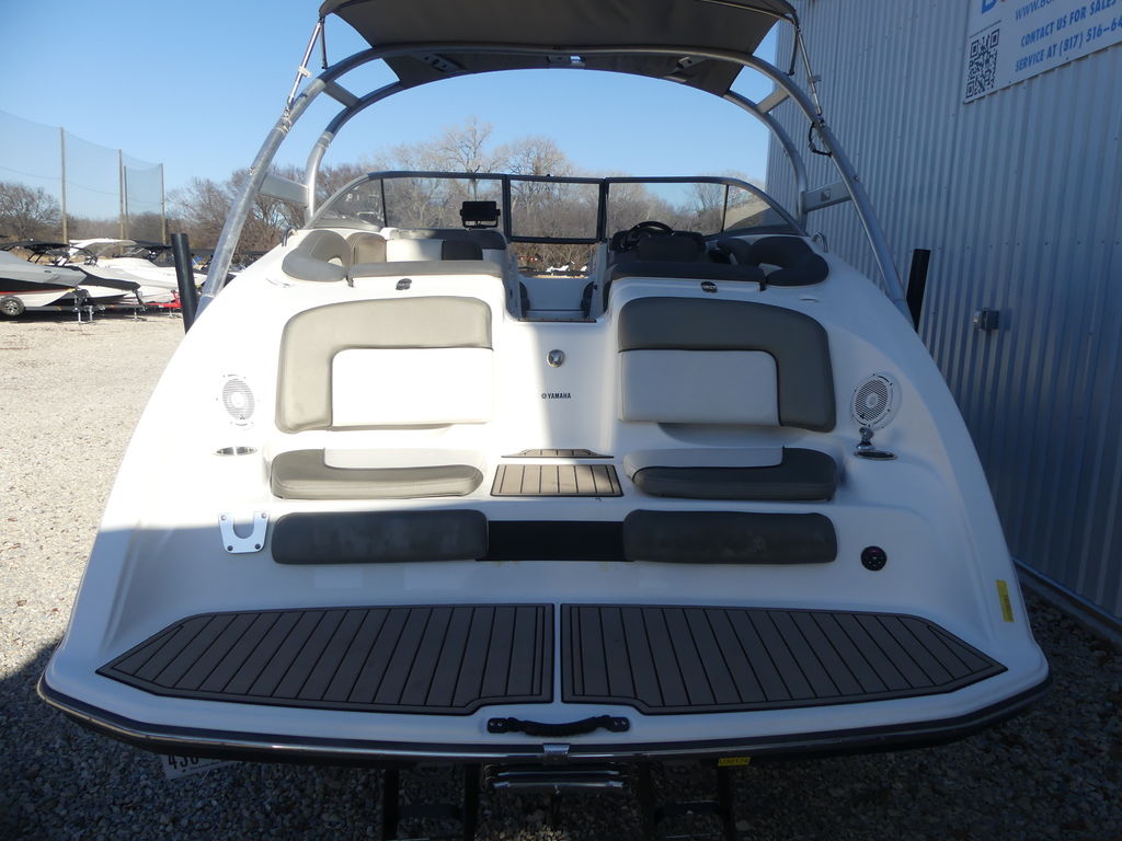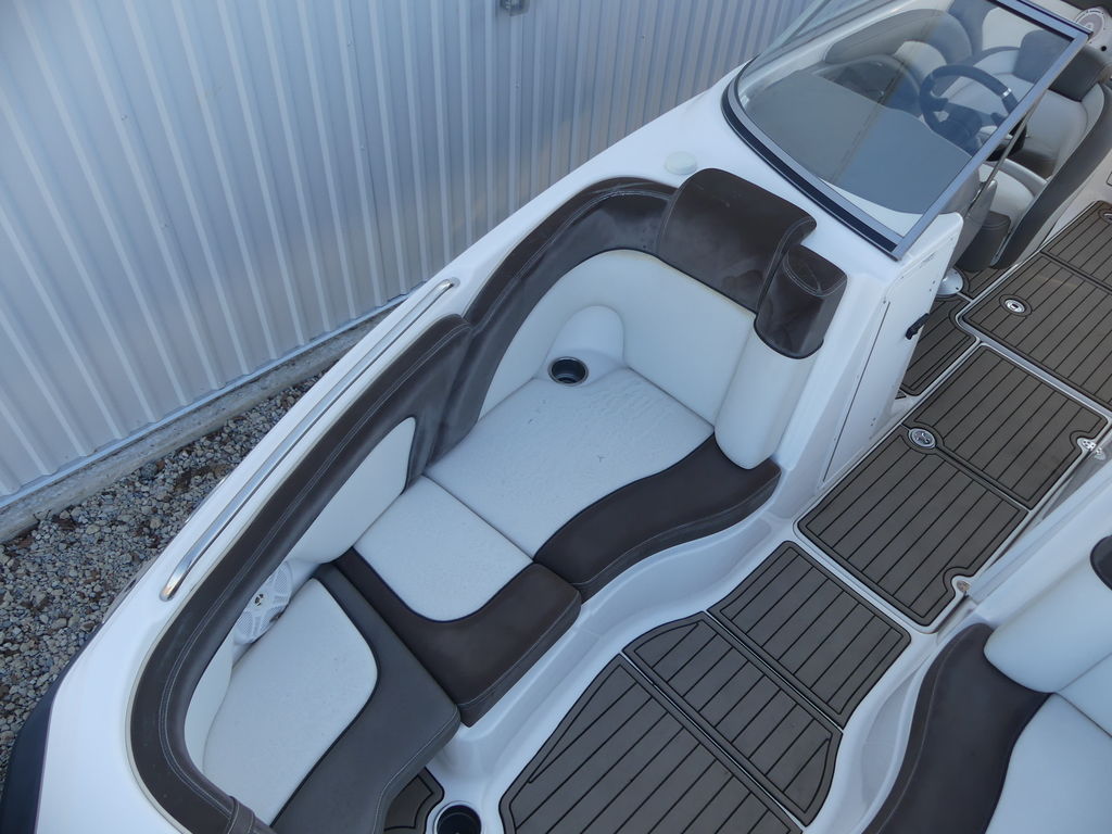 The 2011 Yamaha 242 Limited is a 24-foot jet boat featuring twin 1.8L High Output Yamaha marine engines, providing 360 horsepower for watersports and day cruising. It's designed for families and boasts a spacious, comfortable cockpit with ample seating, innovative rear-facing transom lounge seats, and a low, spacious swim platform. Key features include a jet-drive system with no exposed propellers, advanced helm technology with Cruise Assist and No Wake Mode™, a premium stereo system, integrated storage, and a watersports tower with lighting and speakers.