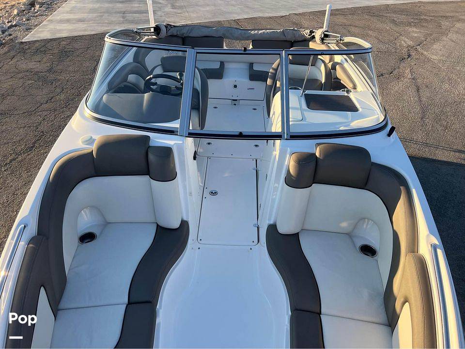 The boat features an open layout with seating arrangements for 11 passengers. High-quality materials and finishes are used in the interior for comfort and durability. The 242 Limited includes a spacious bow area, a cockpit with a helm station, and a stern area with a swim platform.