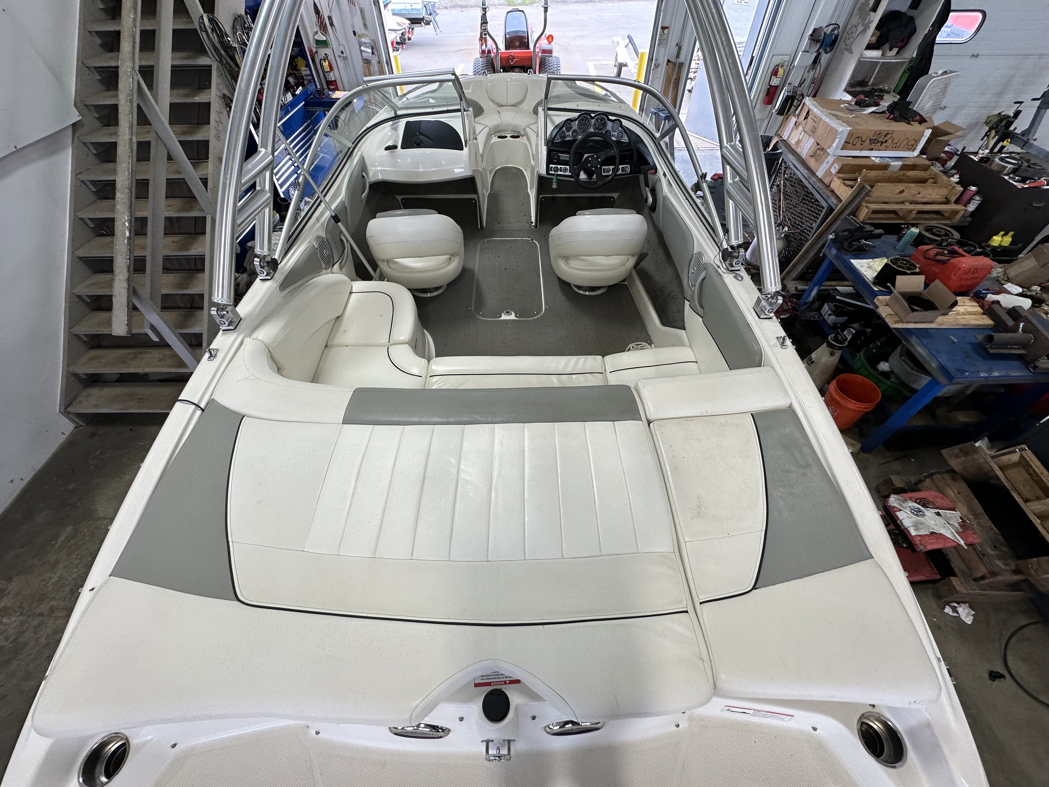 Boat comes with covers, rear extended swim platform for extra large rear deck space, rear swim ladder, monster wakeboard tower, starboard aft removable cushions for easy walkway, snap-in carpet, stereo with speakers, keel guard and much more!