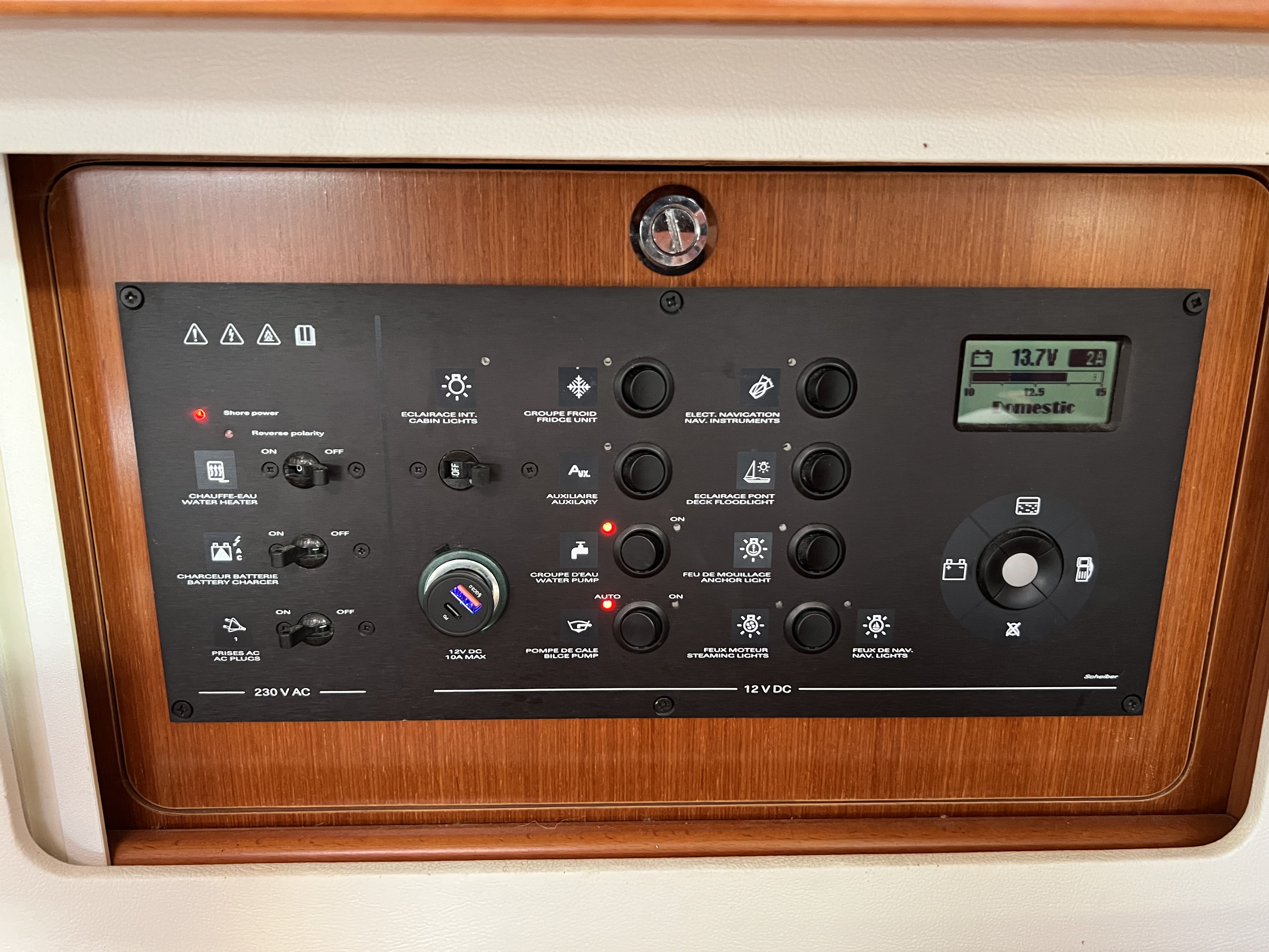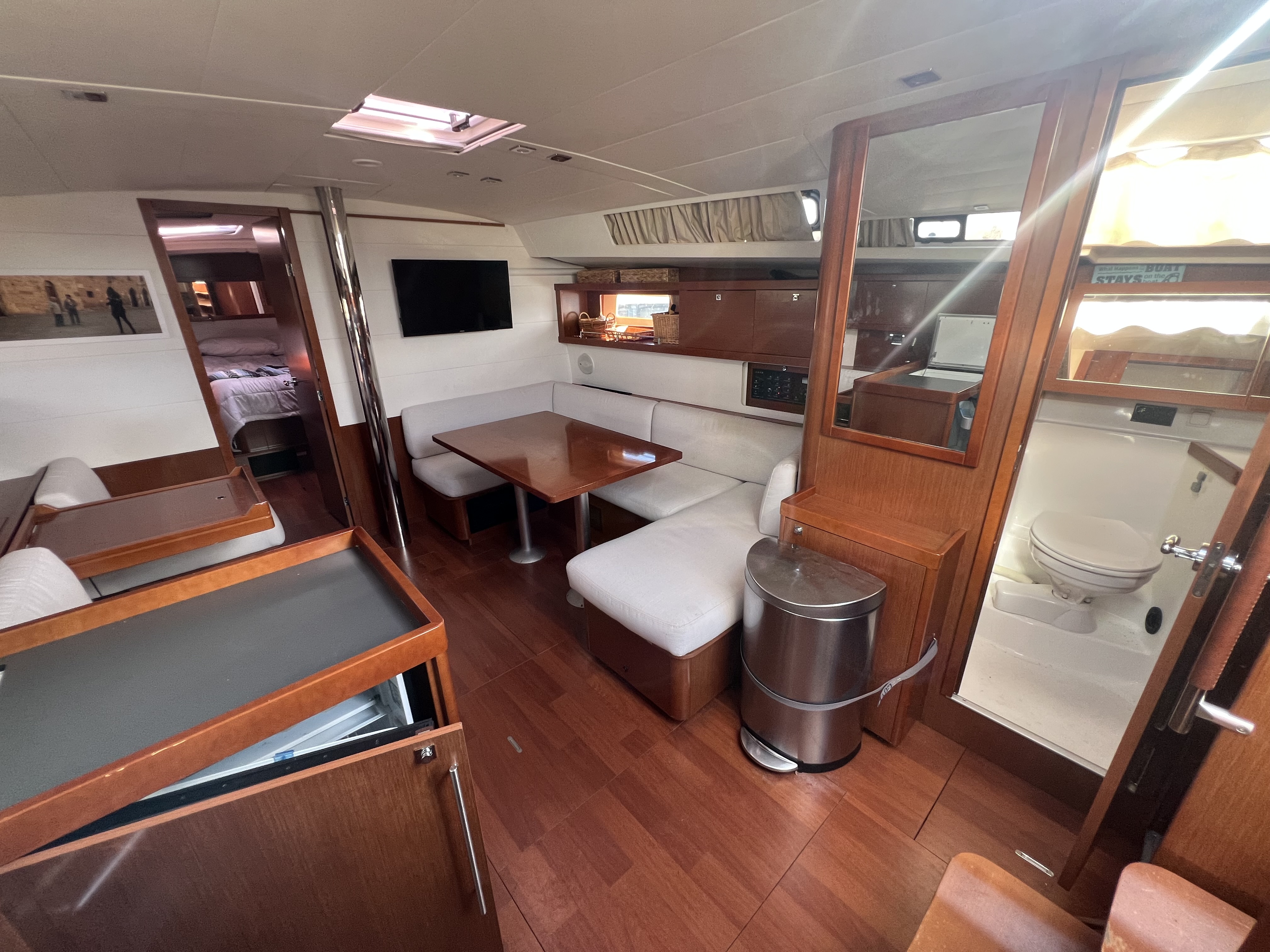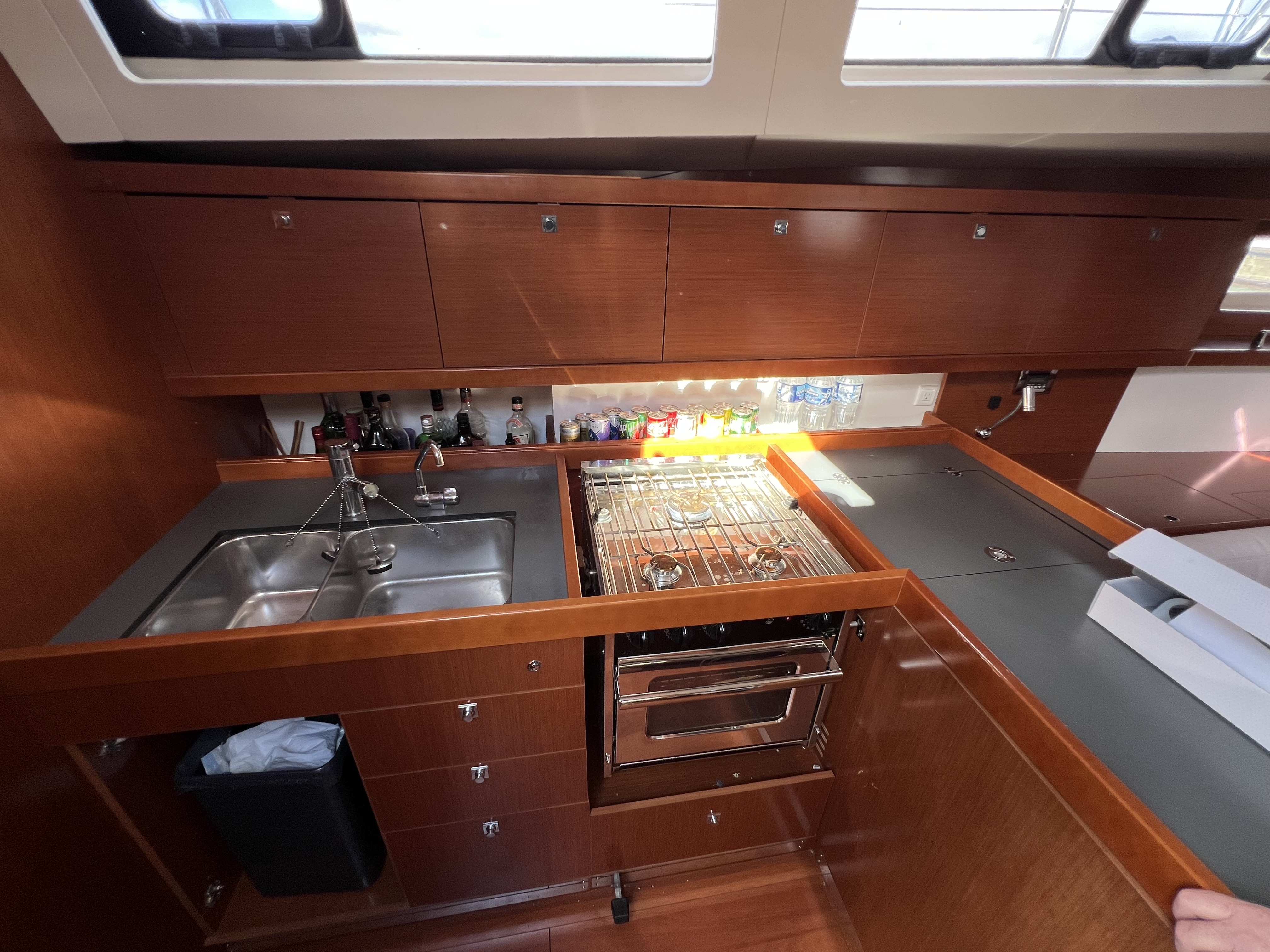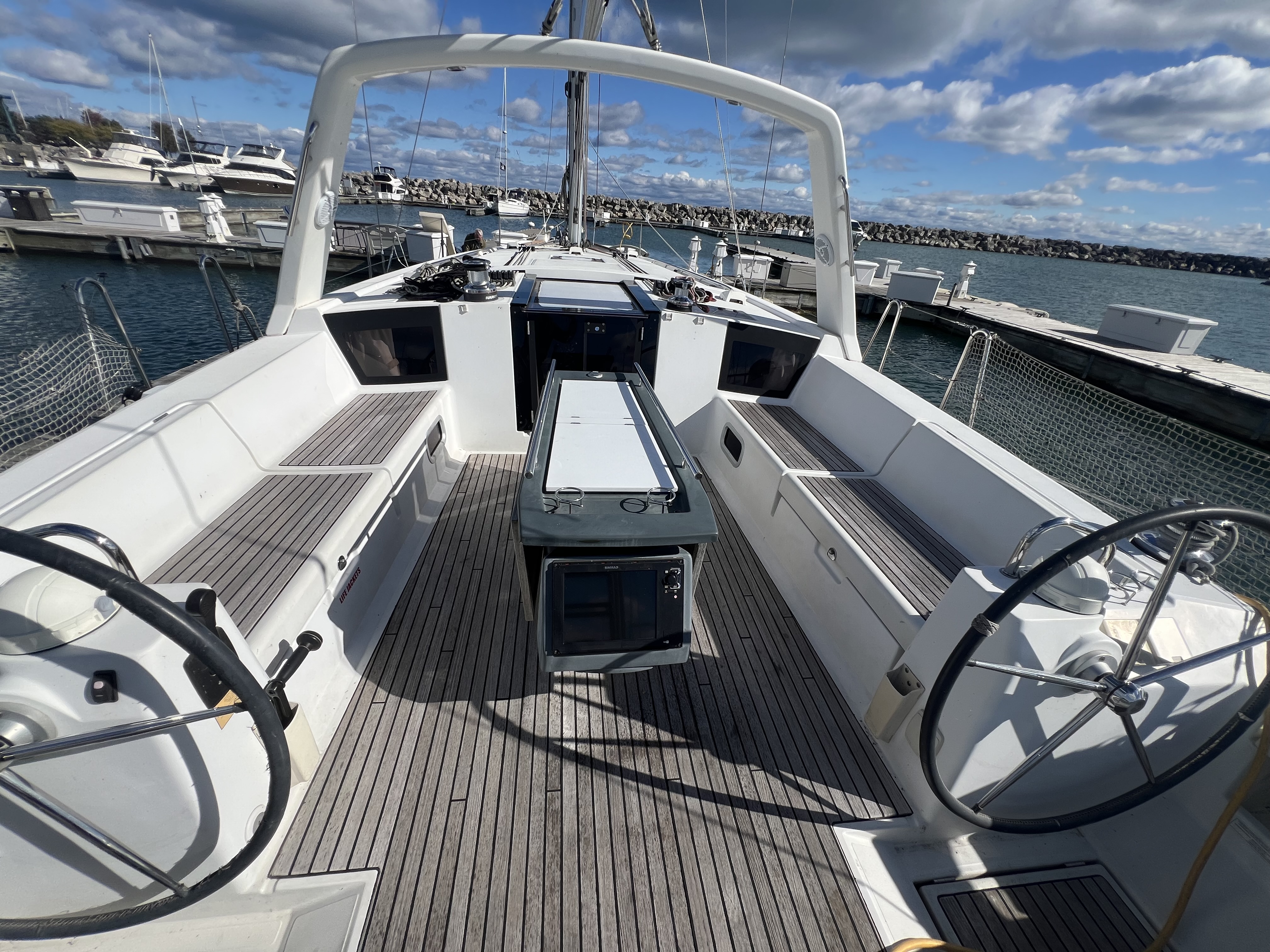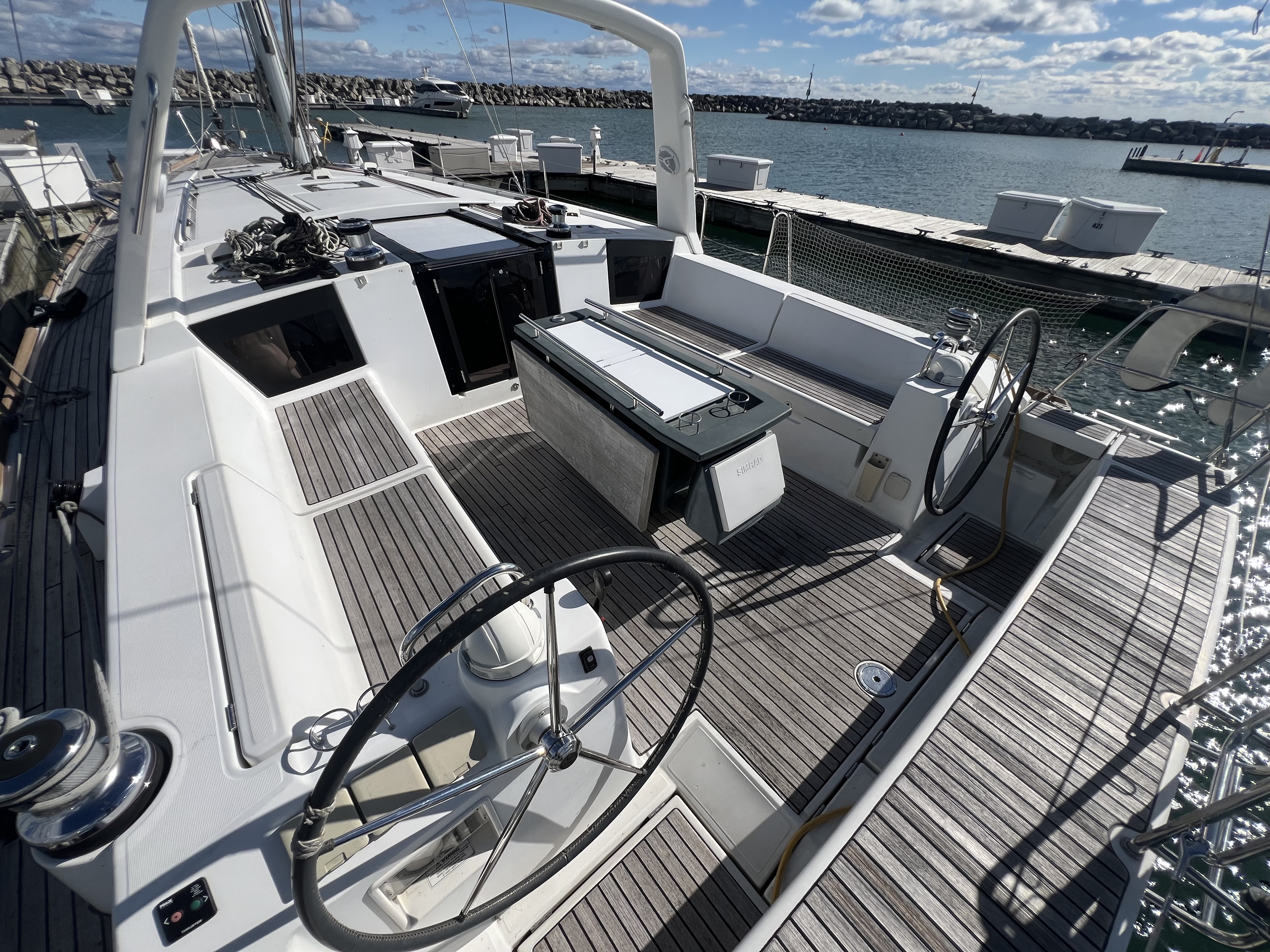 US Elegance Pack: Simrad IS20 Graphic Displays (Log, Speed, Depth & Wind System @ Starboard & Port Helm; Cockpit Shower; Indirect Lighting With LED Interior & Nav Lights; 2 Extra Batteries & 60 AMP Charger; Stereo US FM/AM w/iPod Dock; Electric Port Winch; Cockpit Table w/Cover; Freshwater Foot Pump; 12V Freezer; Leather-covered Handrails; Extra Bow Roller; 3 Burner Stove