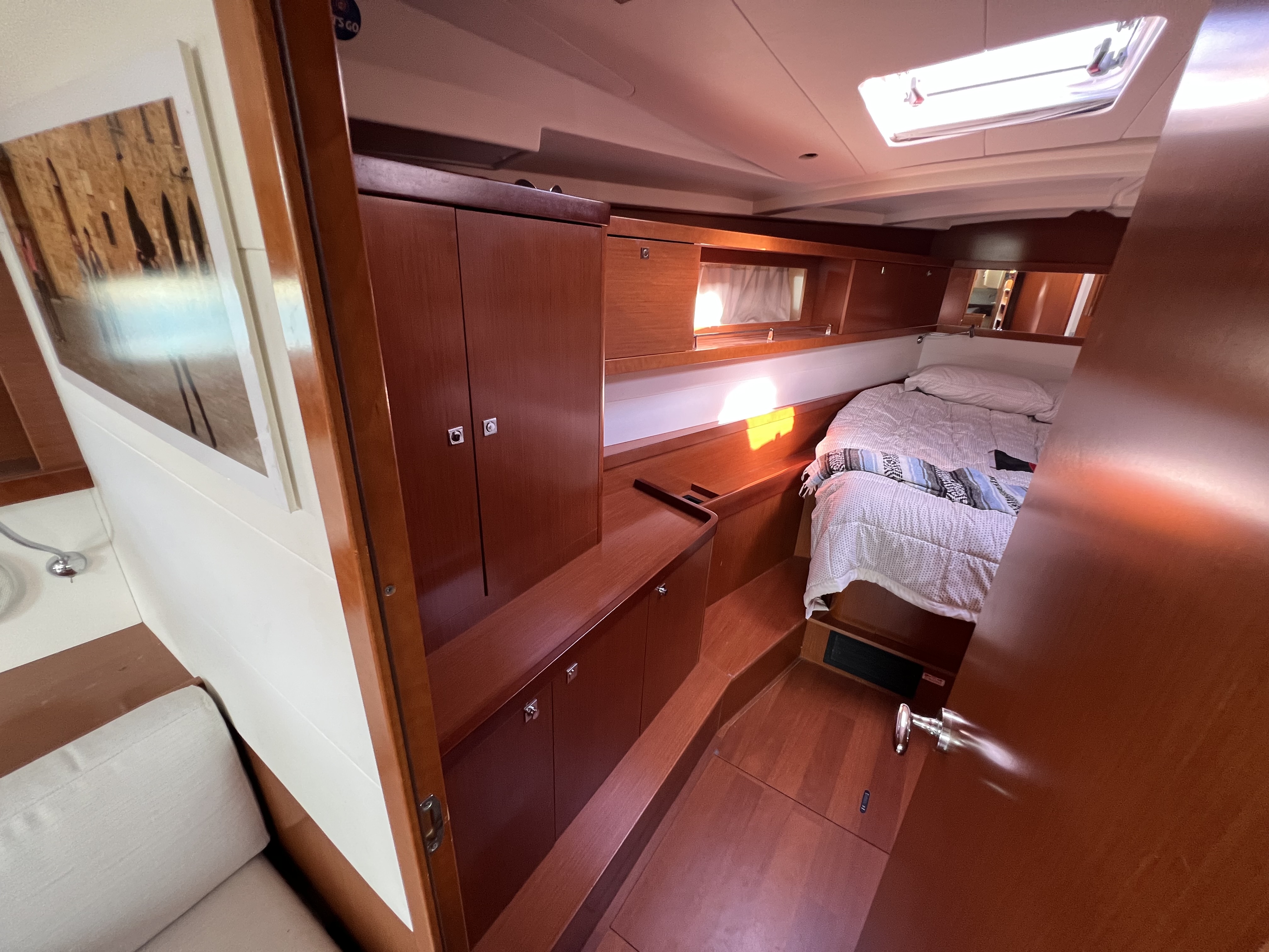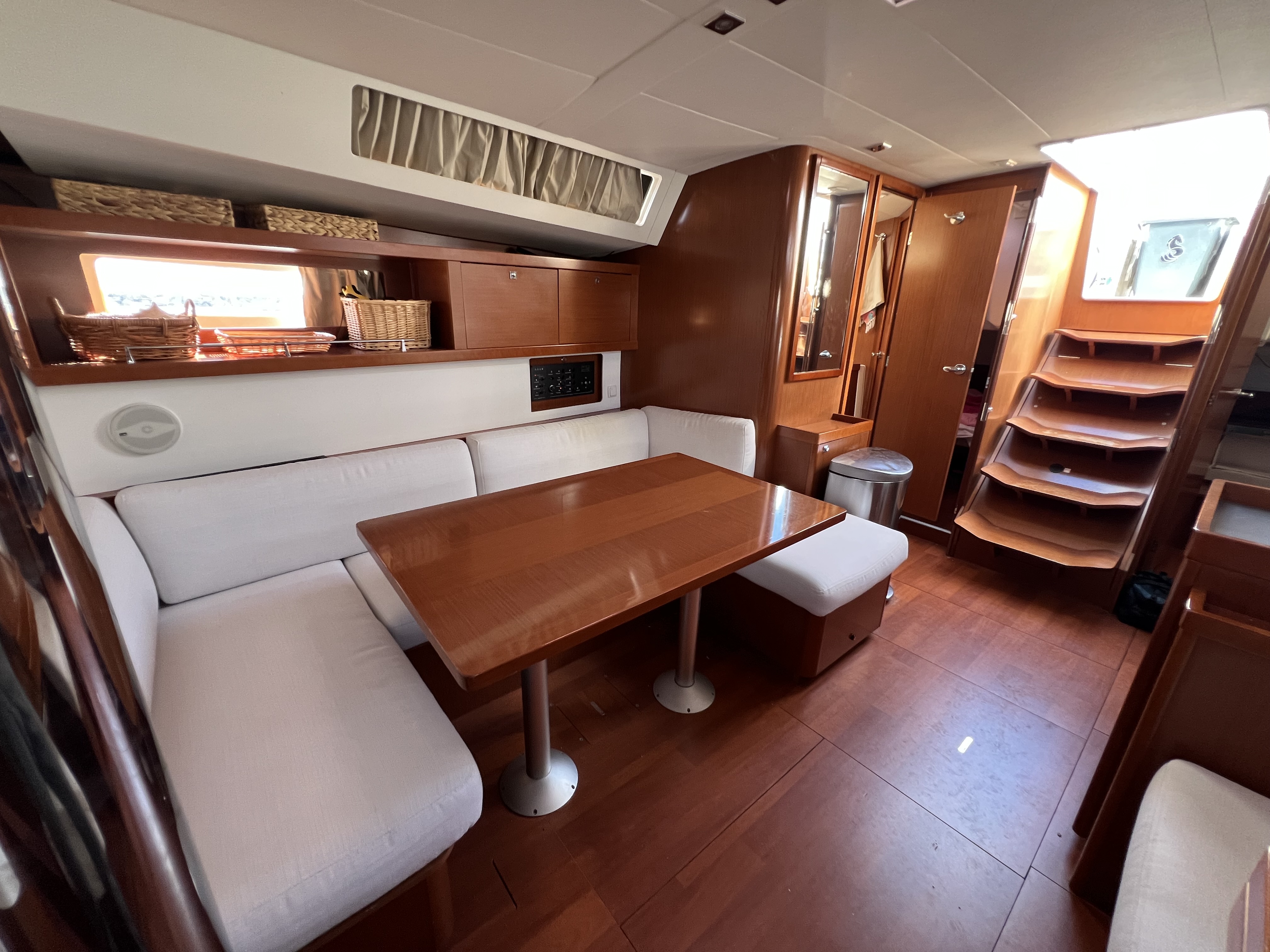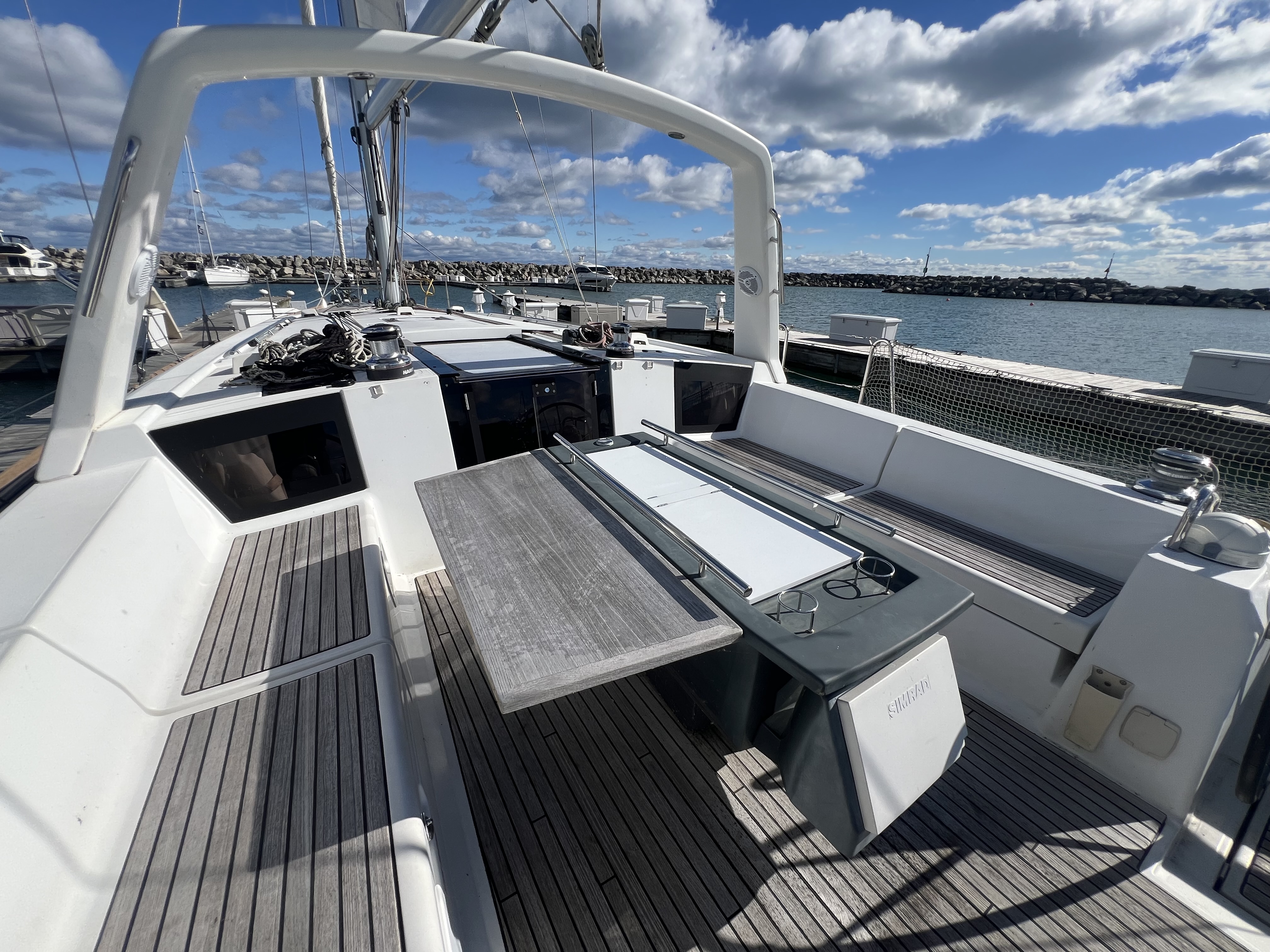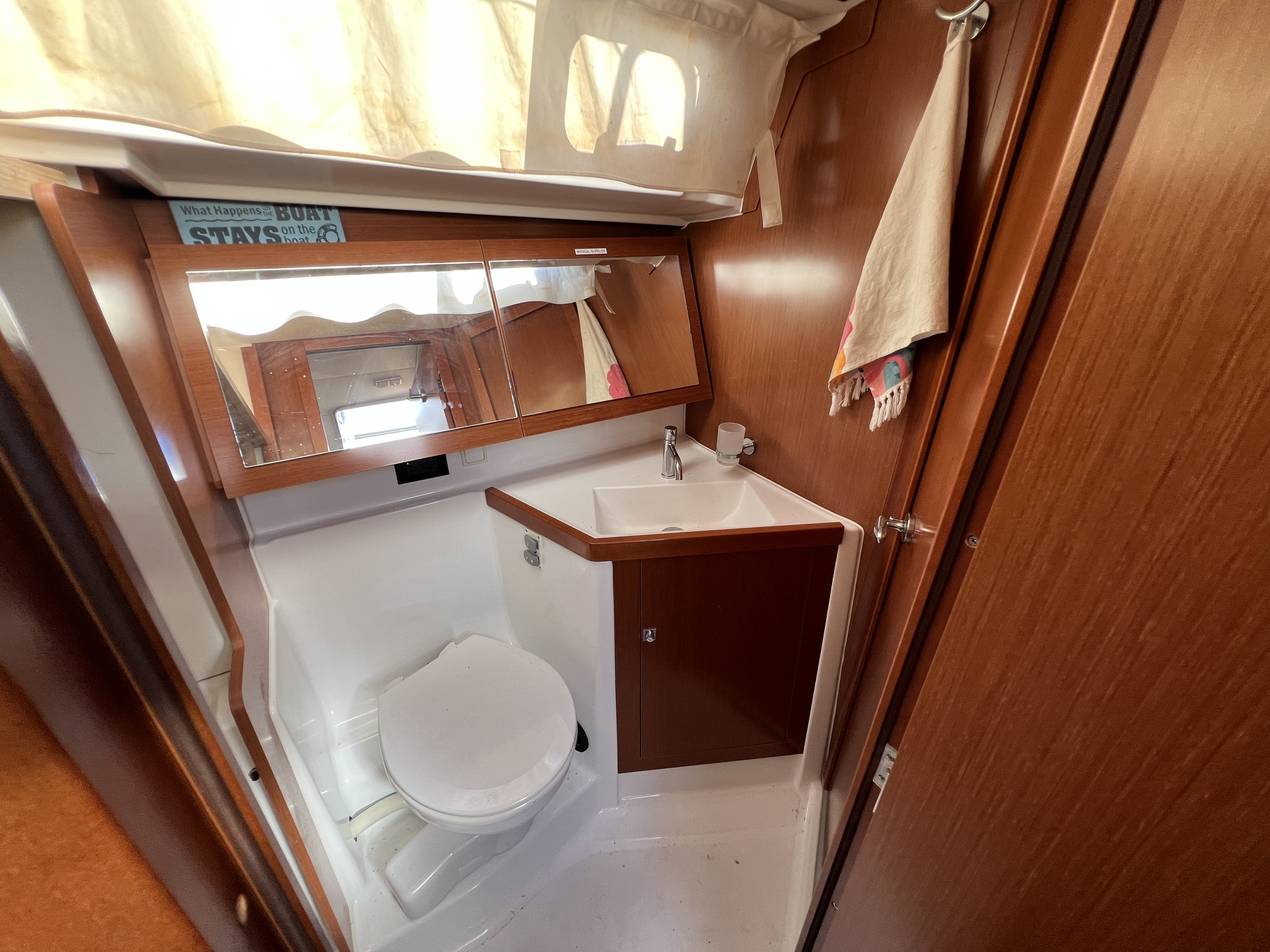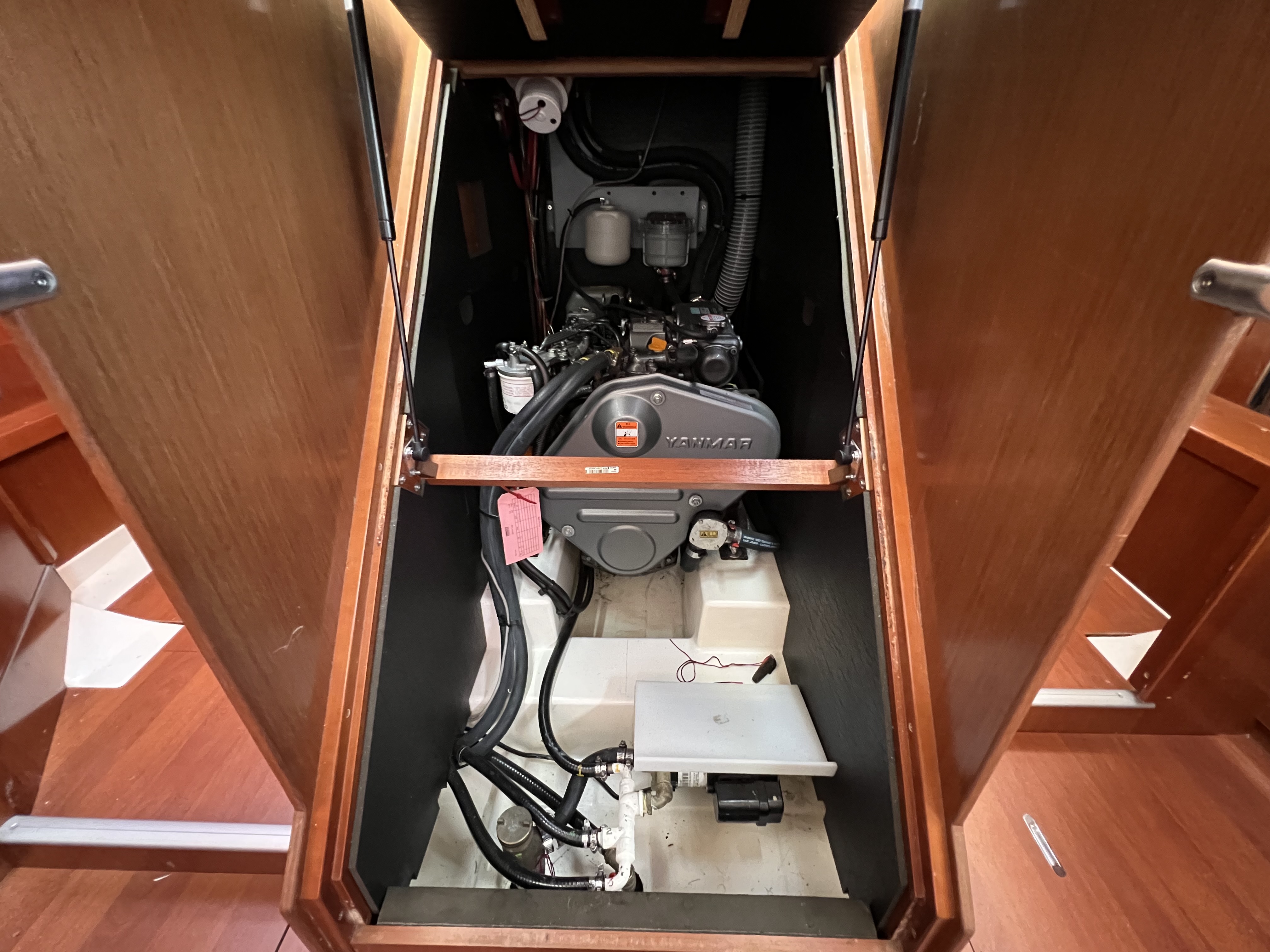 US Elegance Pack: Simrad IS20 Graphic Displays (Log, Speed, Depth & Wind System @ Starboard & Port Helm; Cockpit Shower; Indirect Lighting With LED Interior & Nav Lights; 2 Extra Batteries & 60 AMP Charger; Stereo US FM/AM w/iPod Dock; Electric Port Winch; Cockpit Table w/Cover; Freshwater Foot Pump; 12V Freezer; Leather-covered Handrails; Extra Bow Roller; 3 Burner Stove