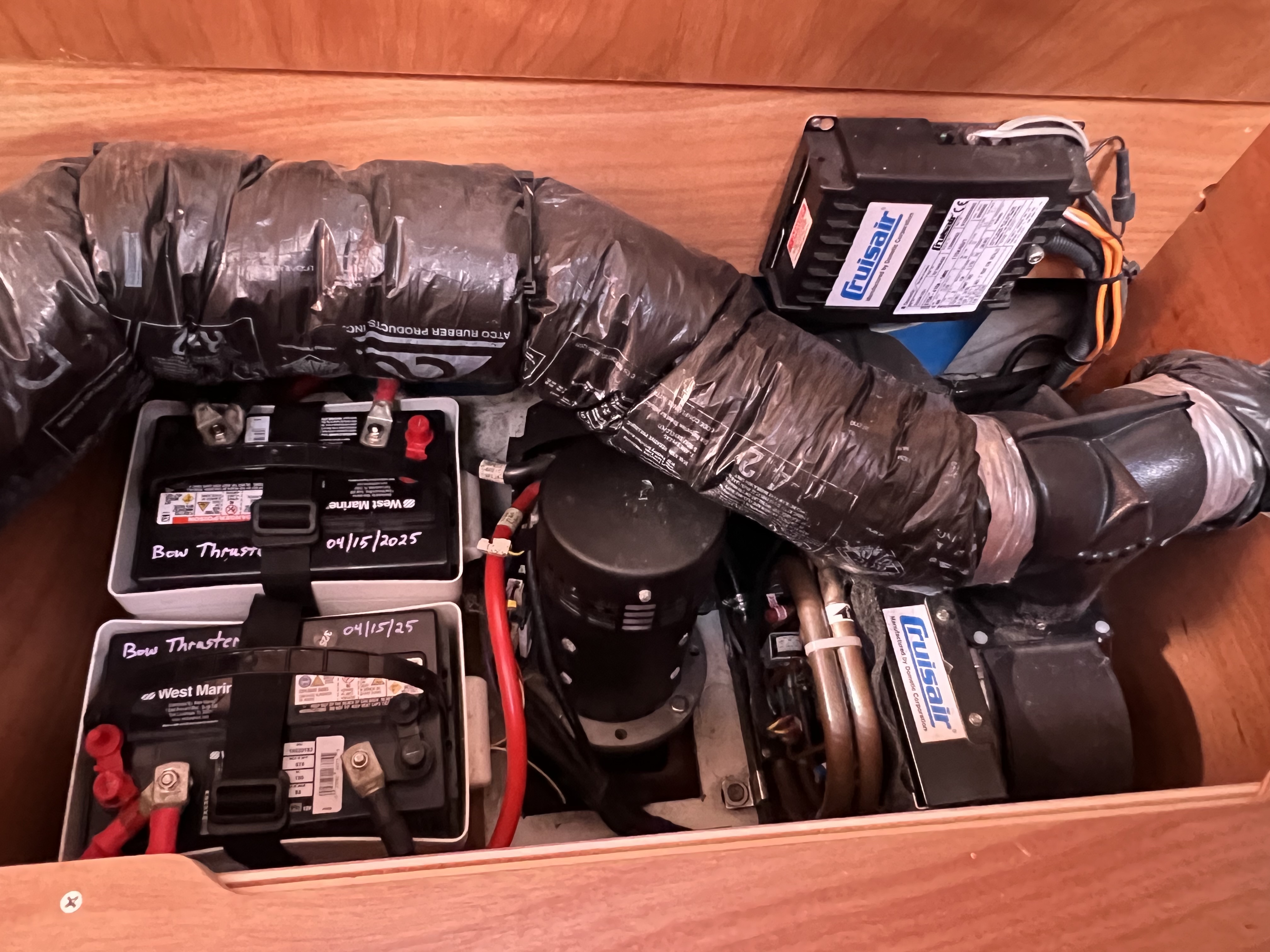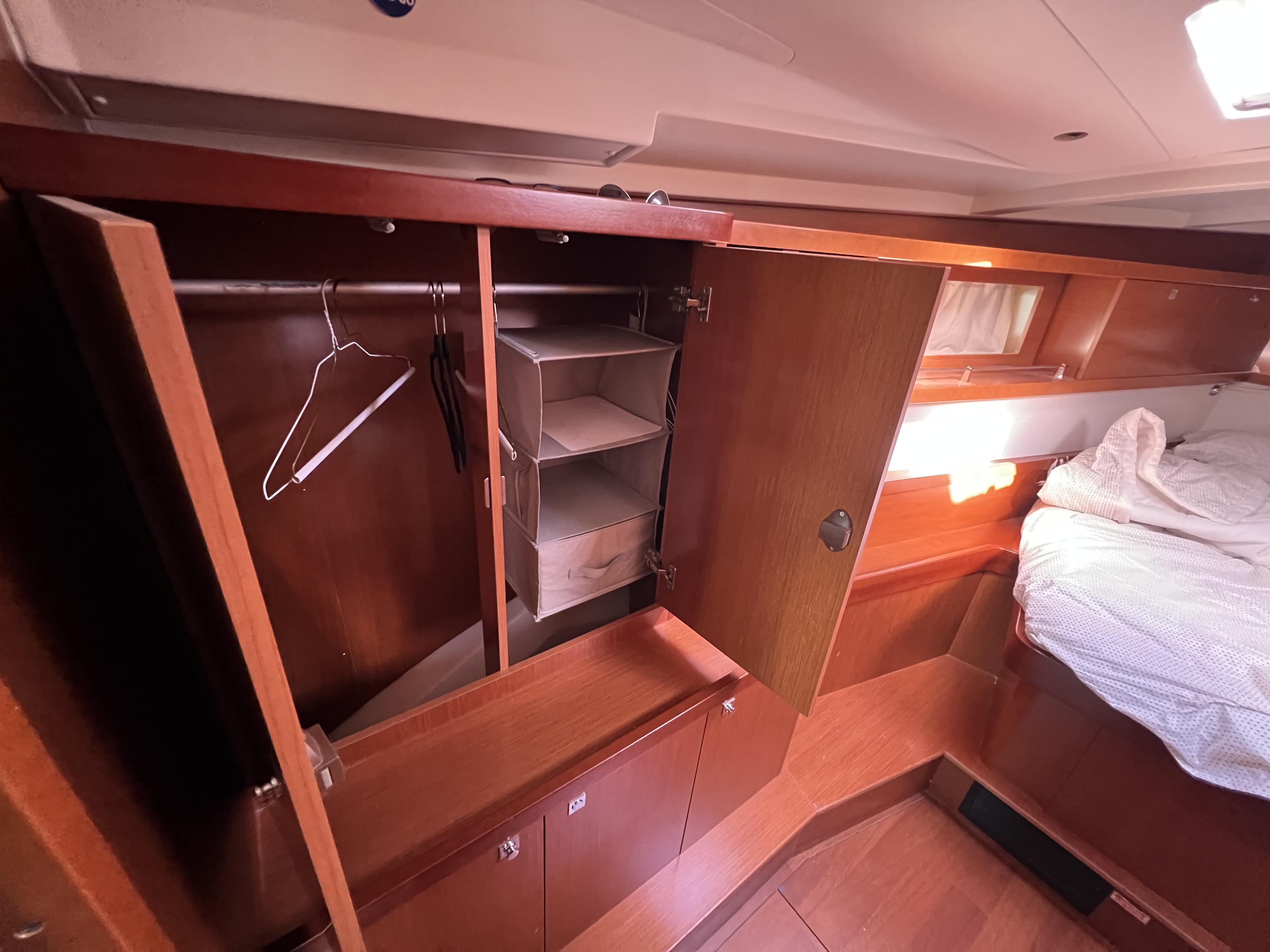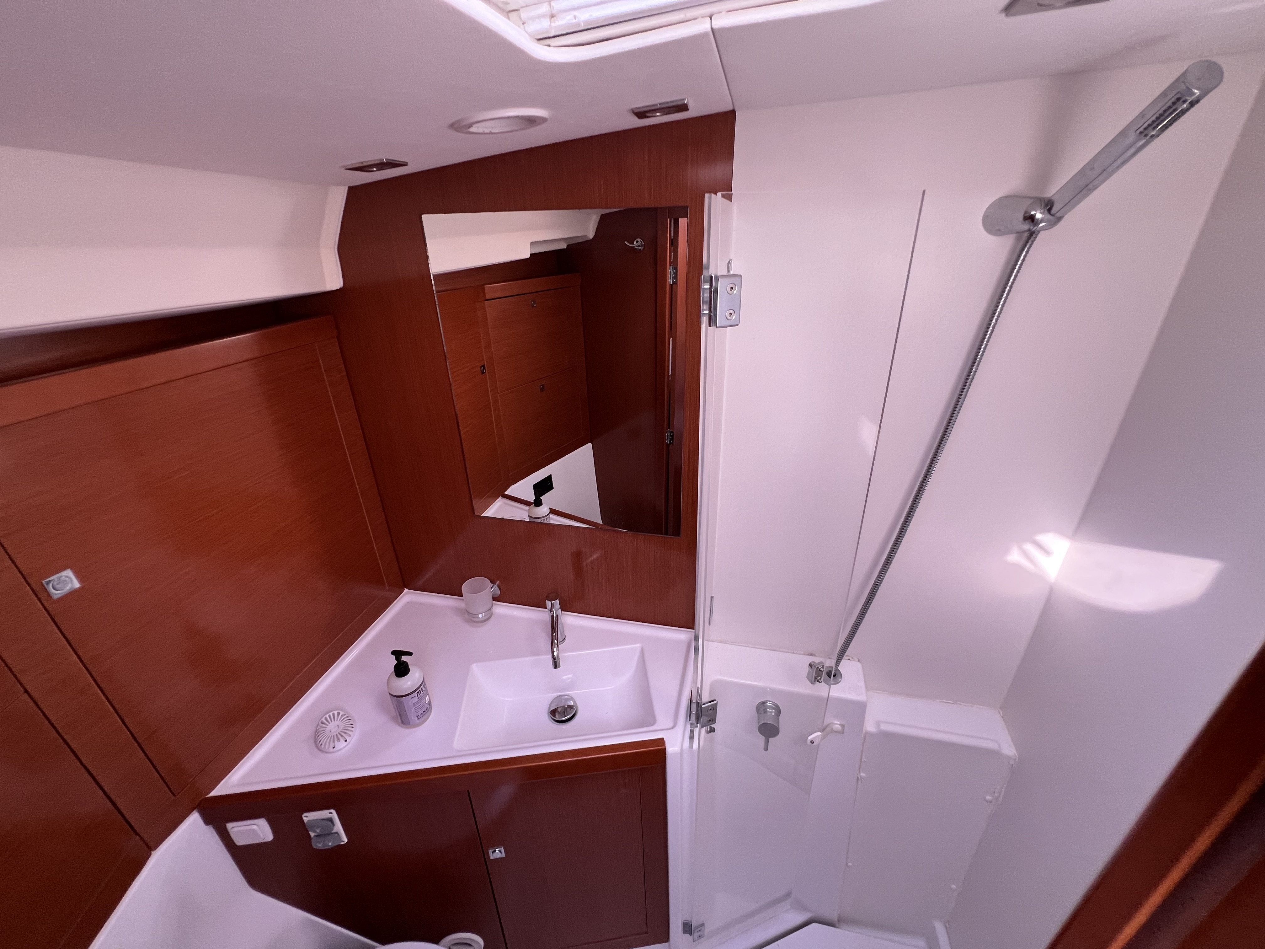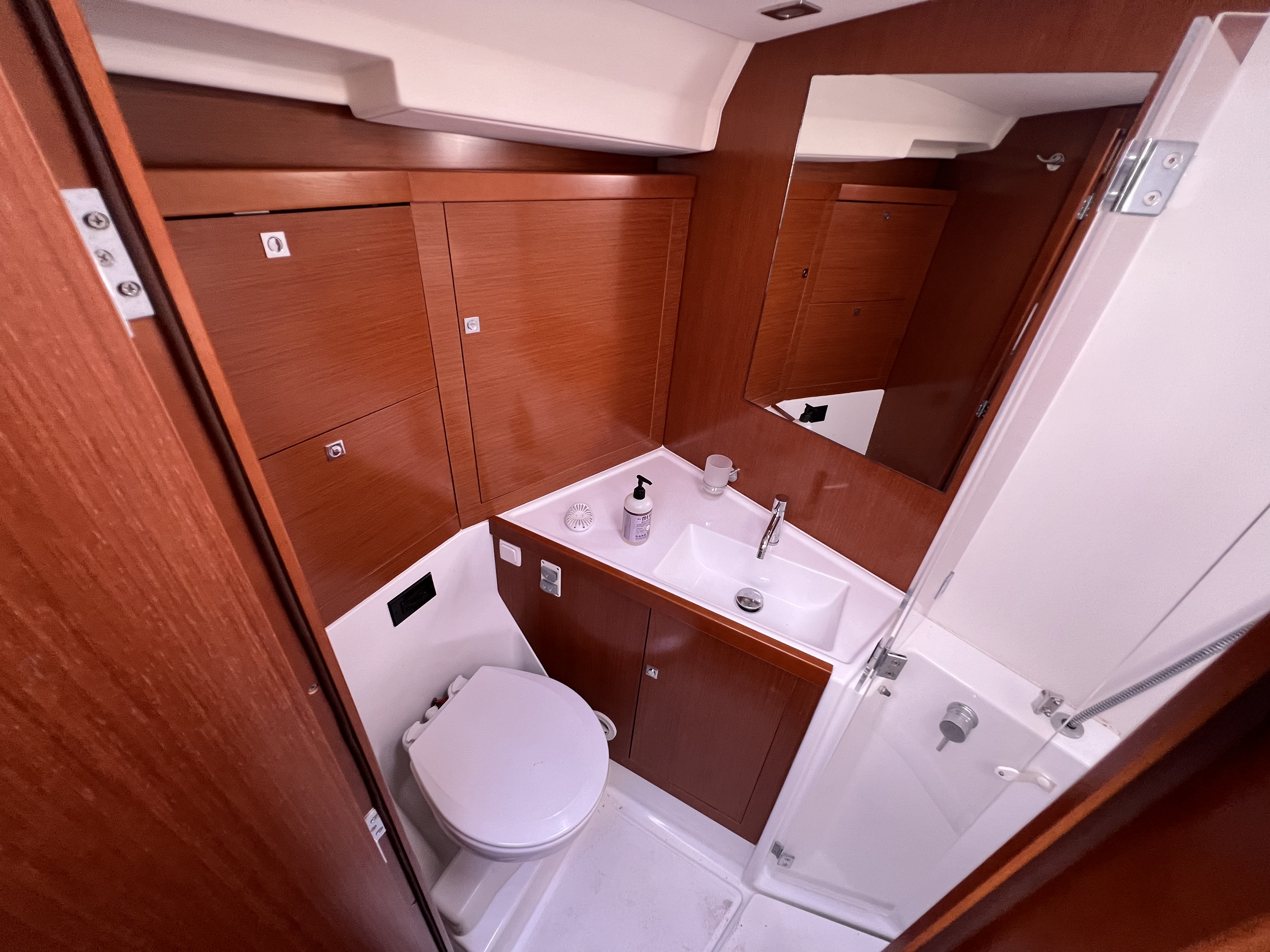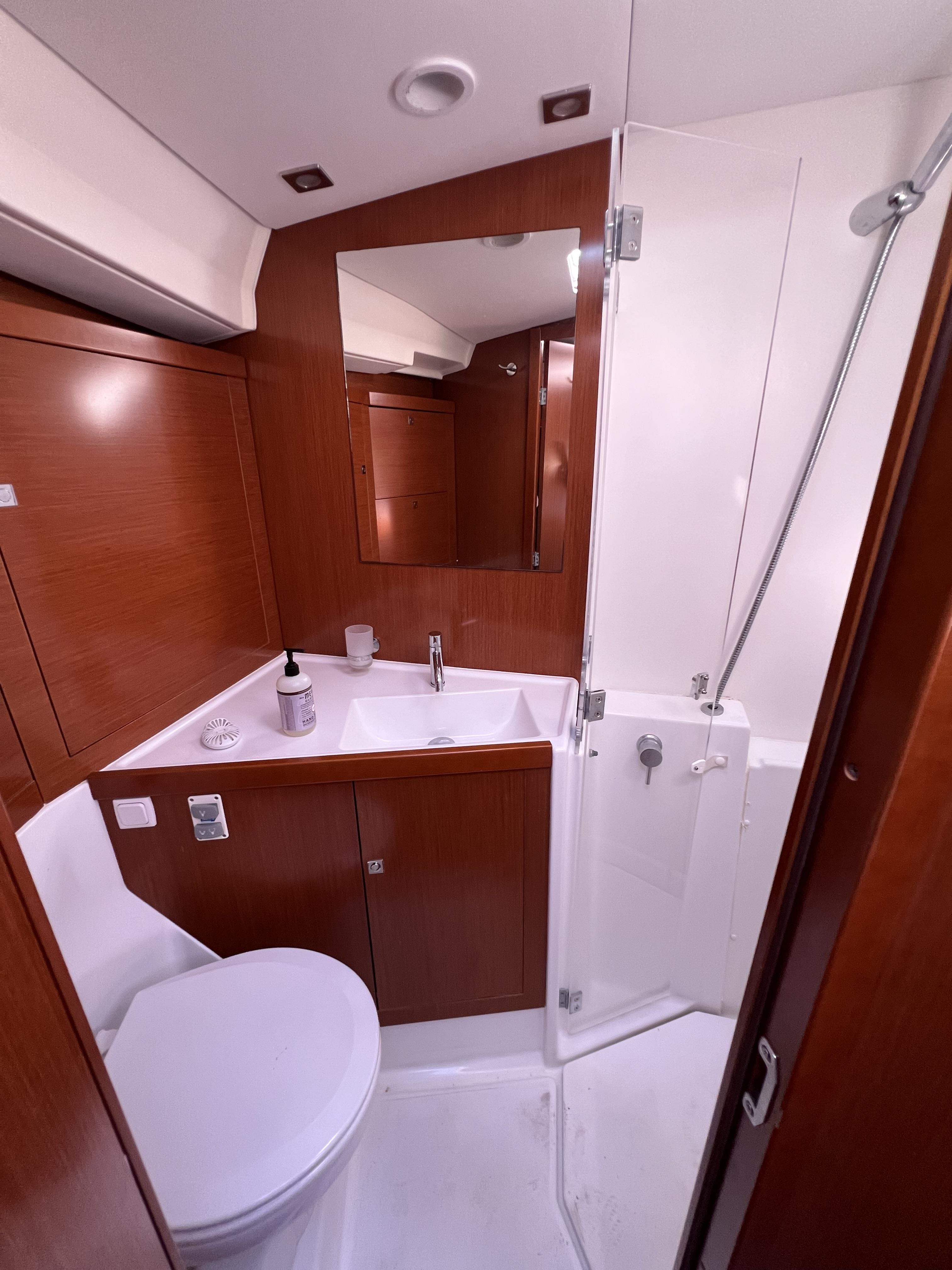 US Elegance Pack: Simrad IS20 Graphic Displays (Log, Speed, Depth & Wind System @ Starboard & Port Helm; Cockpit Shower; Indirect Lighting With LED Interior & Nav Lights; 2 Extra Batteries & 60 AMP Charger; Stereo US FM/AM w/iPod Dock; Electric Port Winch; Cockpit Table w/Cover; Freshwater Foot Pump; 12V Freezer; Leather-covered Handrails; Extra Bow Roller; 3 Burner Stove