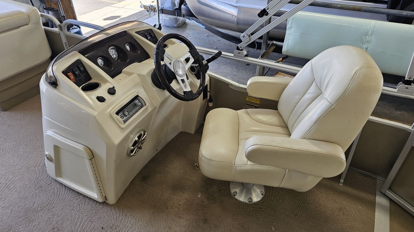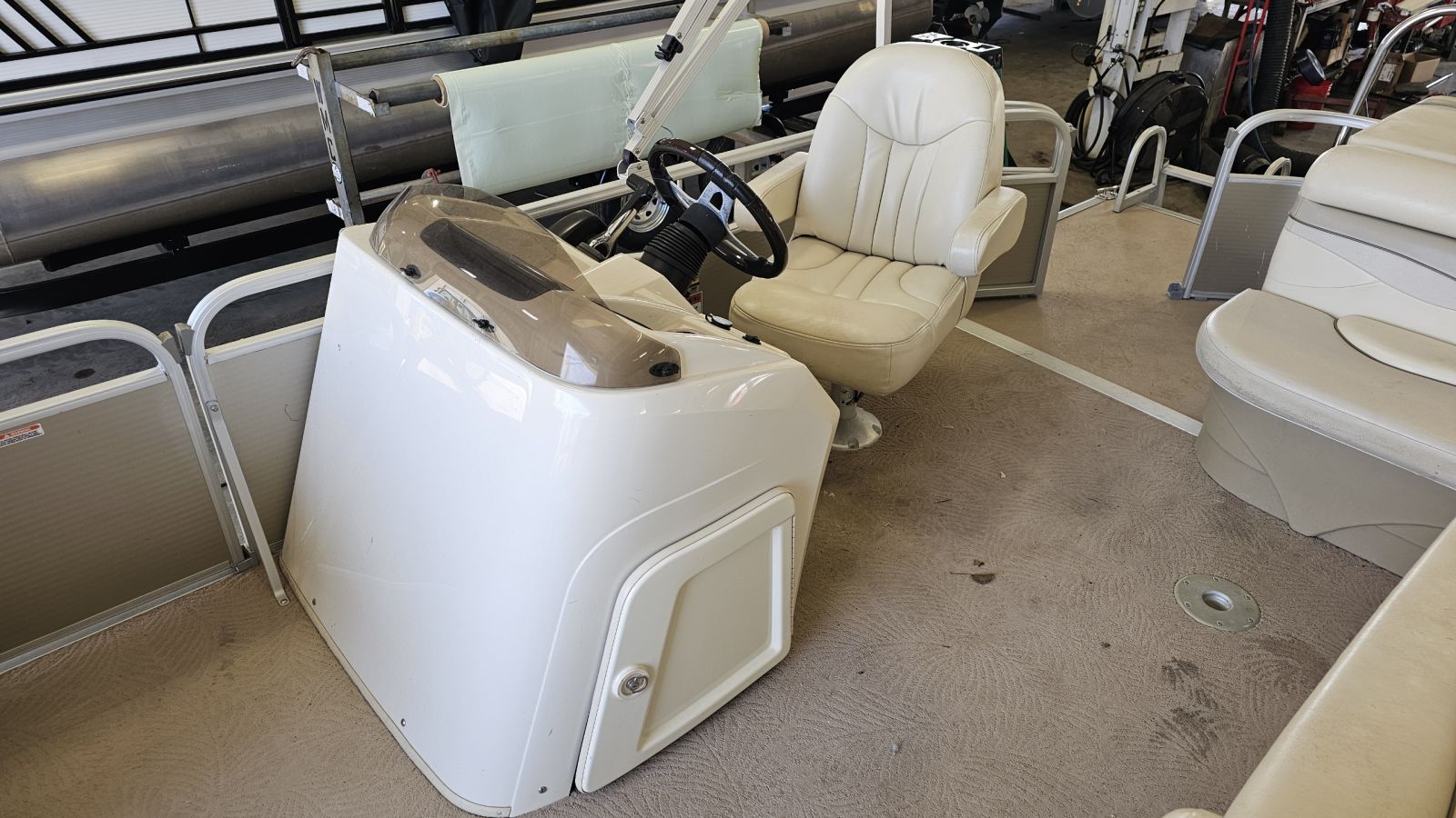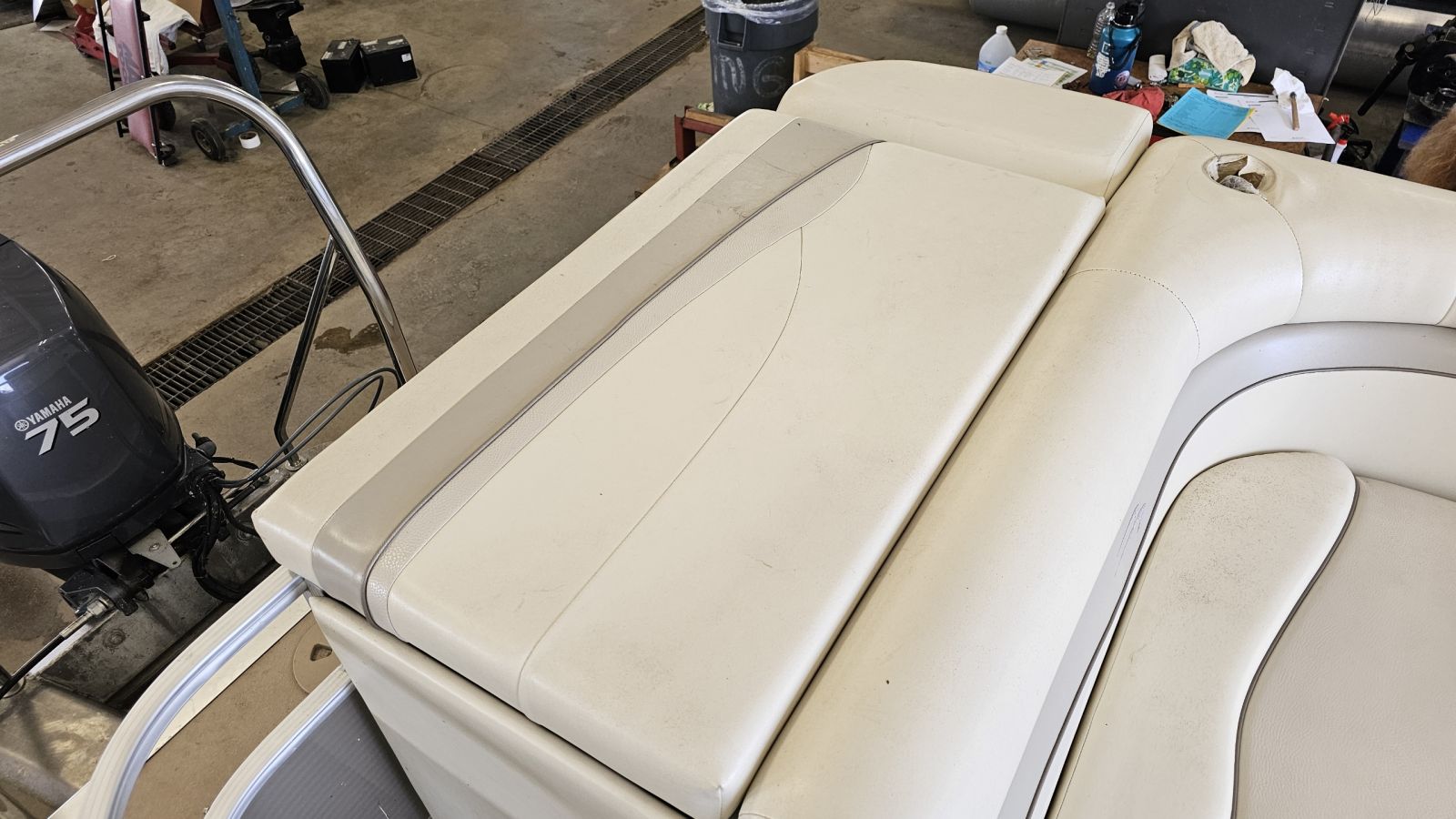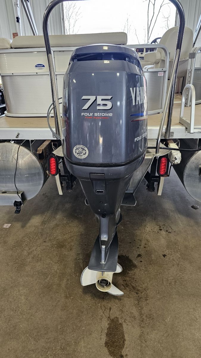 Low Hour (578) pontoon powered by a Yamaha 75hpSpacious floorplanportable cupholdersSony StereoDealer Maintained!