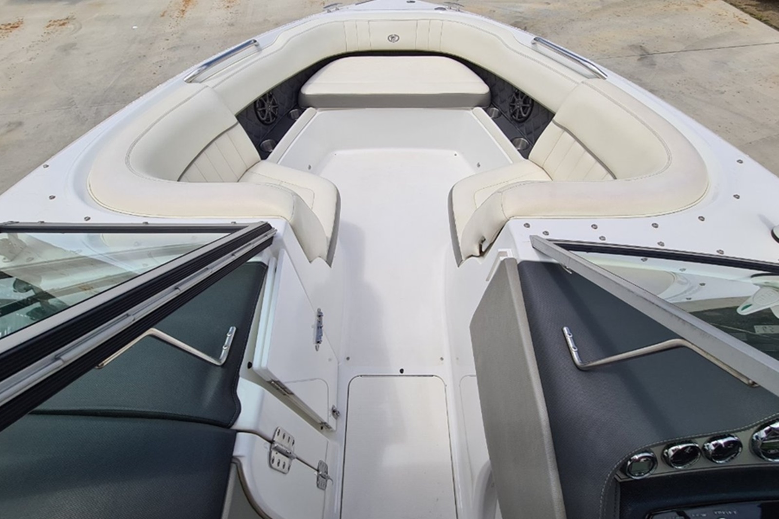 The boat provides ample comfortable seating, including a large aft lounge with a flip bolster.
