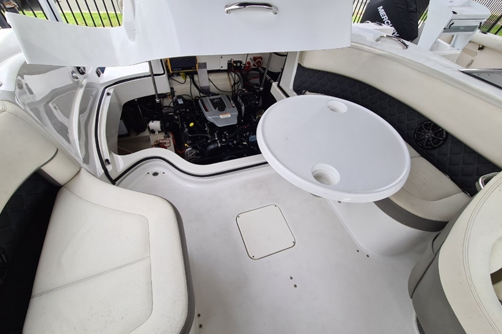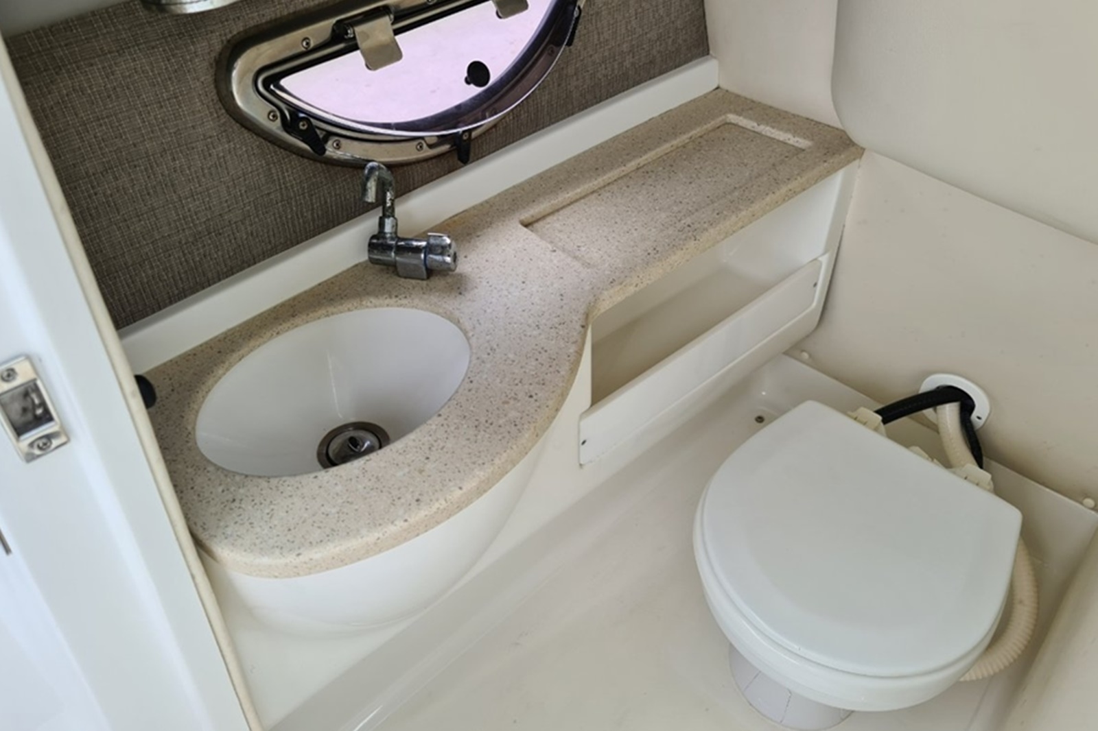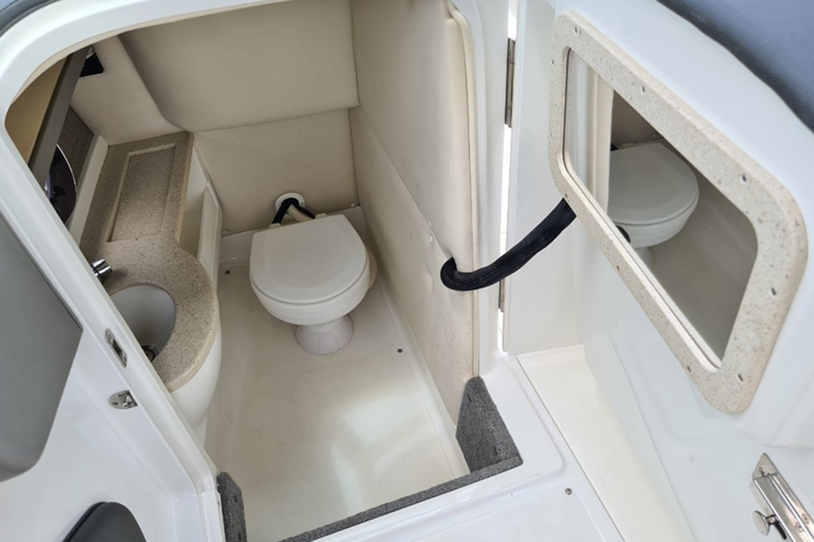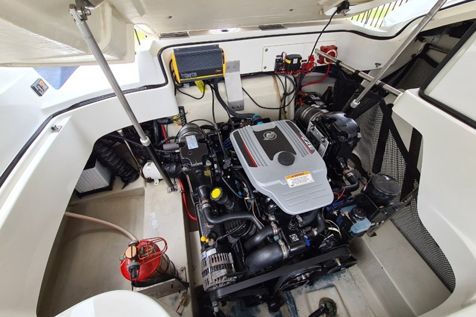 Equipped with a porcelain head and holding tank, sink in the head, MerCruiser 350MAG engine with Duo-prop drive, and dual batteries with an isolator, it offers a great range of features.