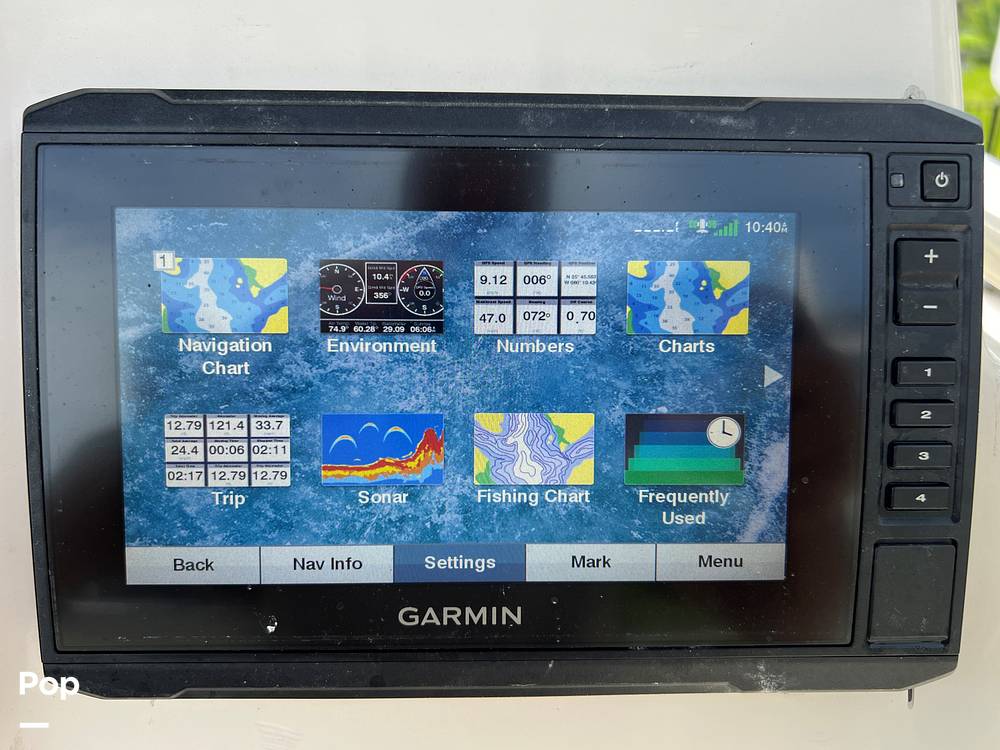 Additional amenities include hydraulic steering, Lenco trim tabs for improved stability, and a windlass for easy anchor handling. The fore and aft spreader lights enhance visibility during early mornings or late evenings, while the Uniden VHF radio and Garmin display keep you connected and informed. For entertainment, the Bluetooth Fusion Stereo delivers high-quality sound to complement your time on the water. This Cobia 237CC combines functionality and comfort, making it an excellent choice for both serious fishing and leisurely boating.