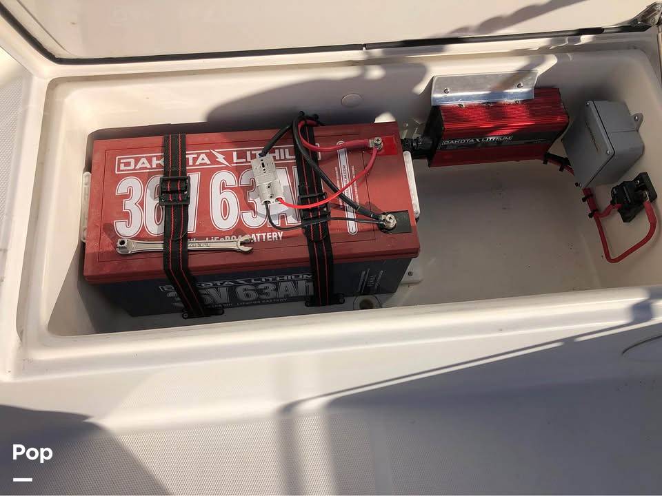 From the owner: Operating cost is a fraction compared to outboard vessels of the same size craft. This boat runs about 3.2 miles per gallon when cruising and only 1/2 gallon when trolling at 5 to 6 knots. I've added the 84″ Rhodan trolling motor and paired it with a Dakota lithium battery ease of operation and easy to get to.
