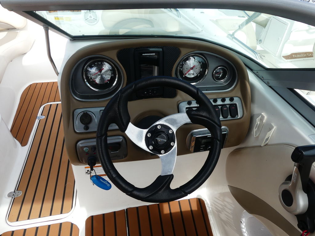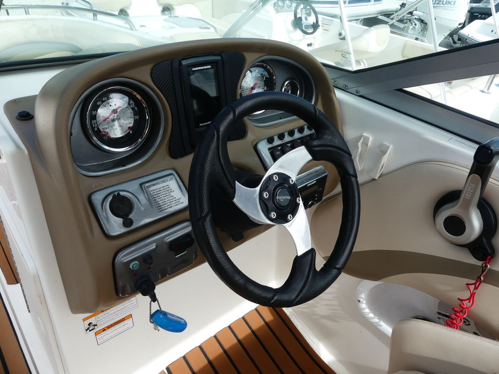 A 21-foot fiberglass deck-boat built by NauticStar, the 2012 210 DC features a roomy 8' 6? beam.